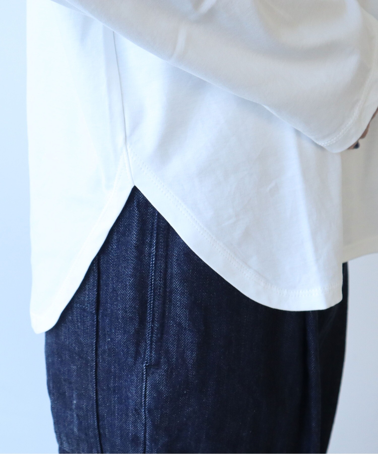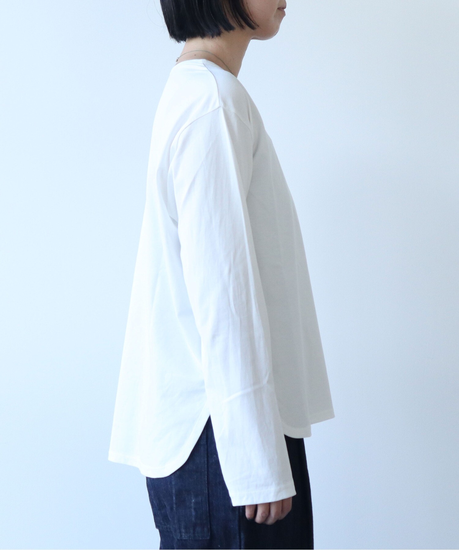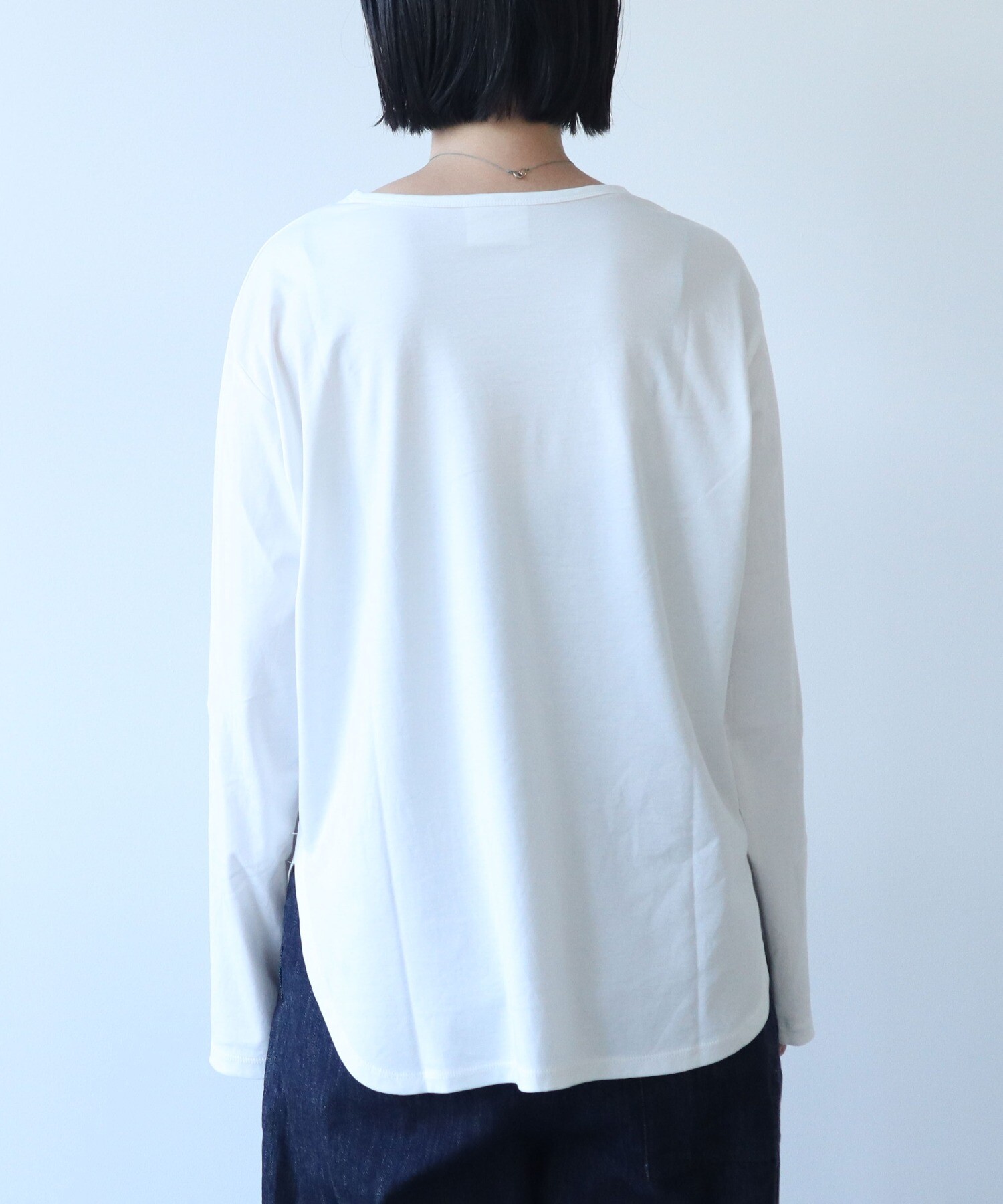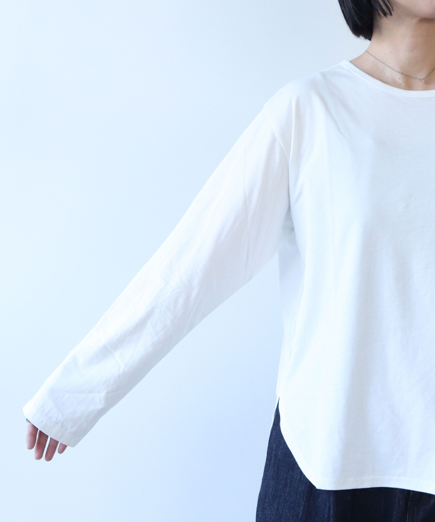 適度な光沢感もあるので、シンプルに着てもなんだか上品な雰囲気にある一枚です。