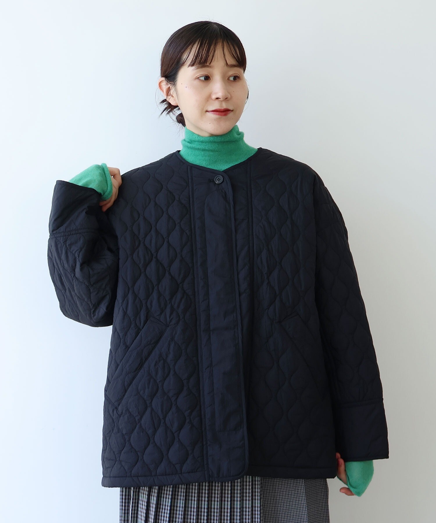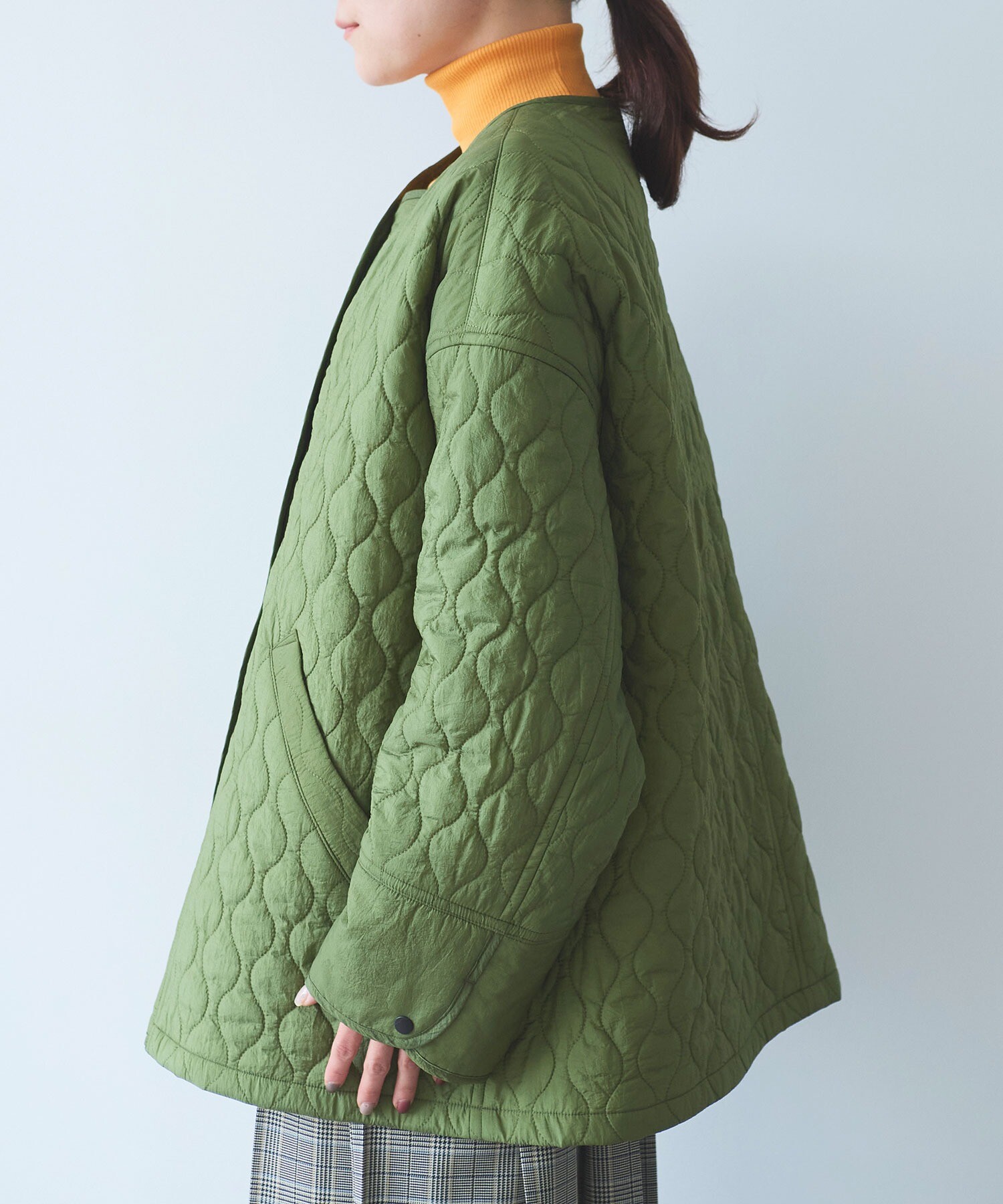シルエットはゆったり設計で、中にニットや厚手のトップスを重ねてももたつかず、
