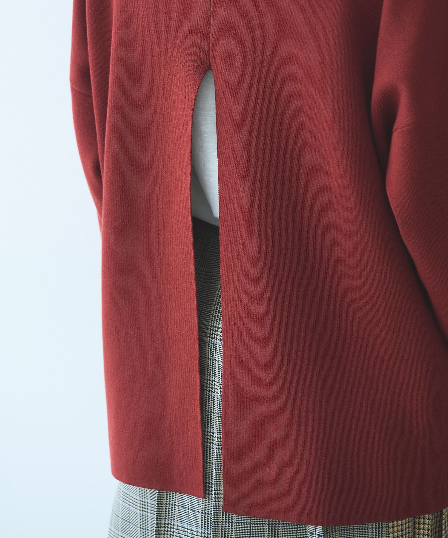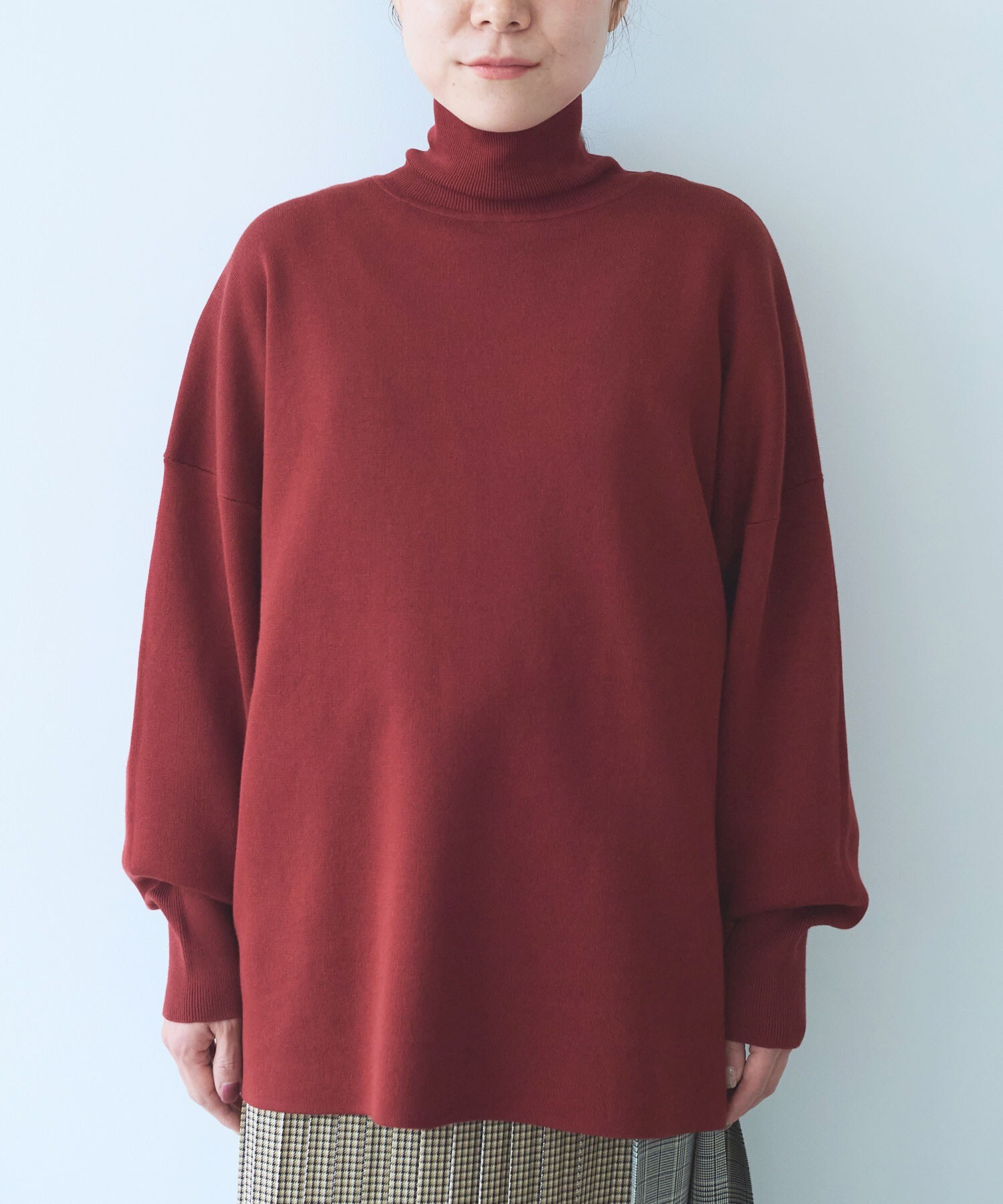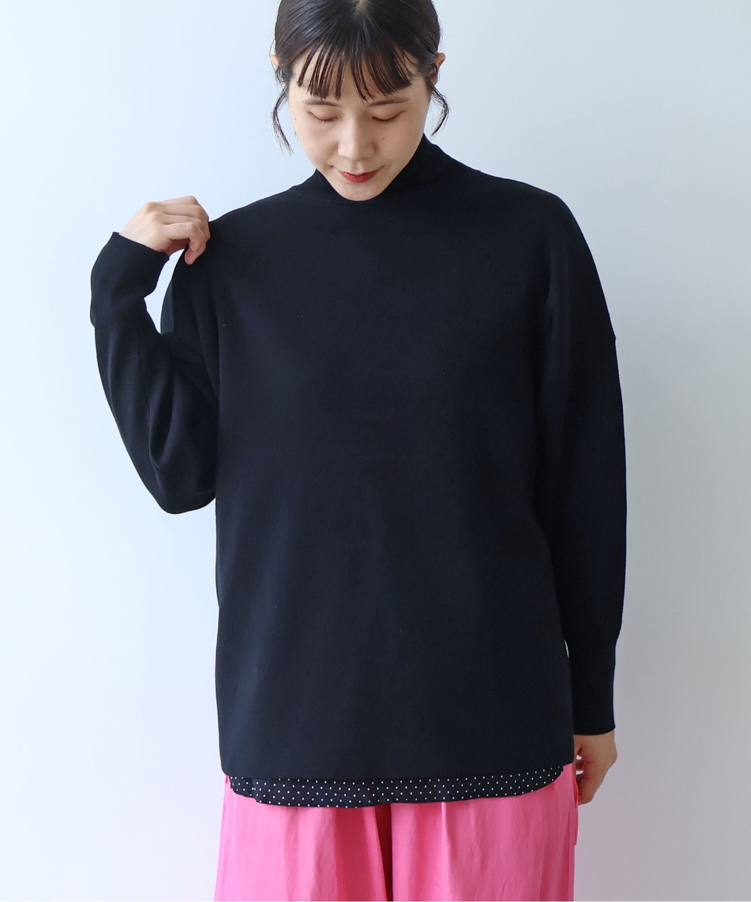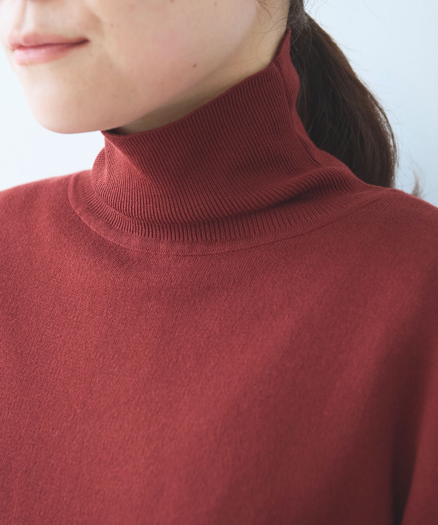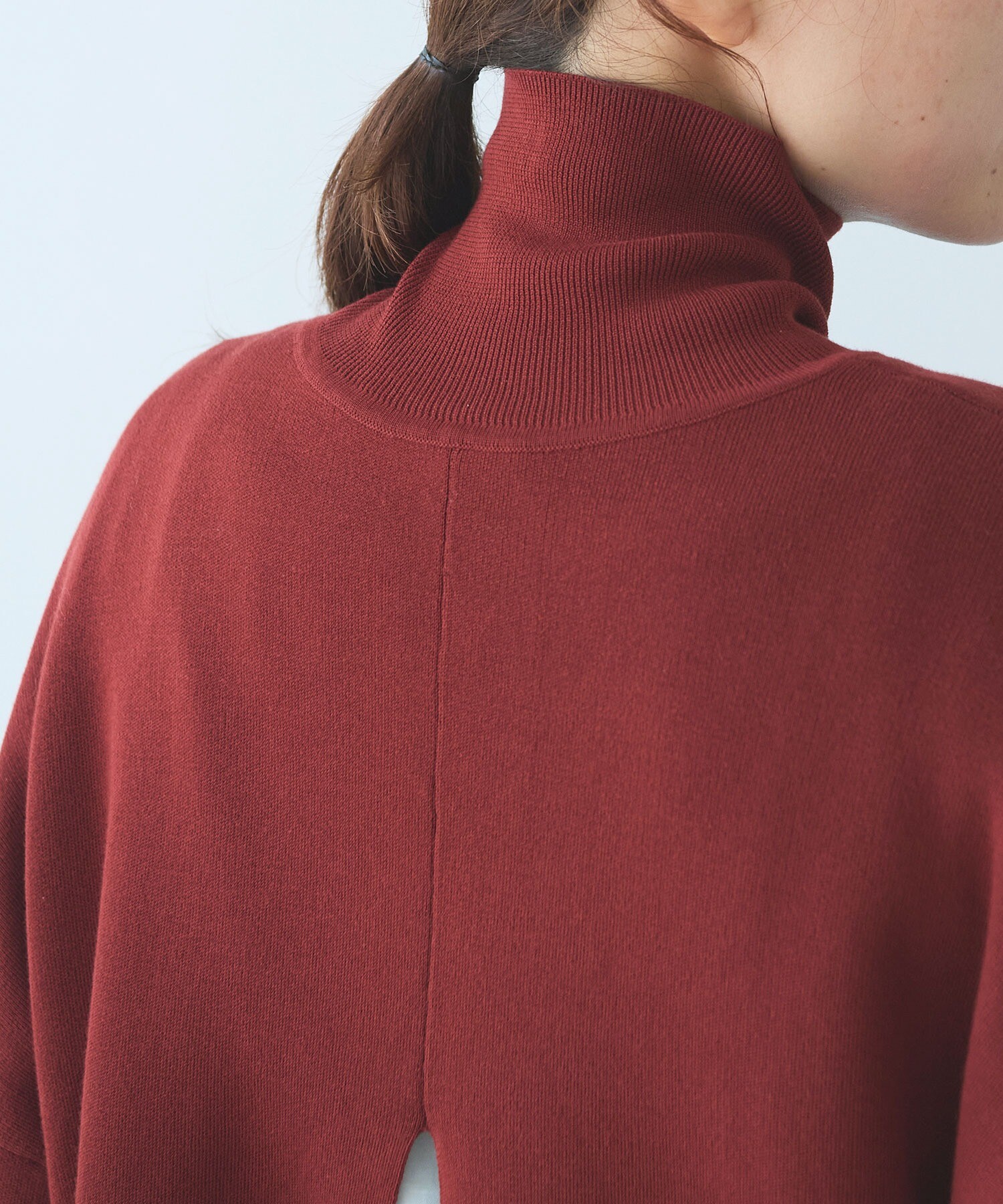スムースニットの 前後2WAYハイネックプルオーバー。