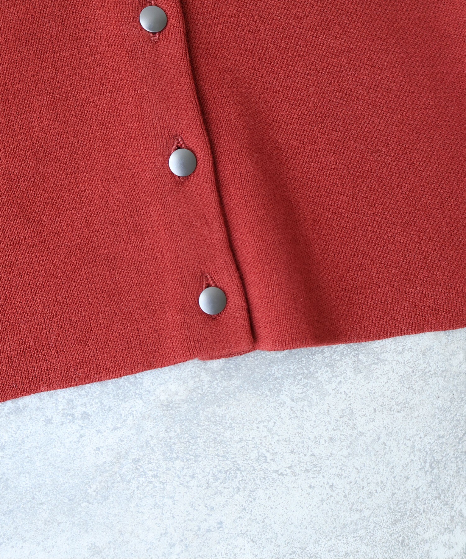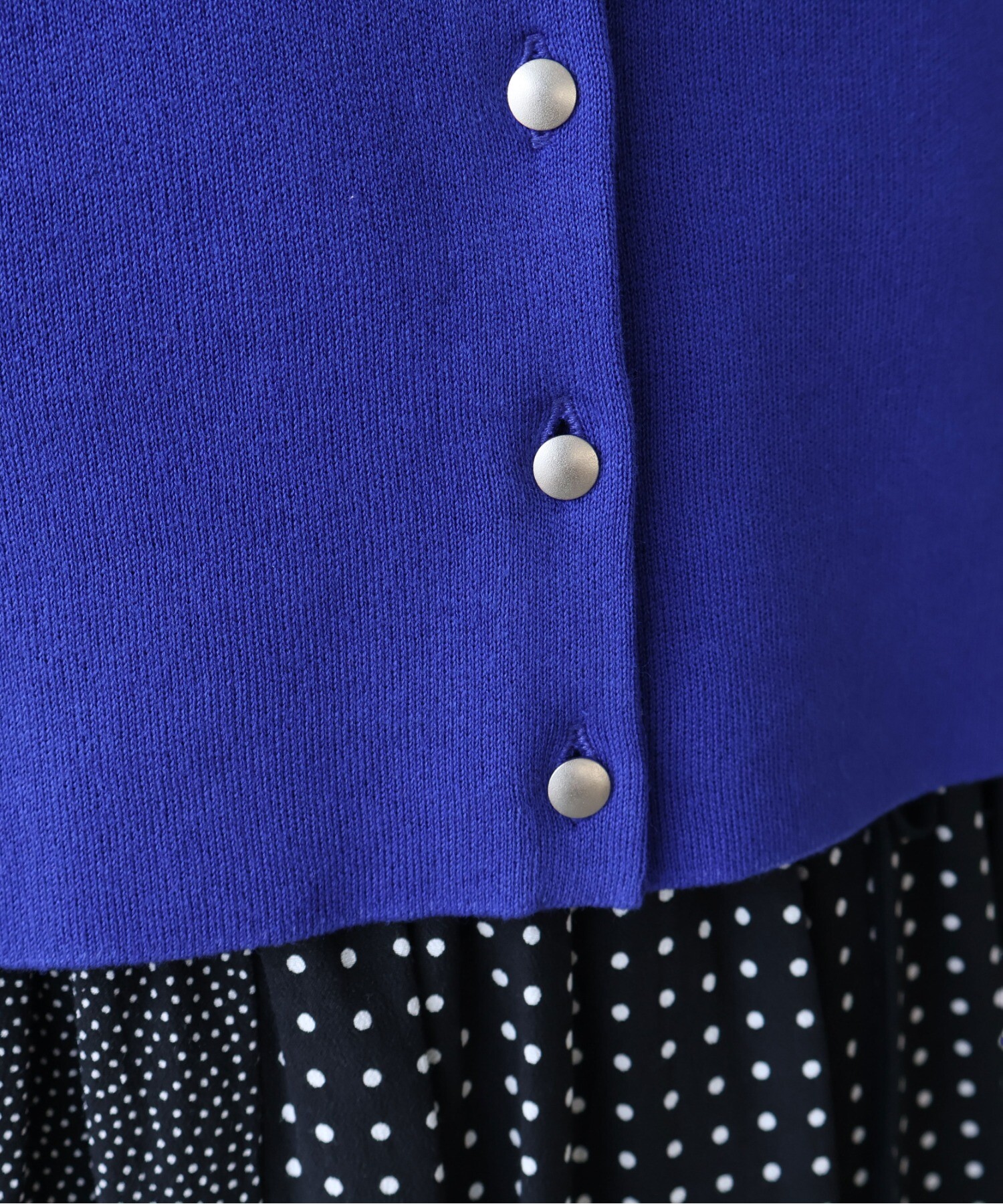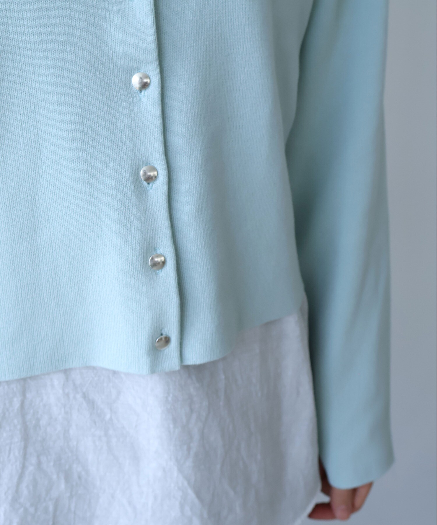 マットなシルバーのボタンが、さりげないアクセントに。