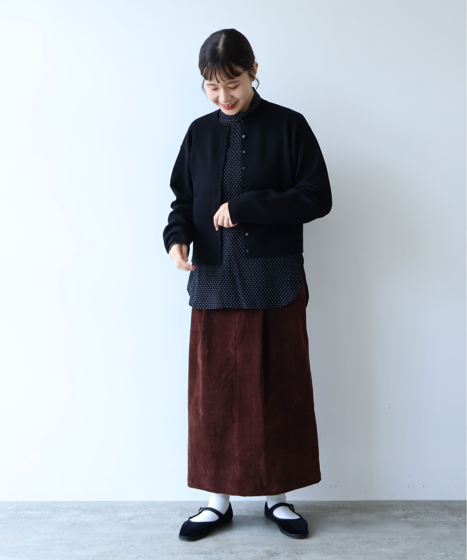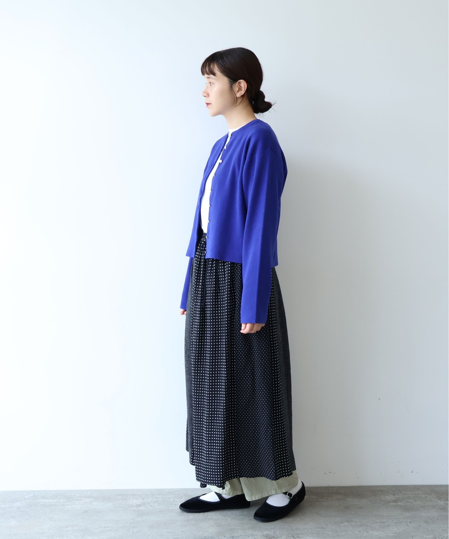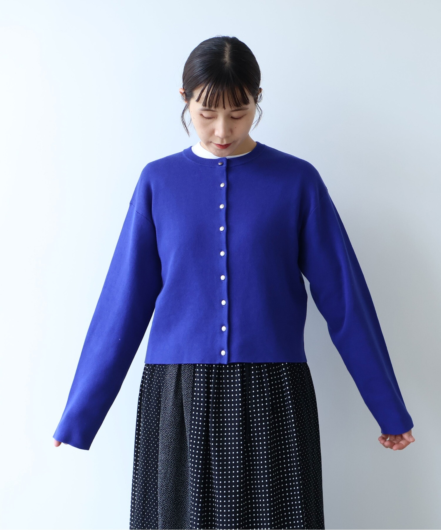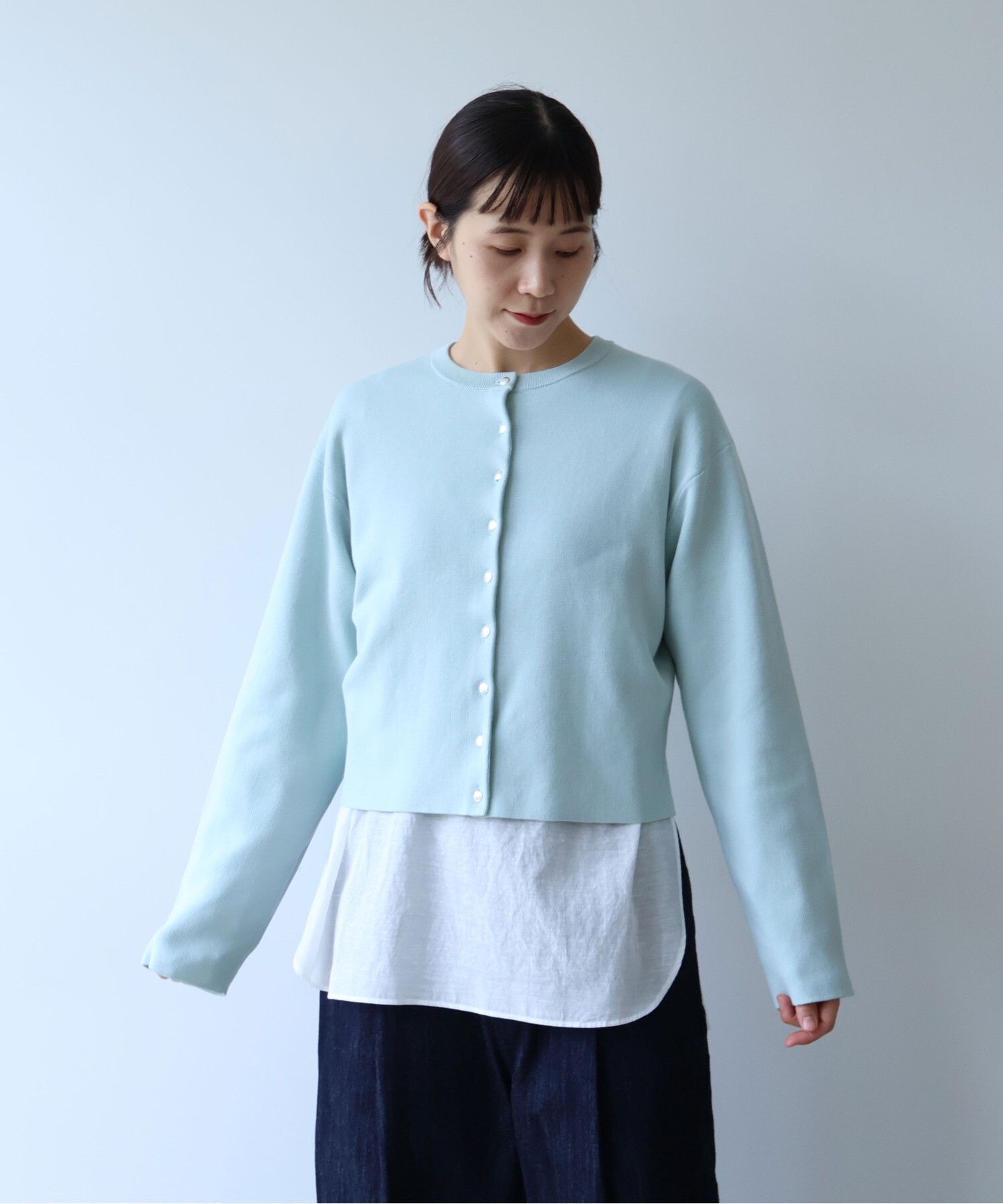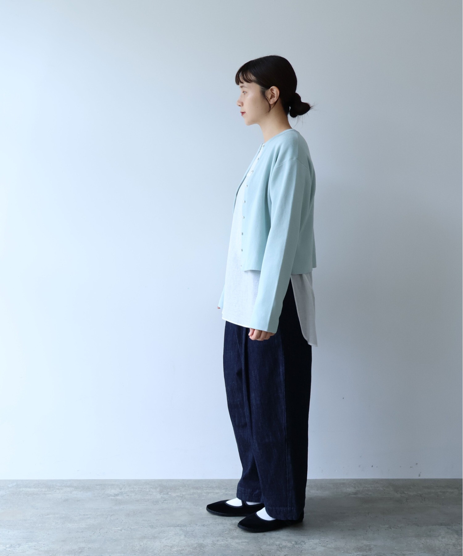 ミニマルなデザインの中に、少し長めの袖を合わせて、さりげないバランスの変化を。