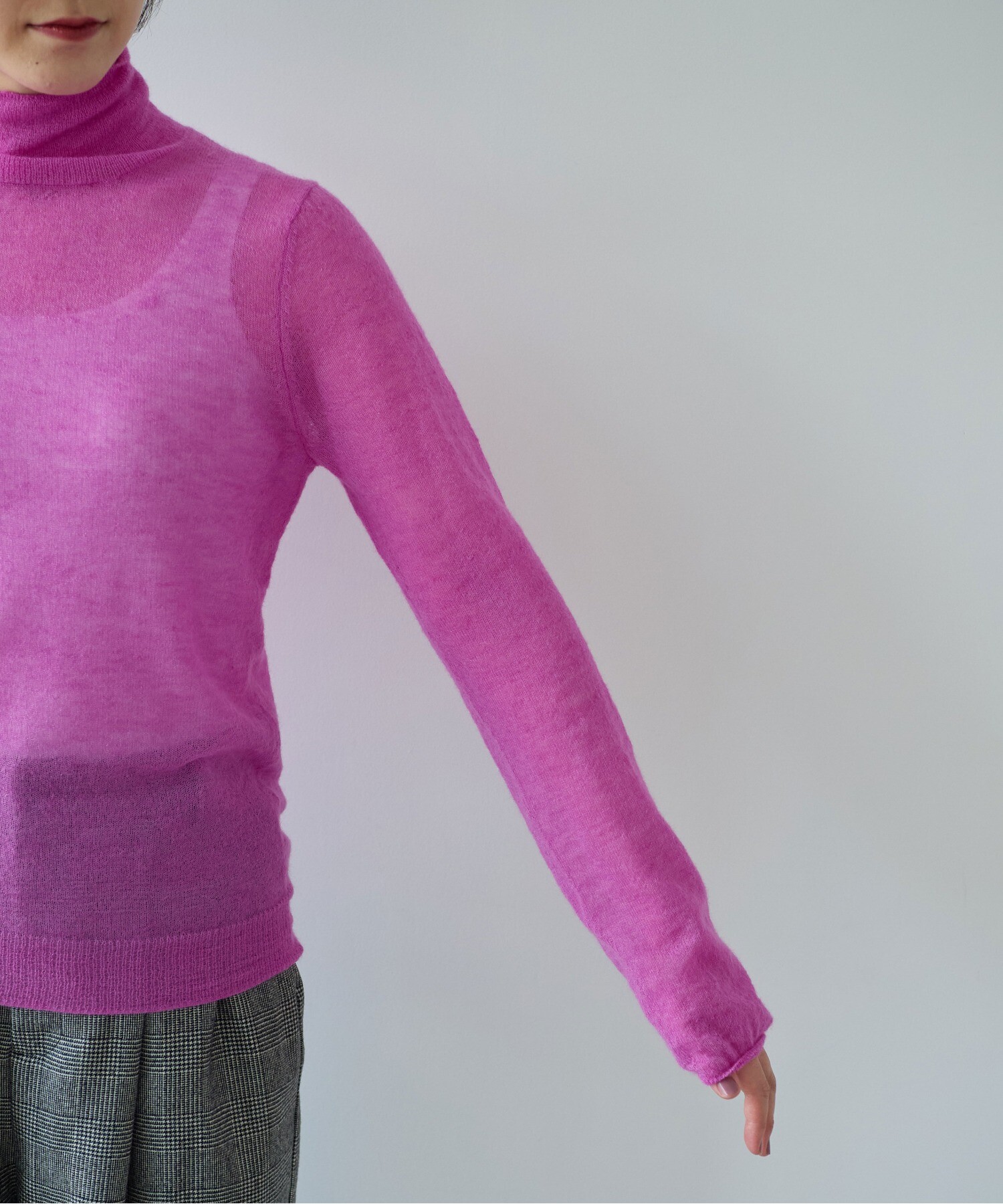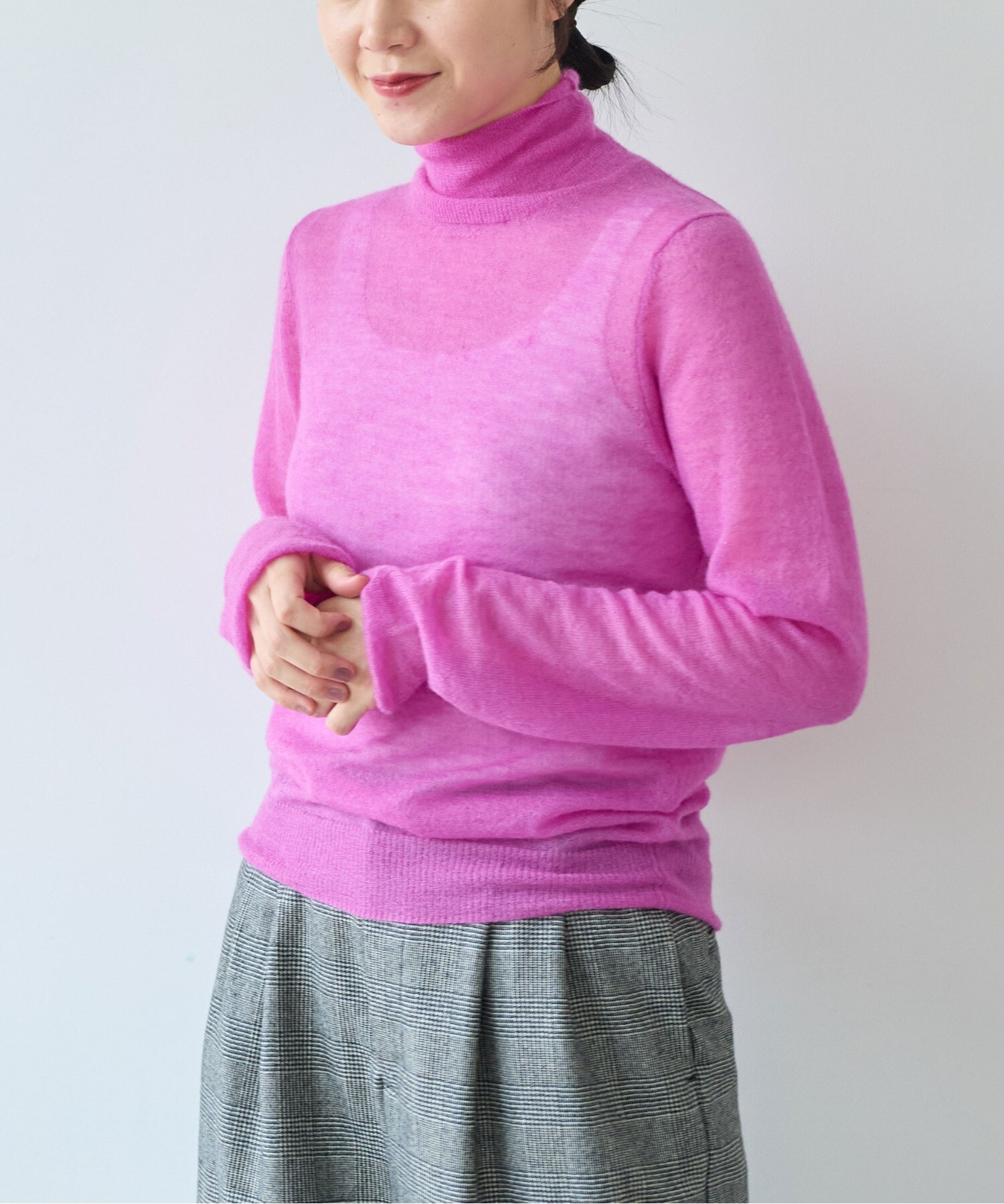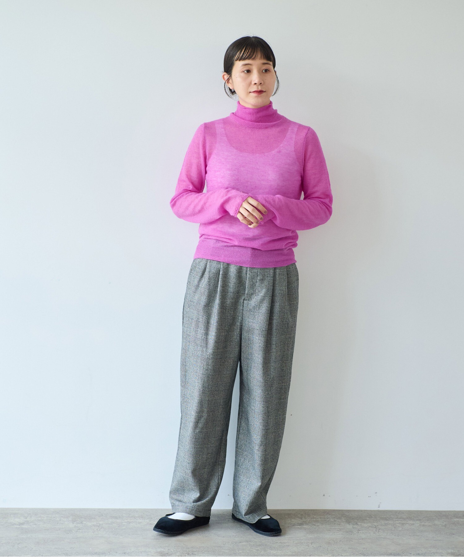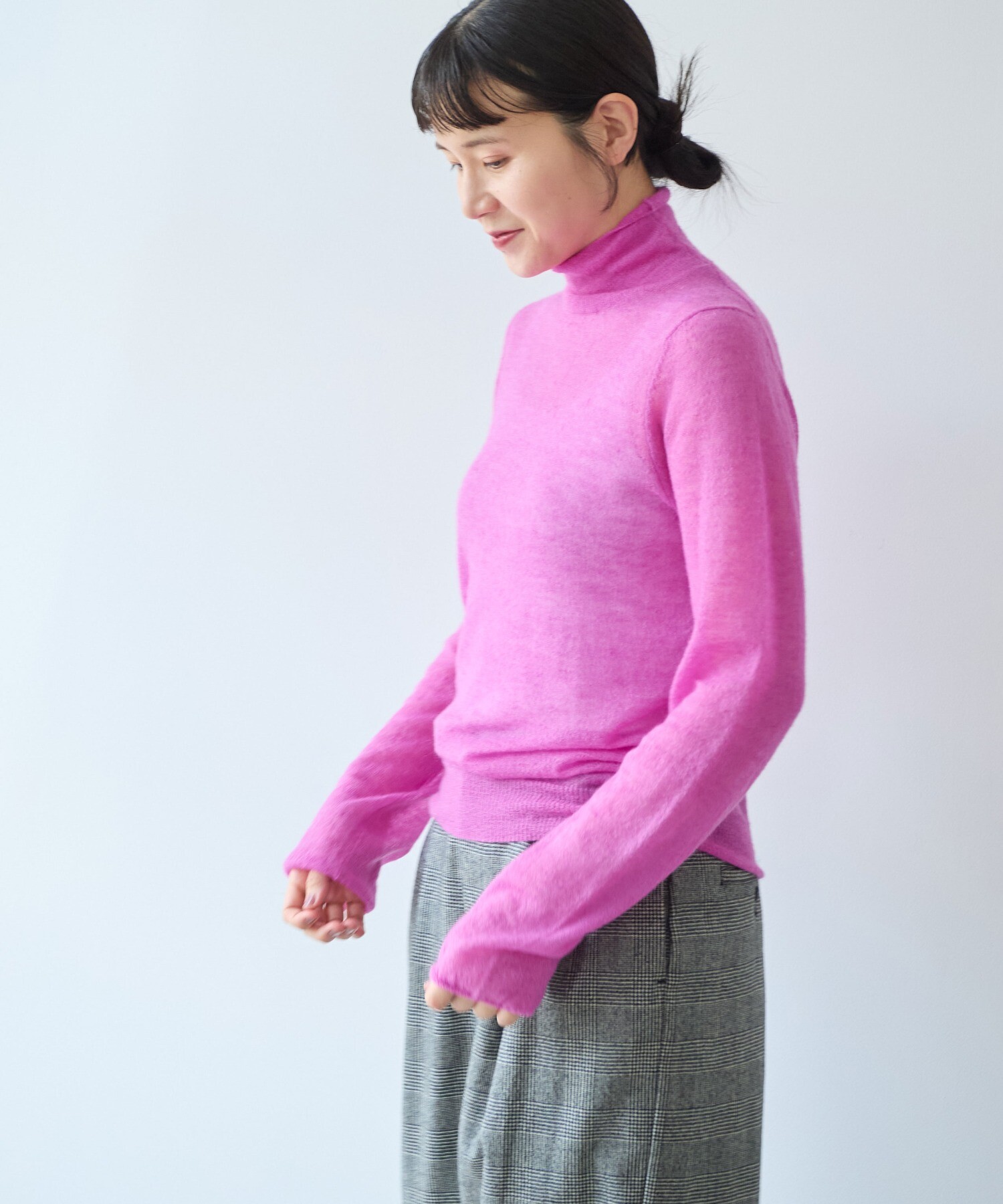 一枚で着ても、ジャケットやワンピースのインナーとしても馴染み、秋から冬へと自然に寄り添うデイリーなニットです。
