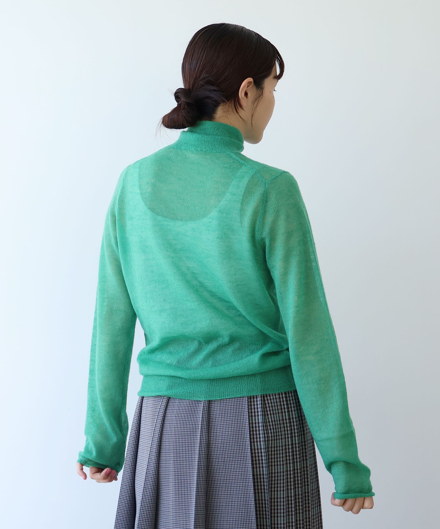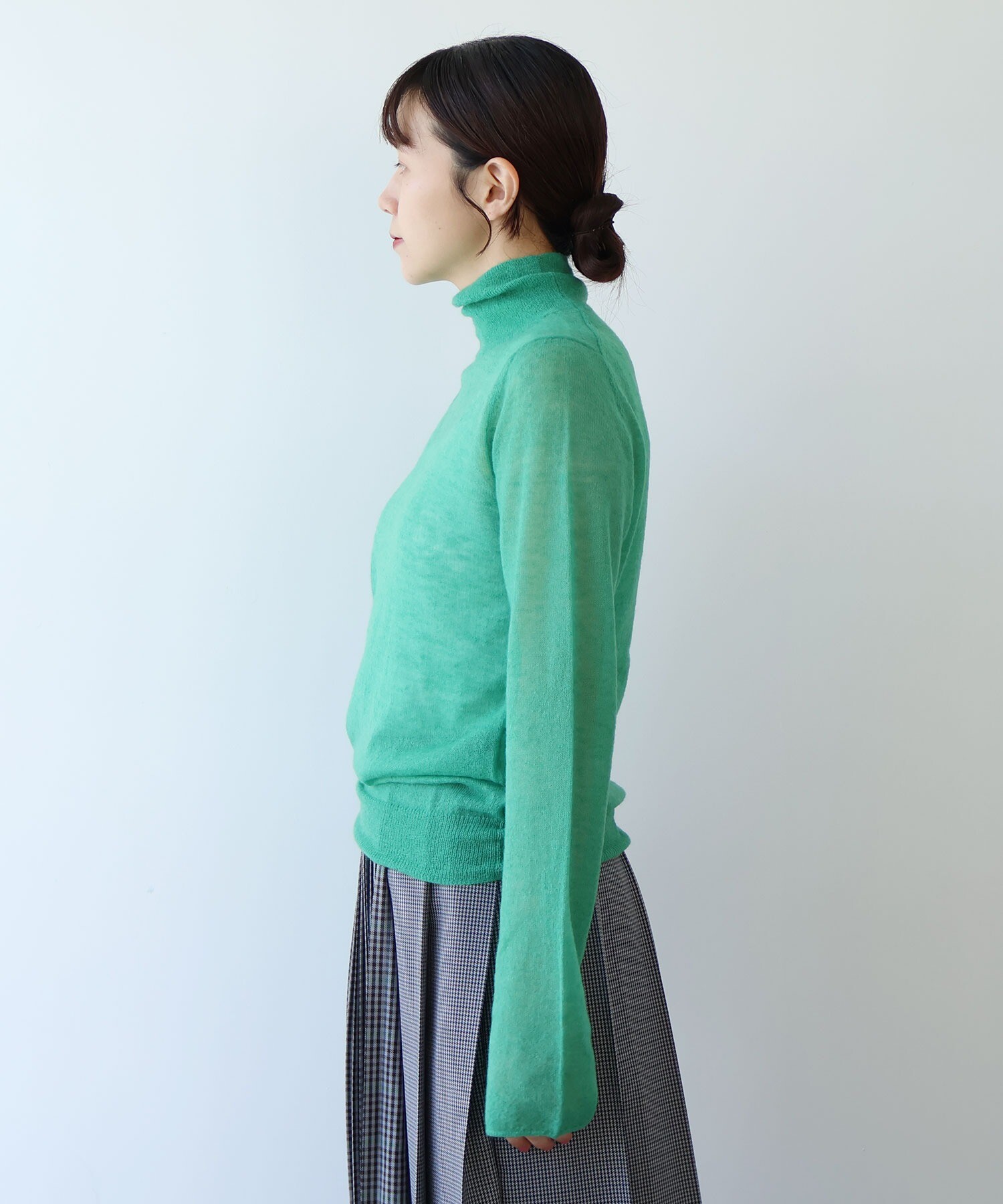 シルエットはレギュラーサイズのハイネック。
