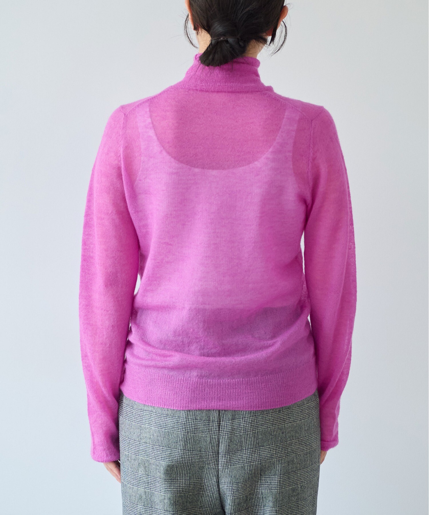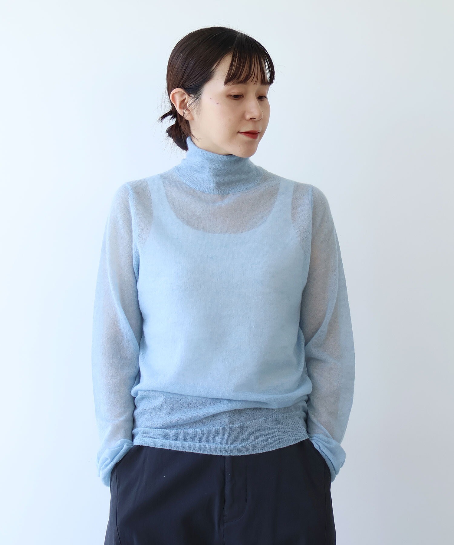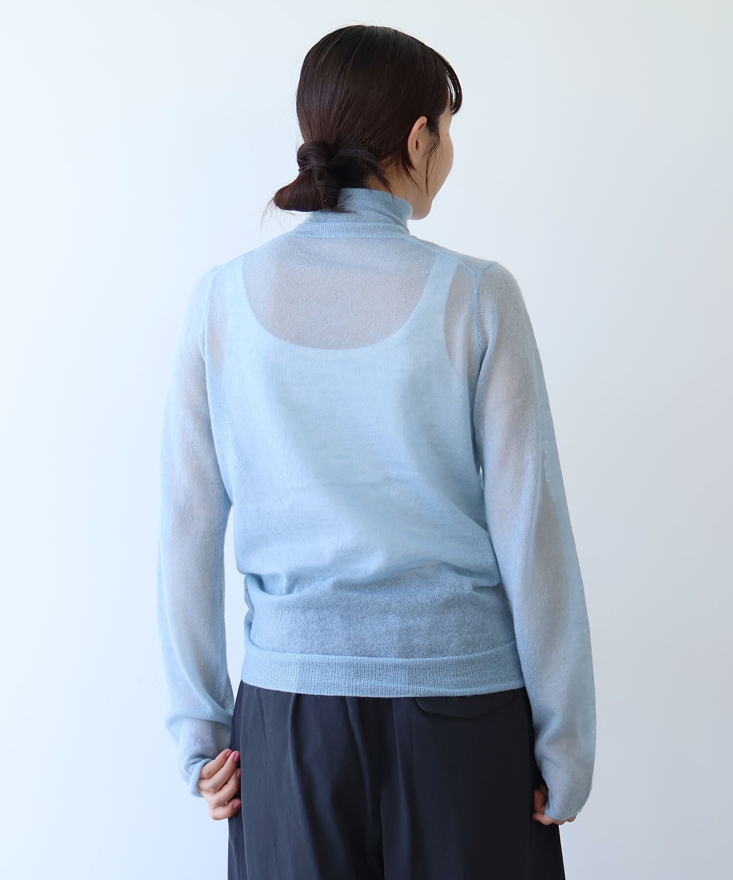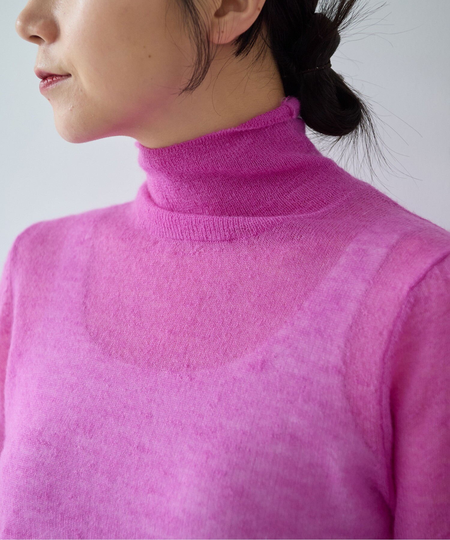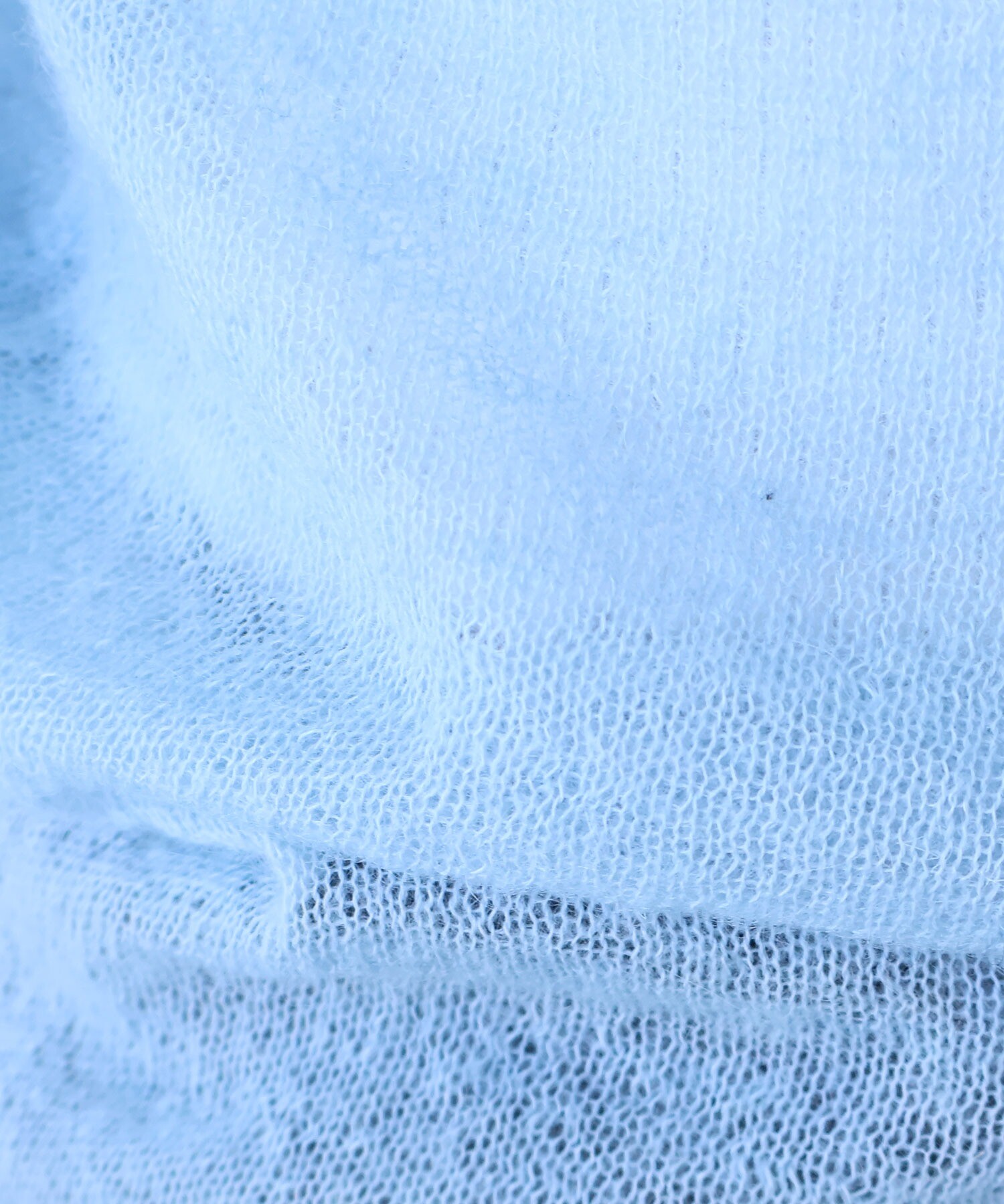 空気を含んだように軽やかな編み地は、うっすらと透けて、発色の奥行きまで美しく引き出してくれます。