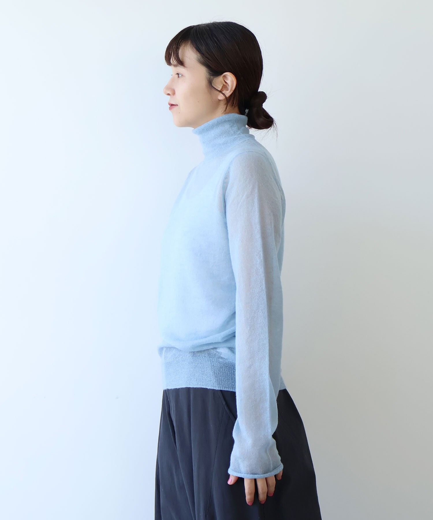 ○kid mohair ウールナイロン high neckプルオーバー