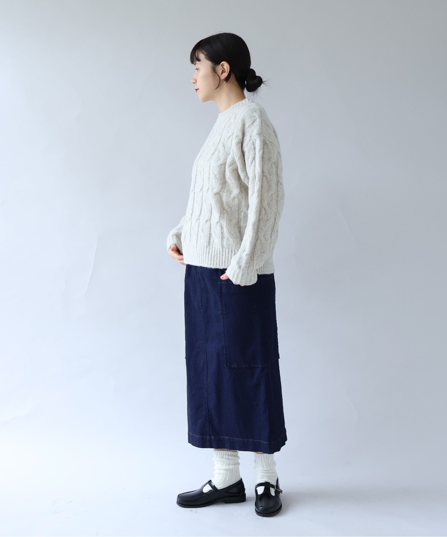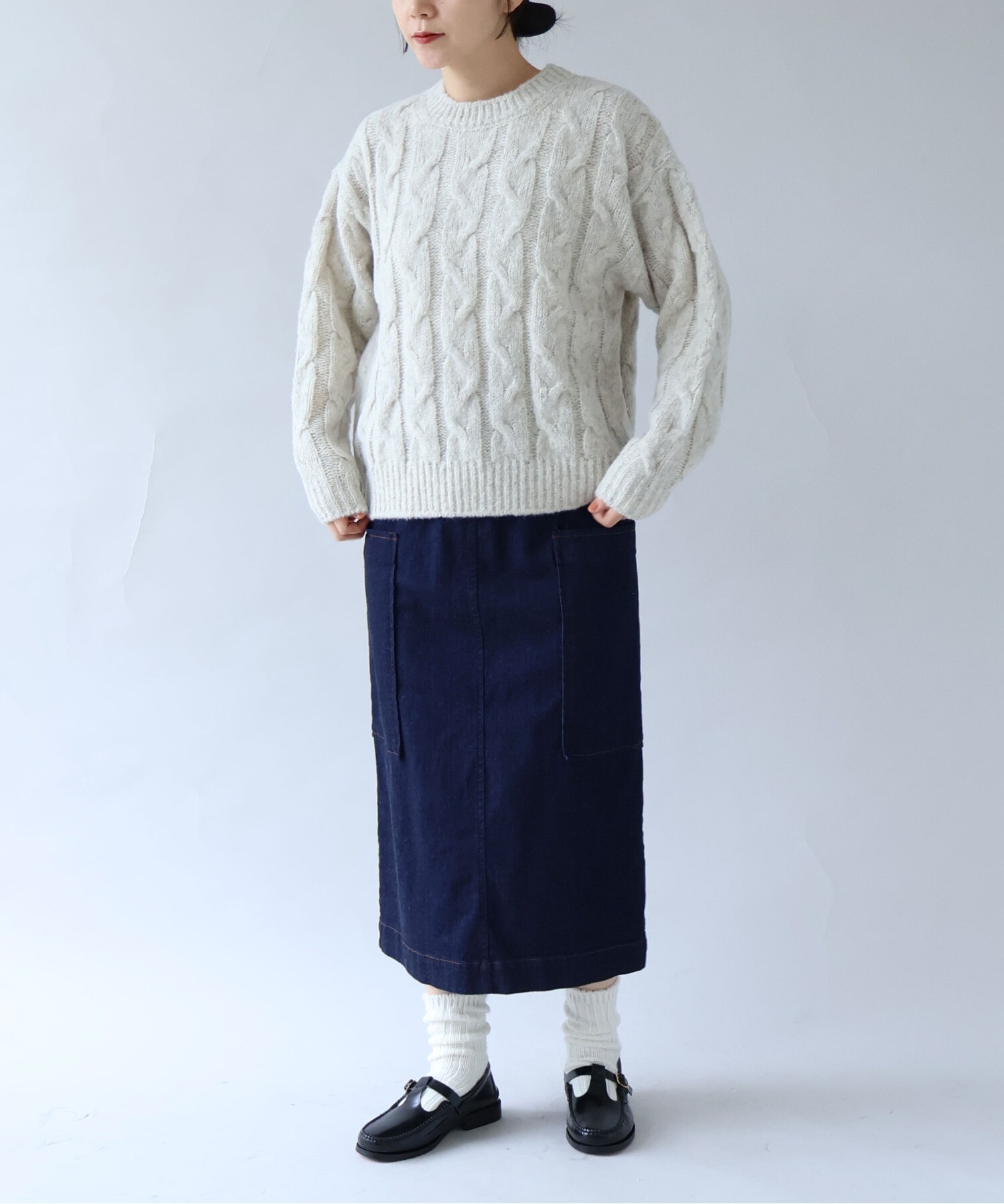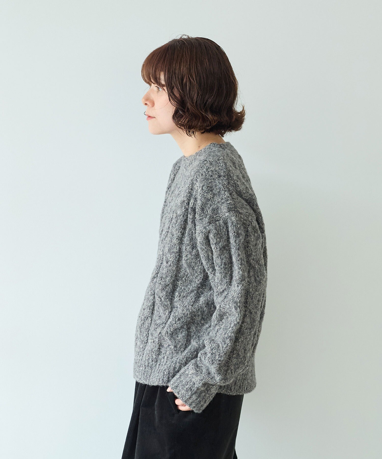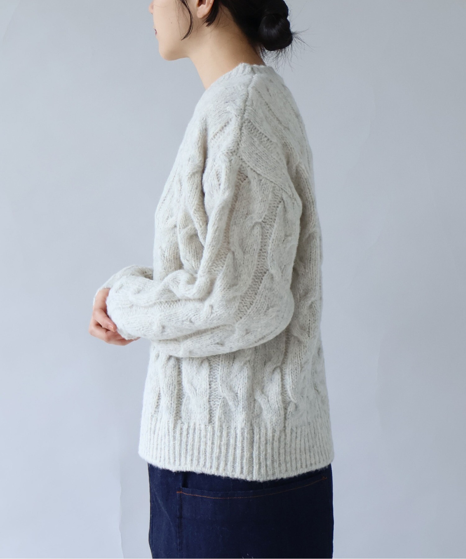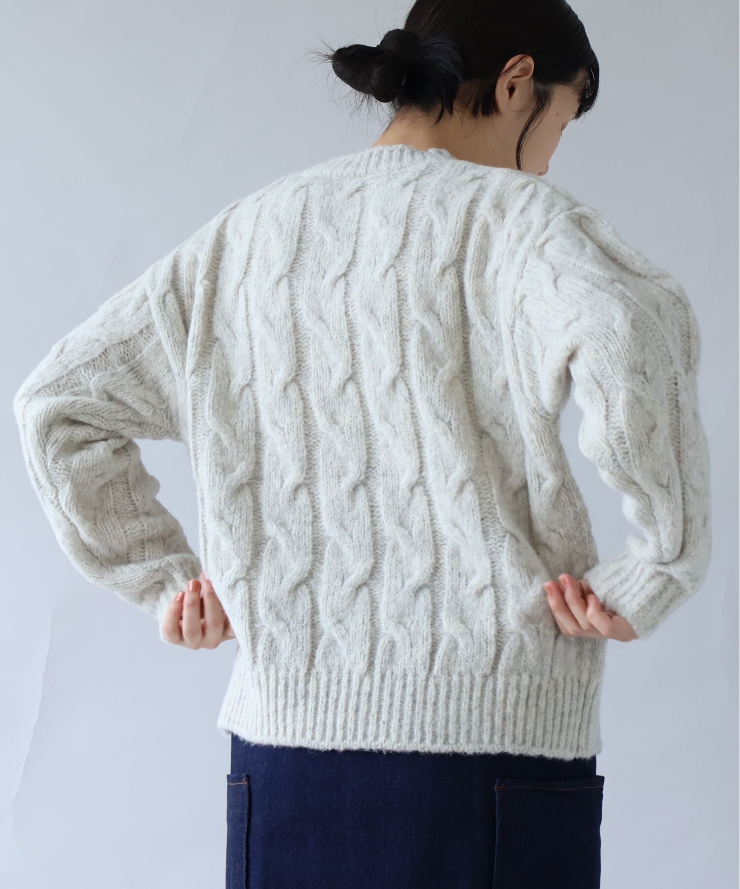 「あぁ、いいな」と思えるような素材で太めに編み込んだアラン模様が、