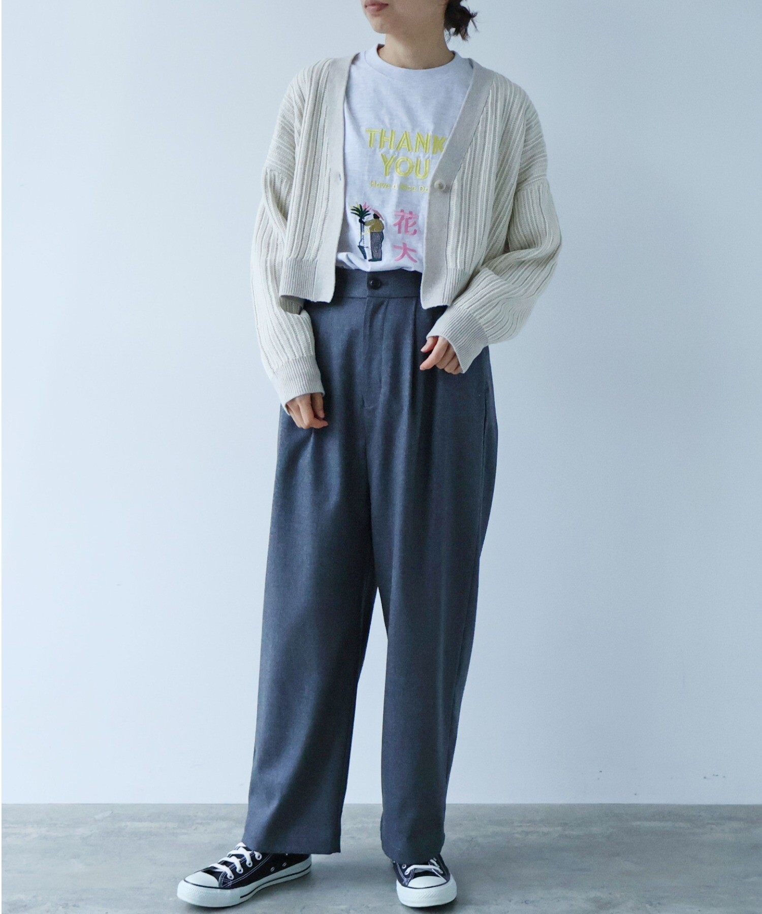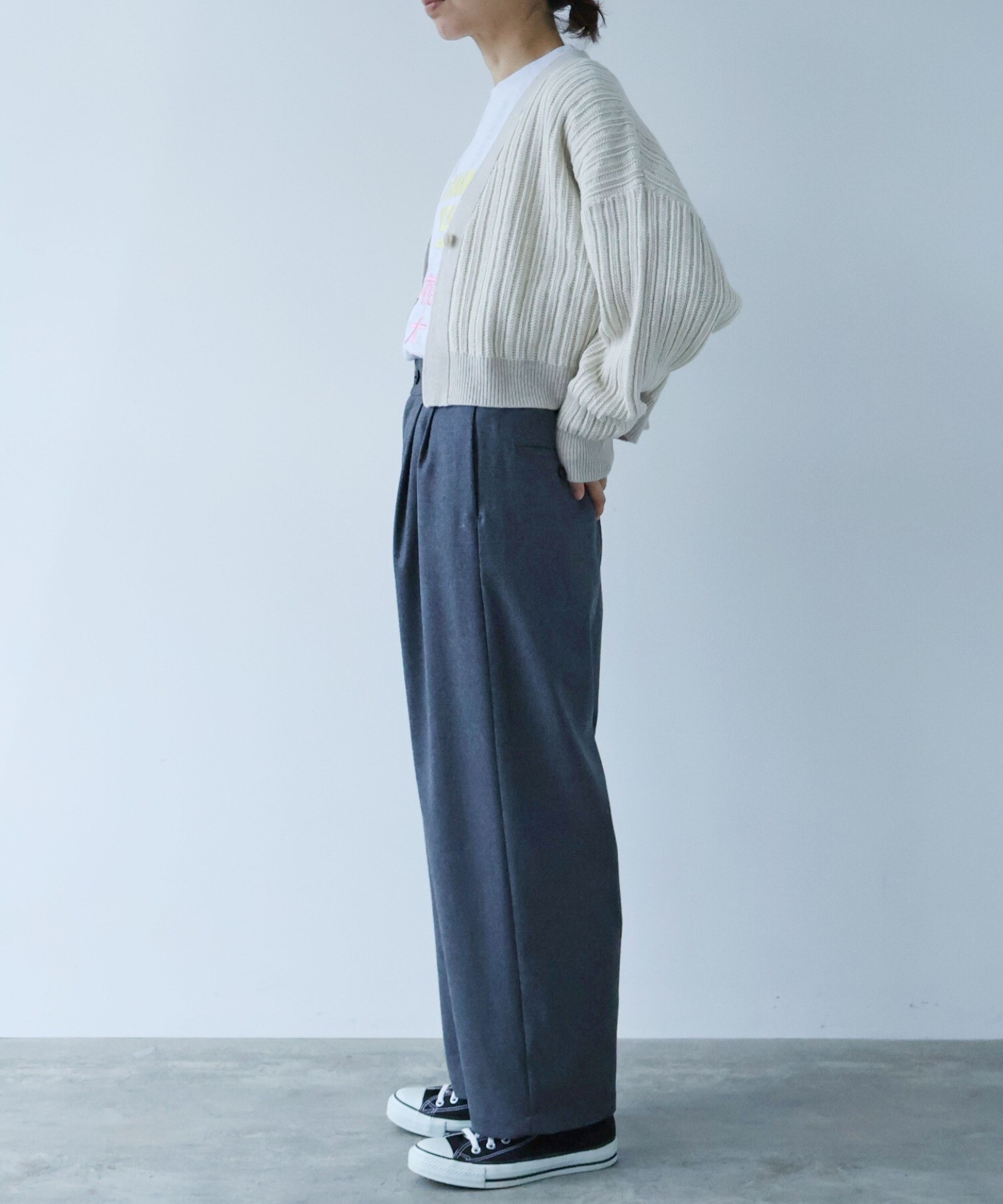 短めの着丈が、いつものコーディネートに変化をつけてくれます。
