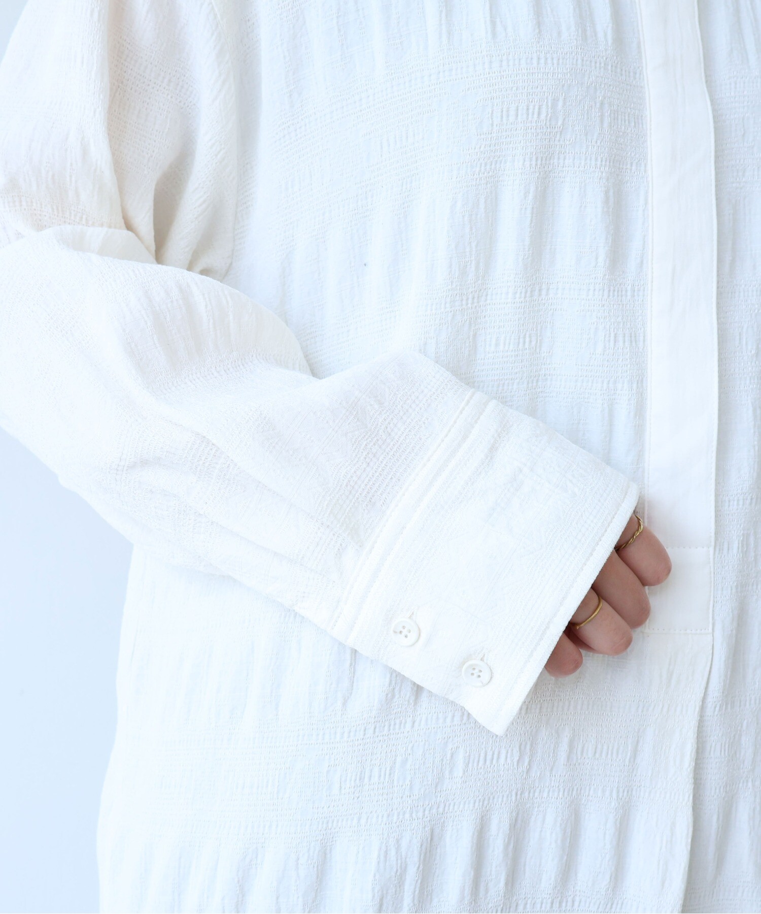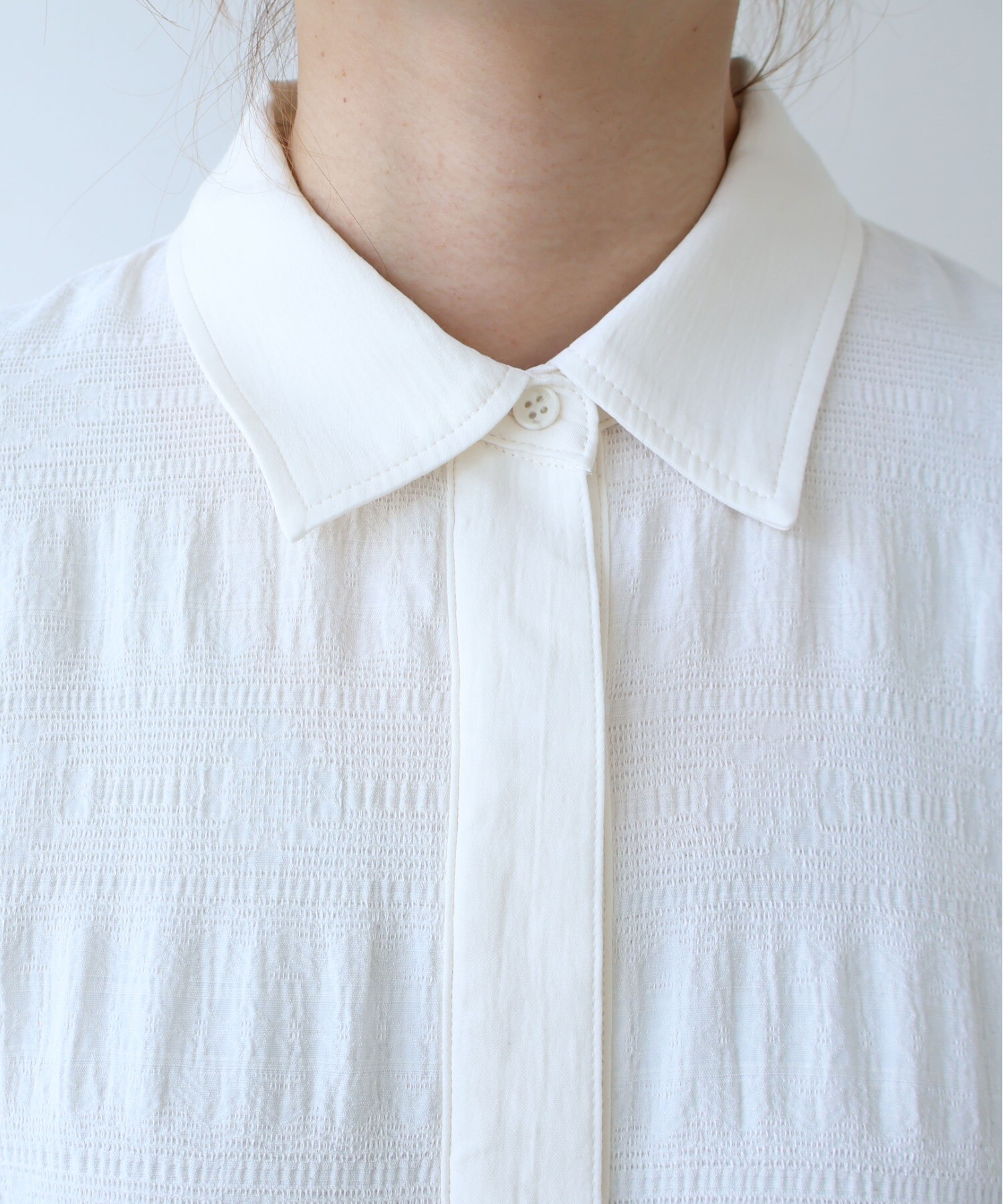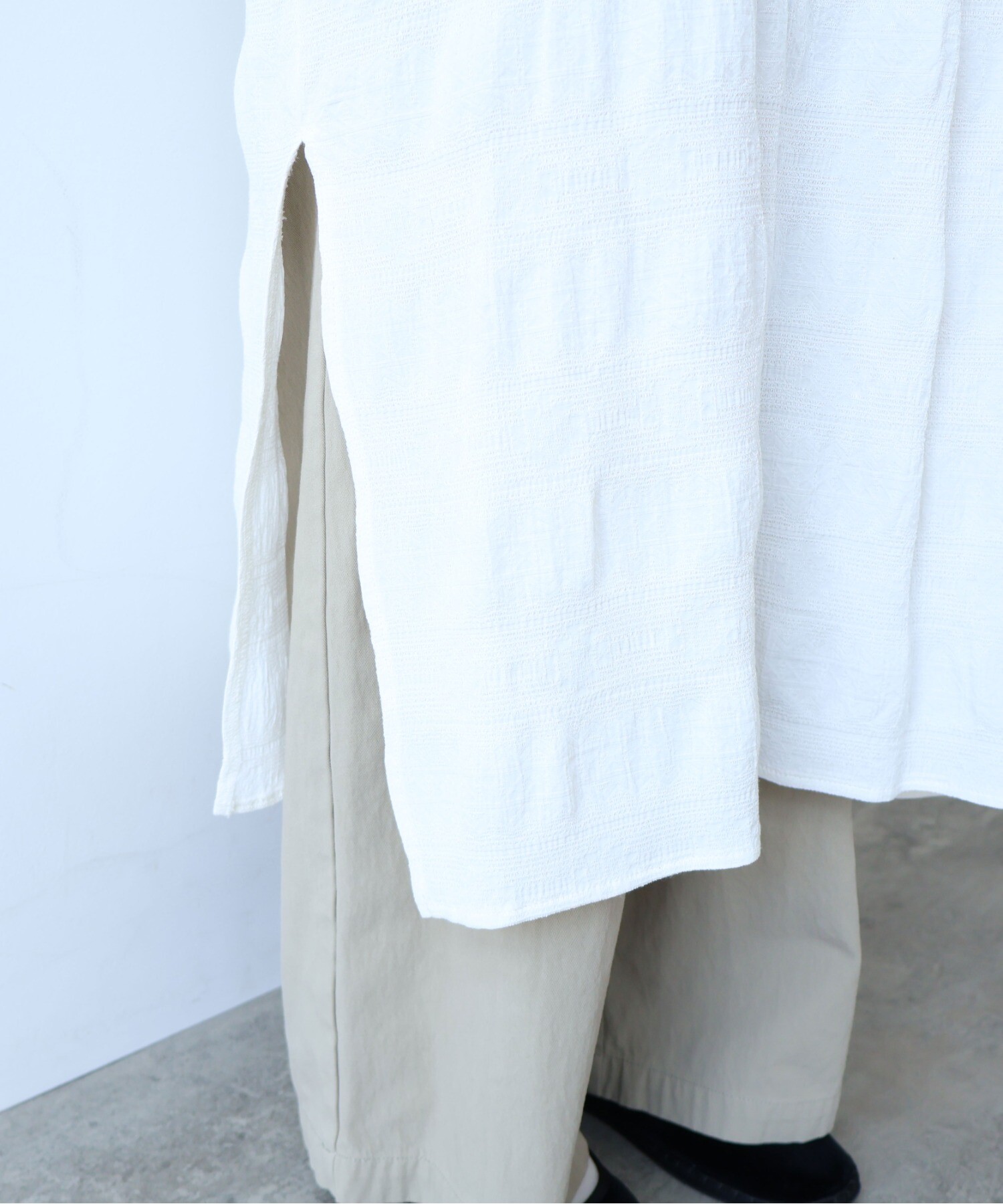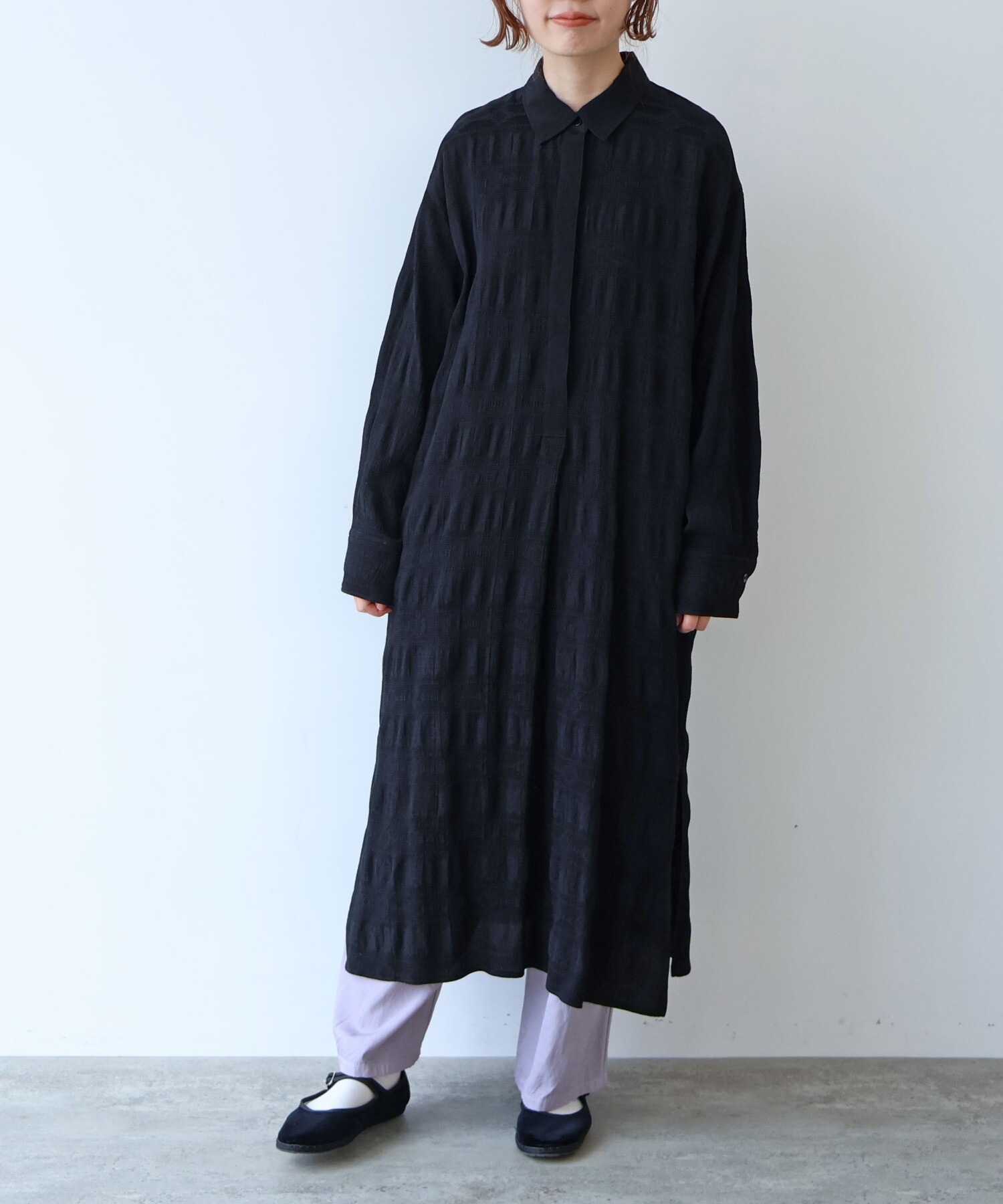 レーヨン×コットンの立体感あるテキスタイルのシャツワンピース。