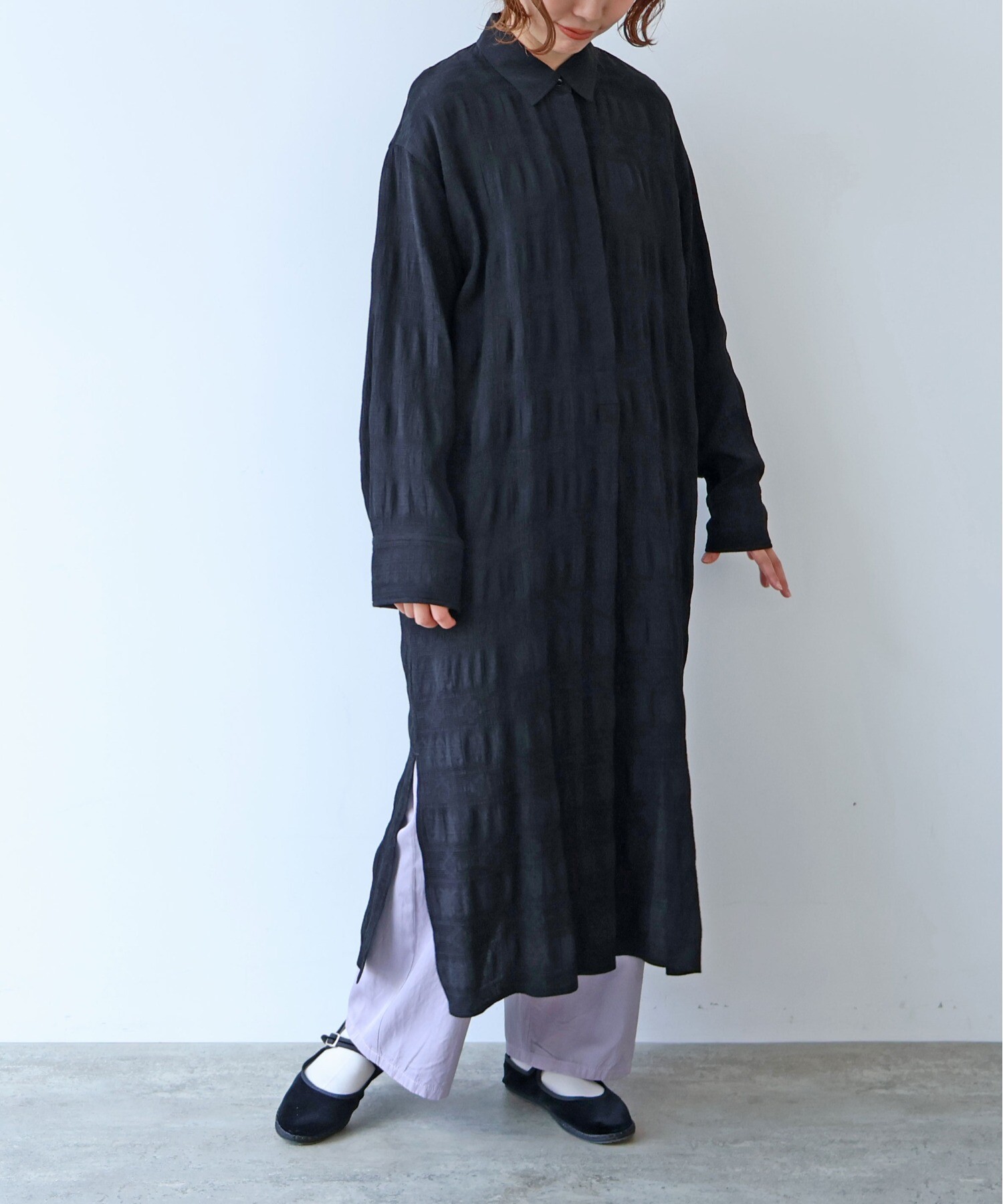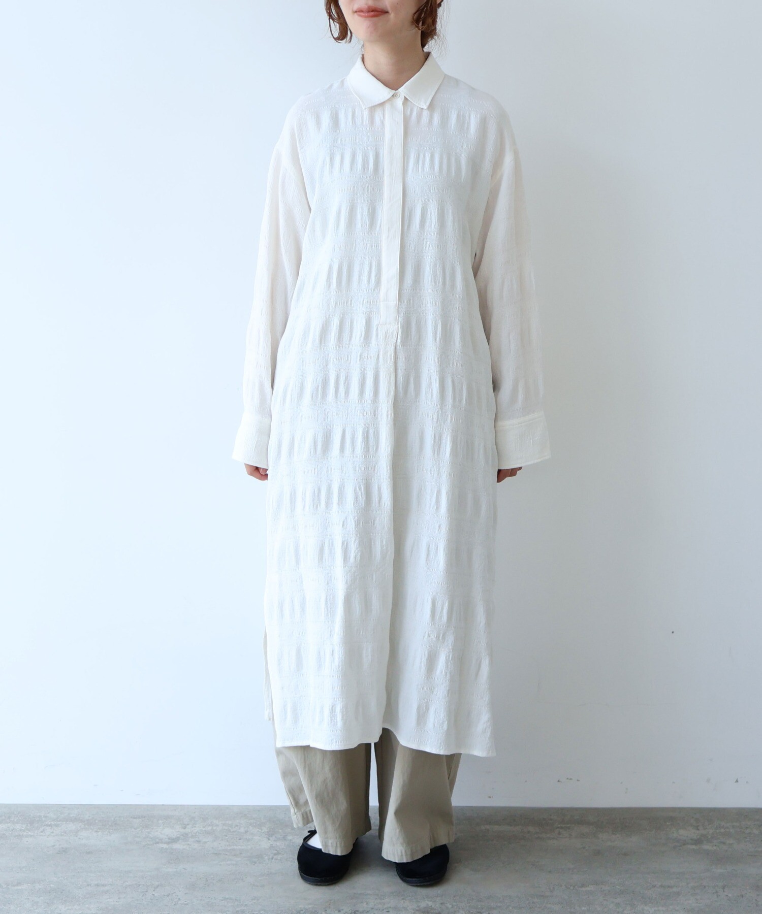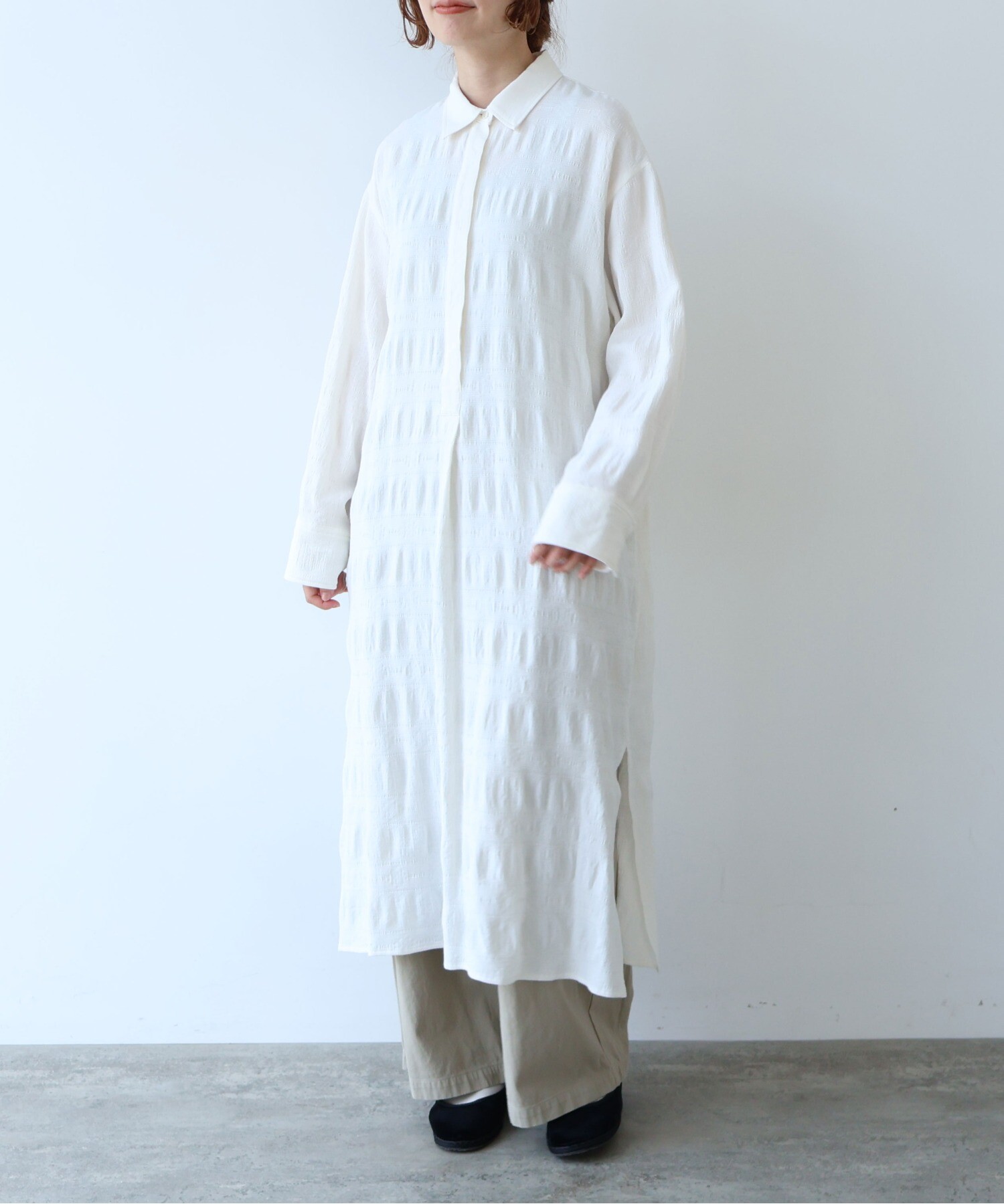 レーヨンコットンジャカード シャツワンピース