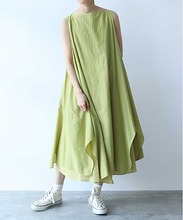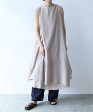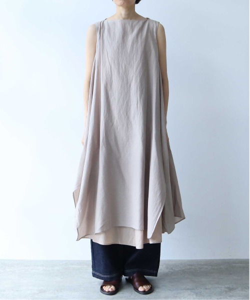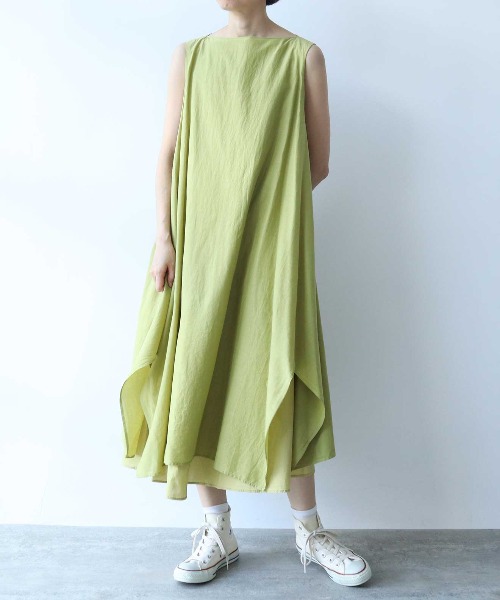 製品にしてから染めをかけることで上に重ねている生地と裾から見える生地の色の差を楽しめるデザイン。
