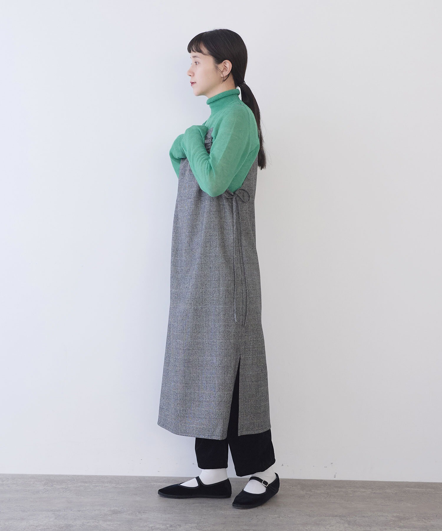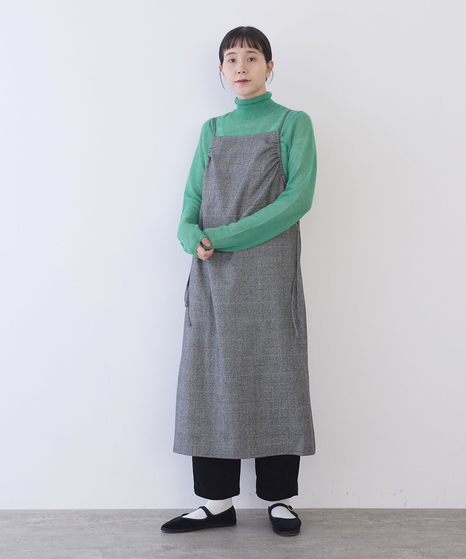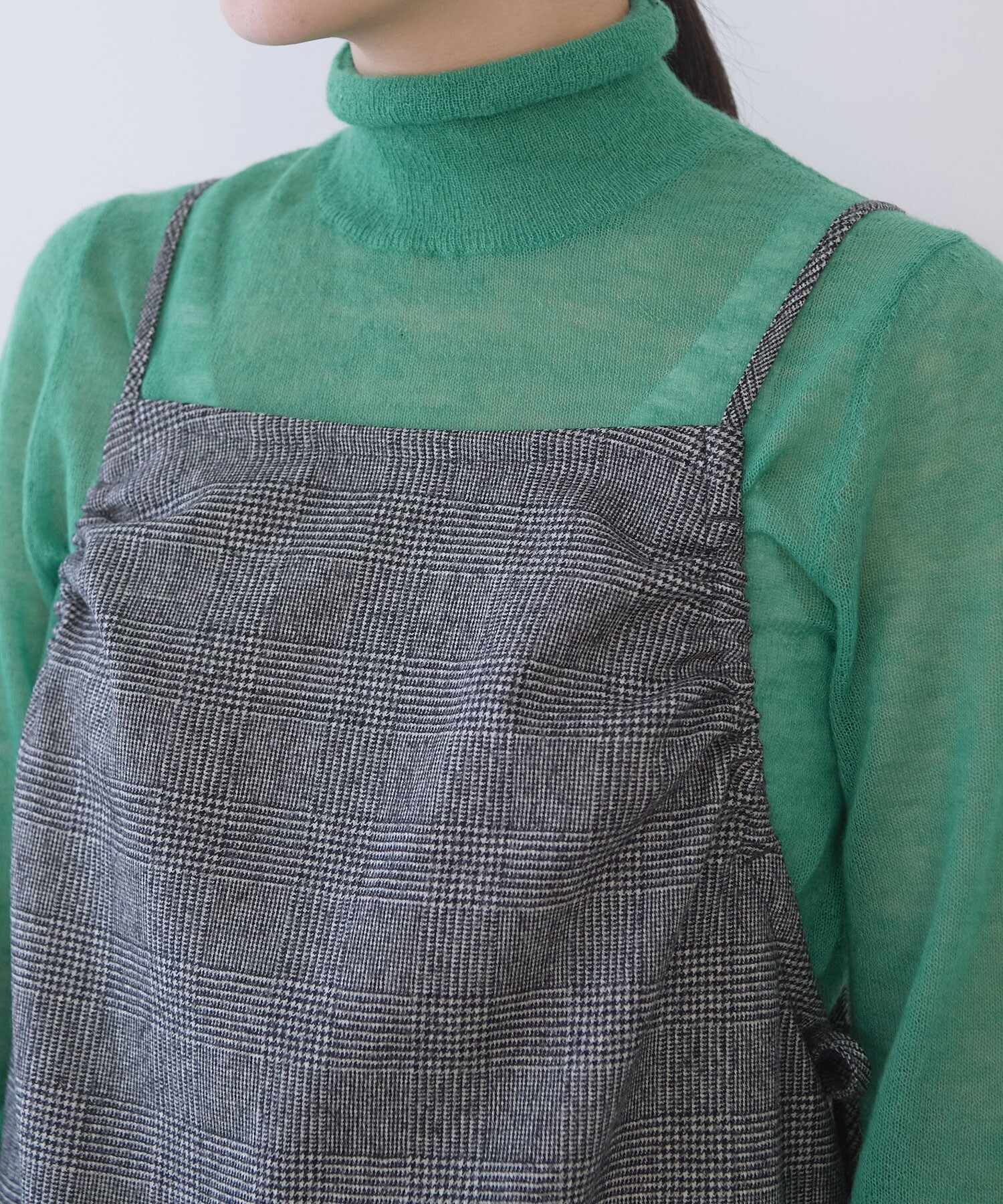 いつものニットやカットソーなどのトップスに重ねるだけで、ぐっと新鮮なスタイリングに。
