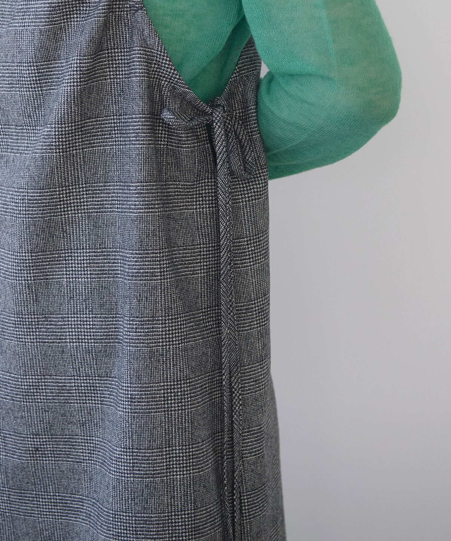 両脇に配したリボンは、結び方ひとつでシルエットを調整できるのがポイント。