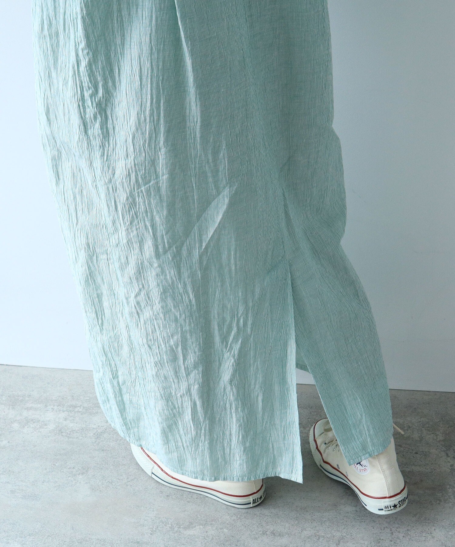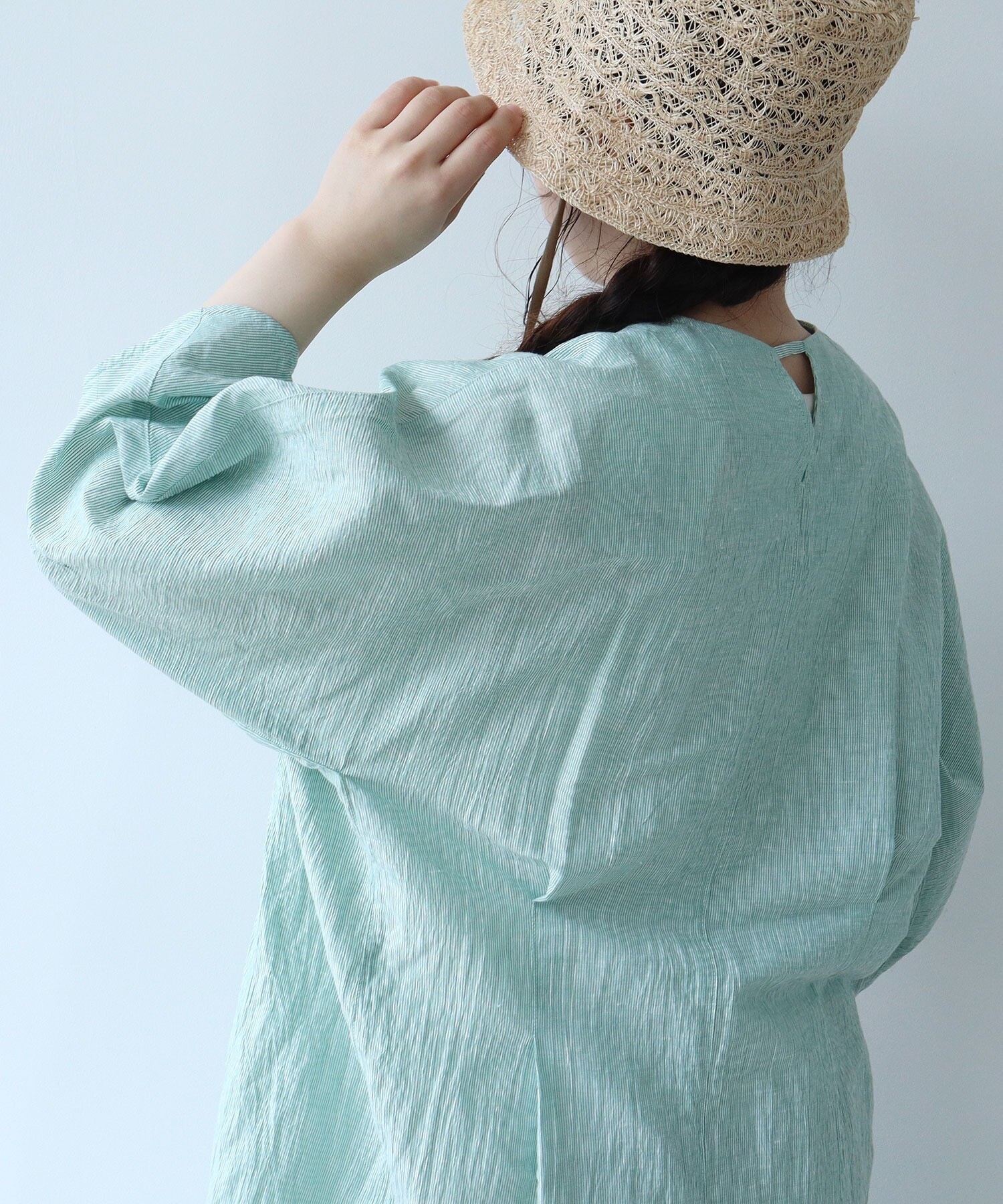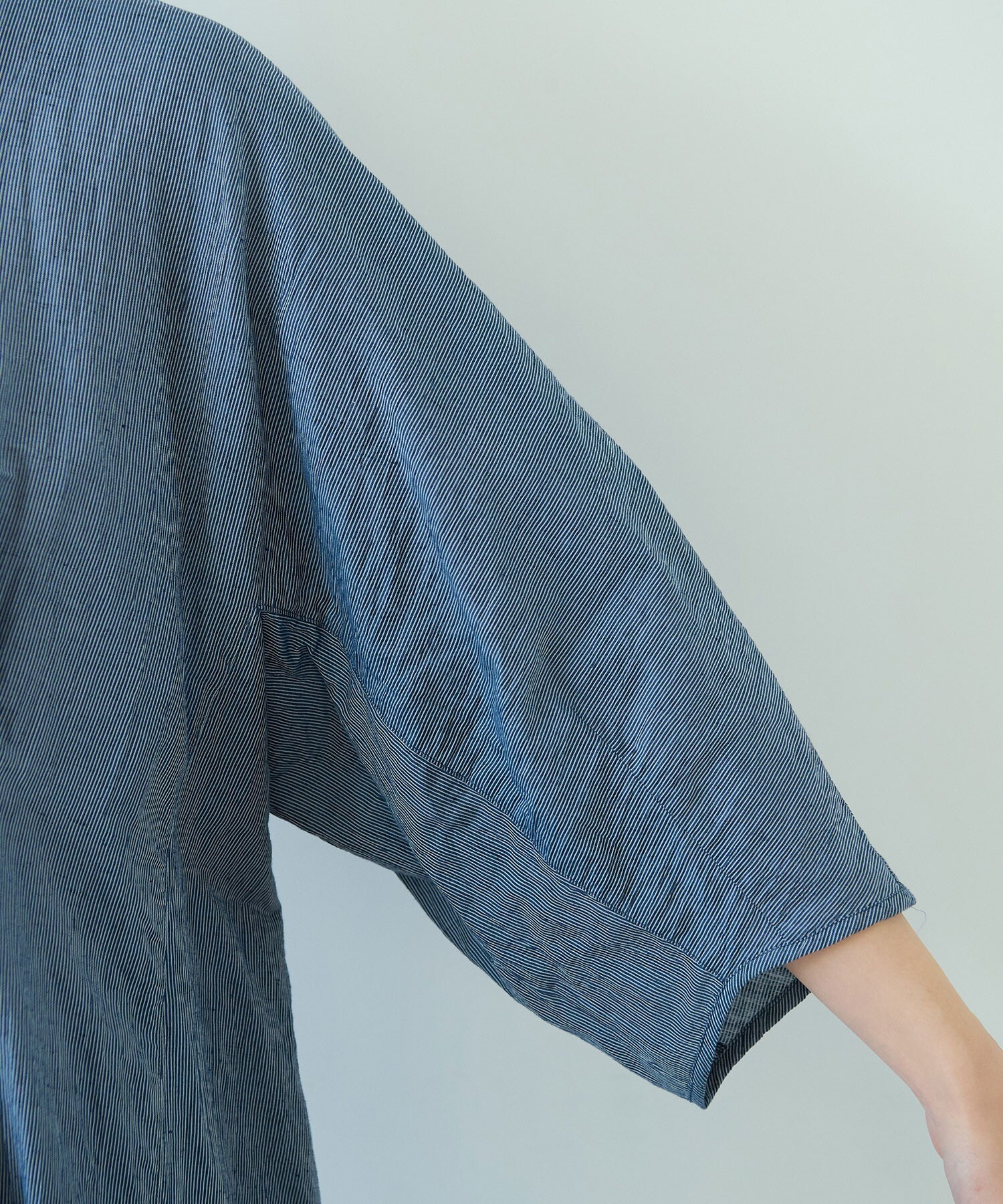 細かいストライプの柄感と合わさり、立体感が出るアイテムです。