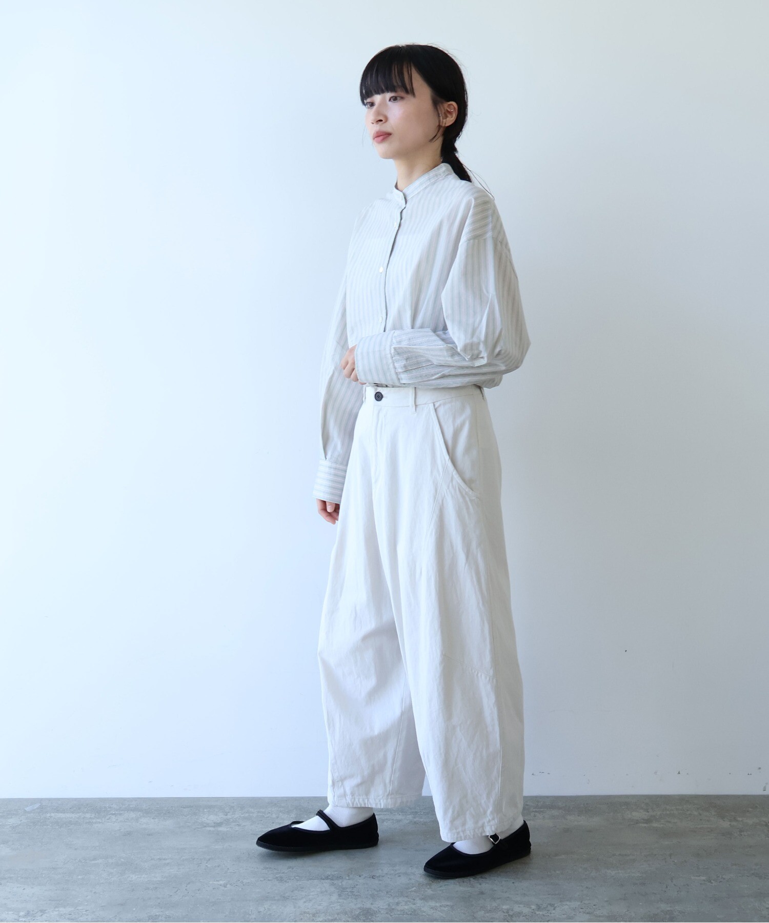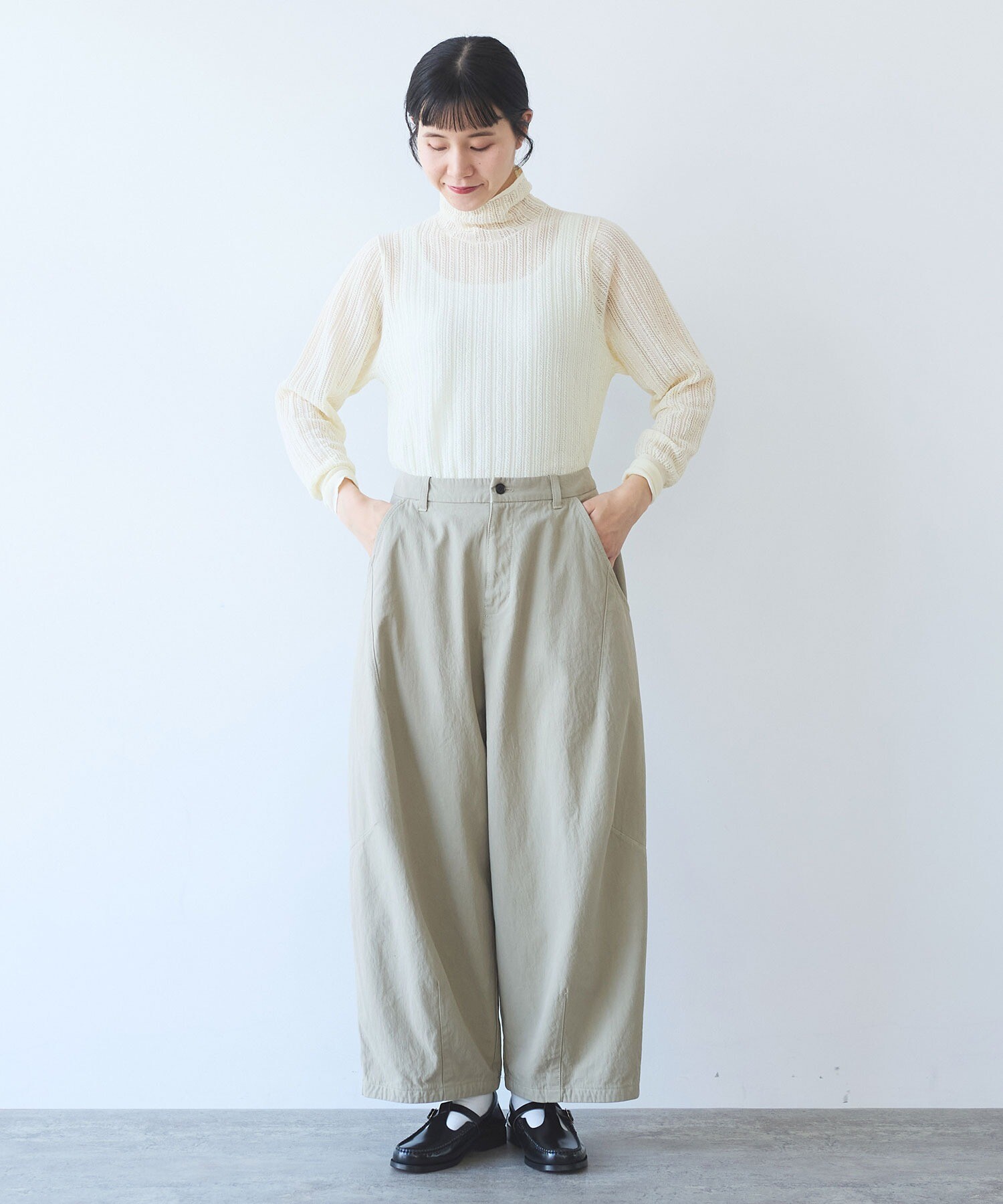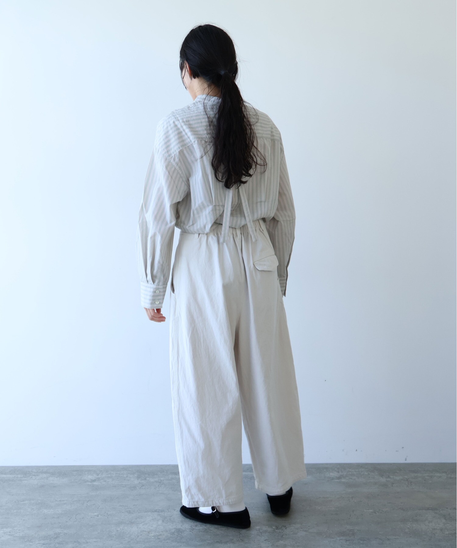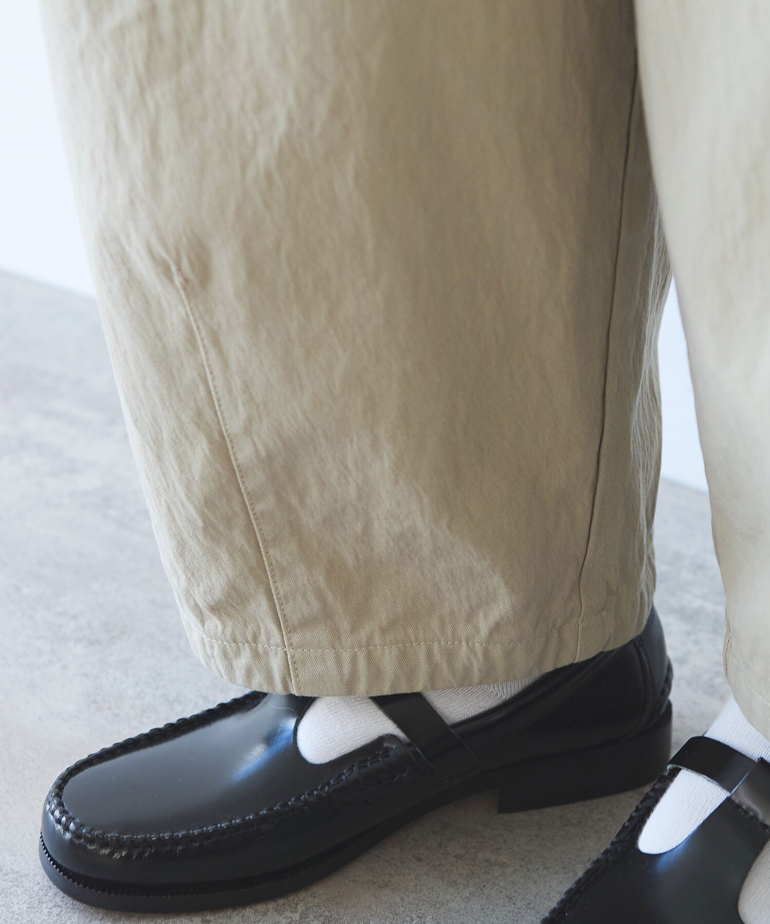 ゴムの位置にもひと工夫して、 前から見たときのラインはすっきり整えました。