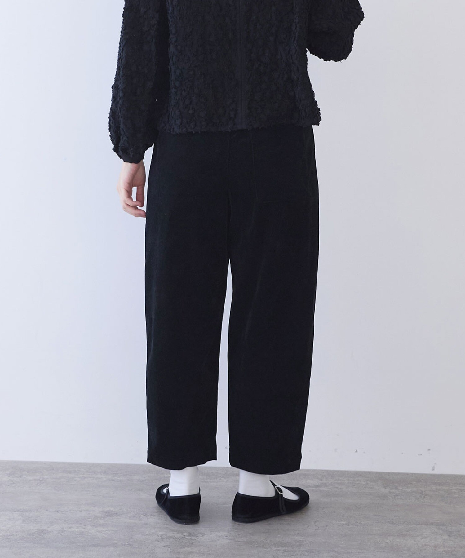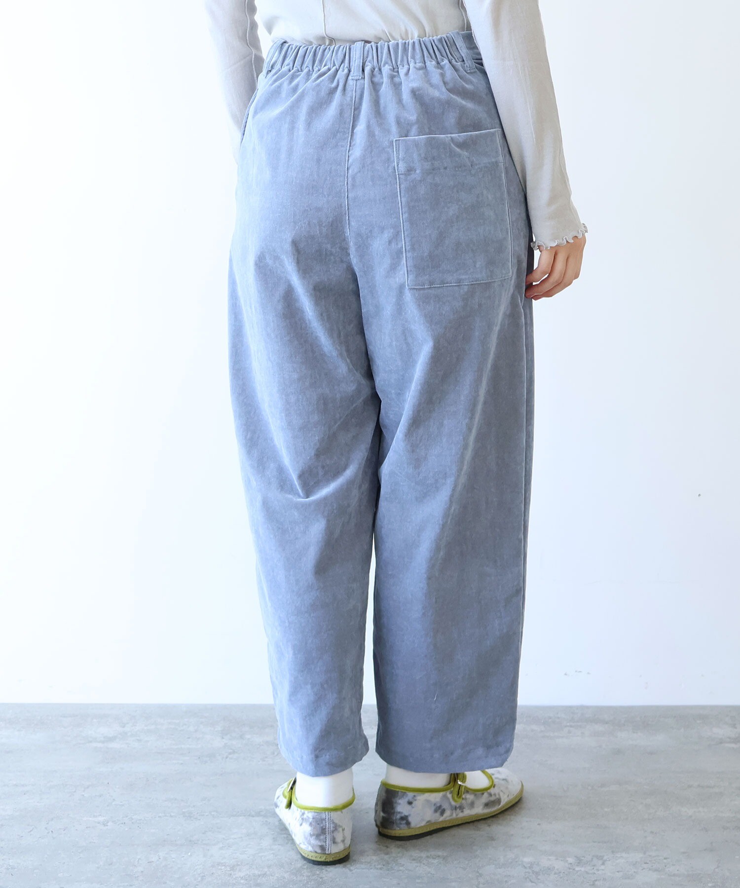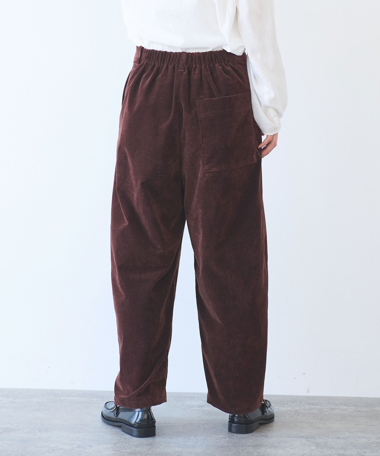 秋冬らしく、yuni定番のバックゴムパンツを、やわらかなコーデュロイで仕立てました。