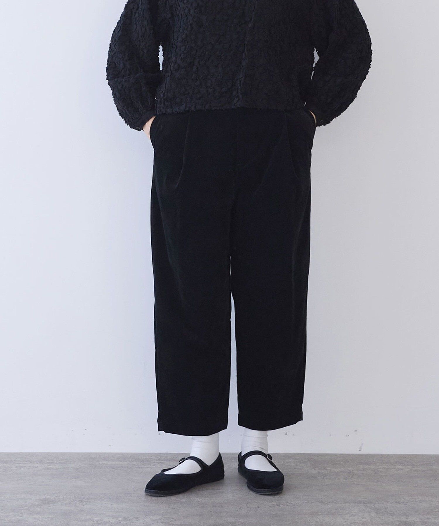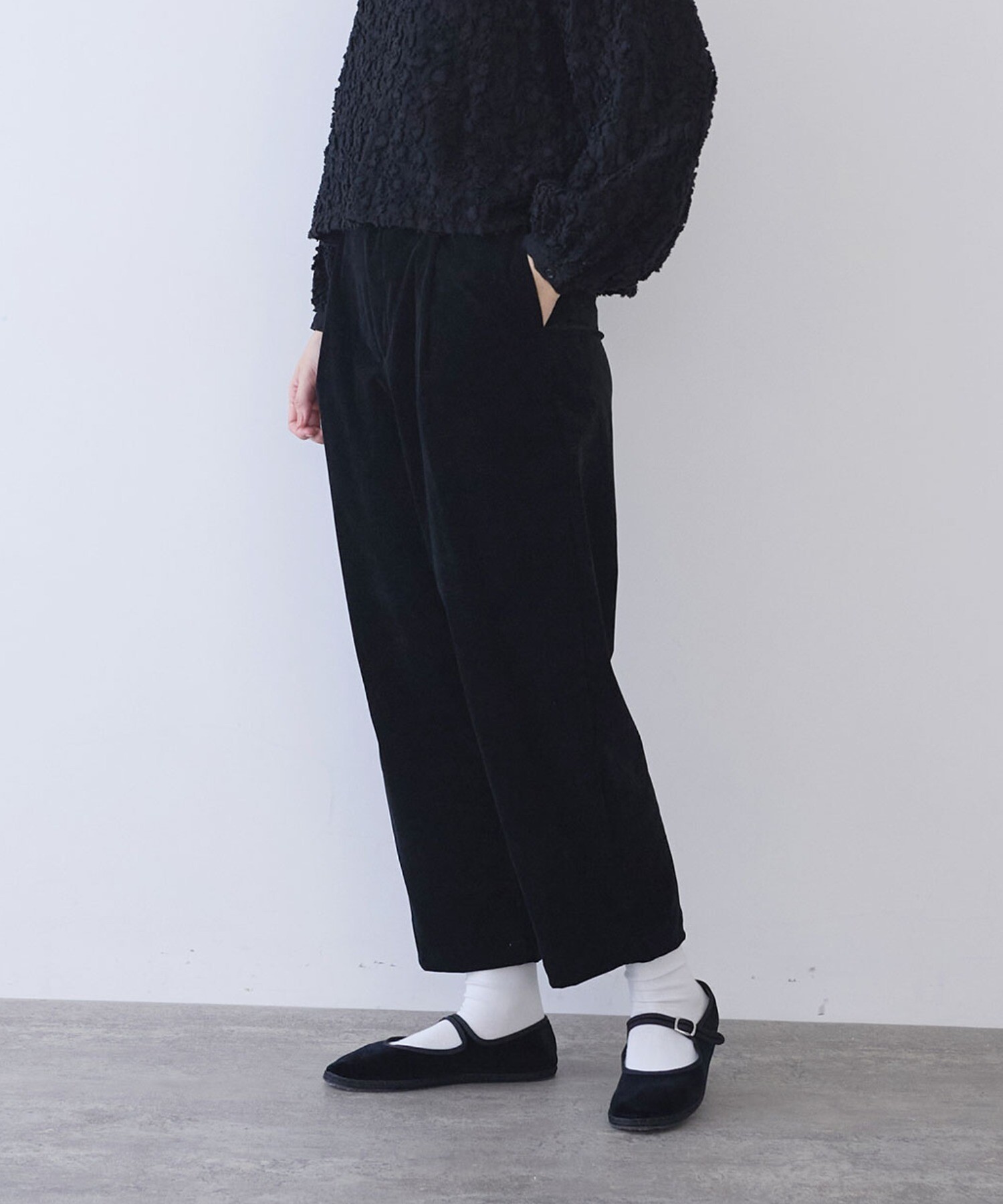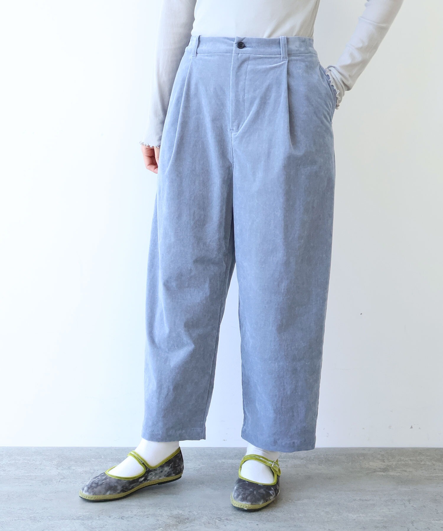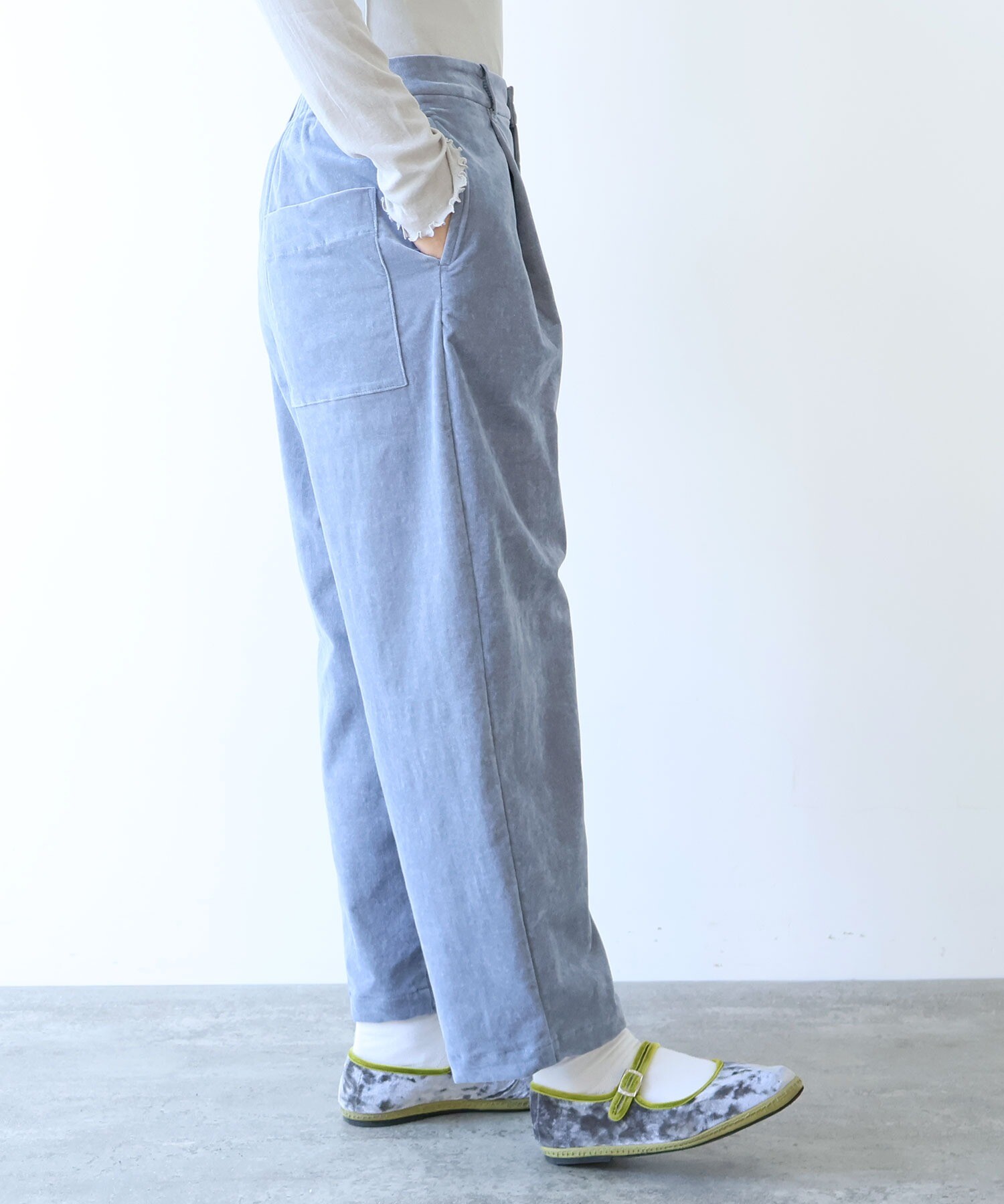 秋冬らしく、yuni定番のバックゴムパンツを、やわらかなコーデュロイで仕立てました。