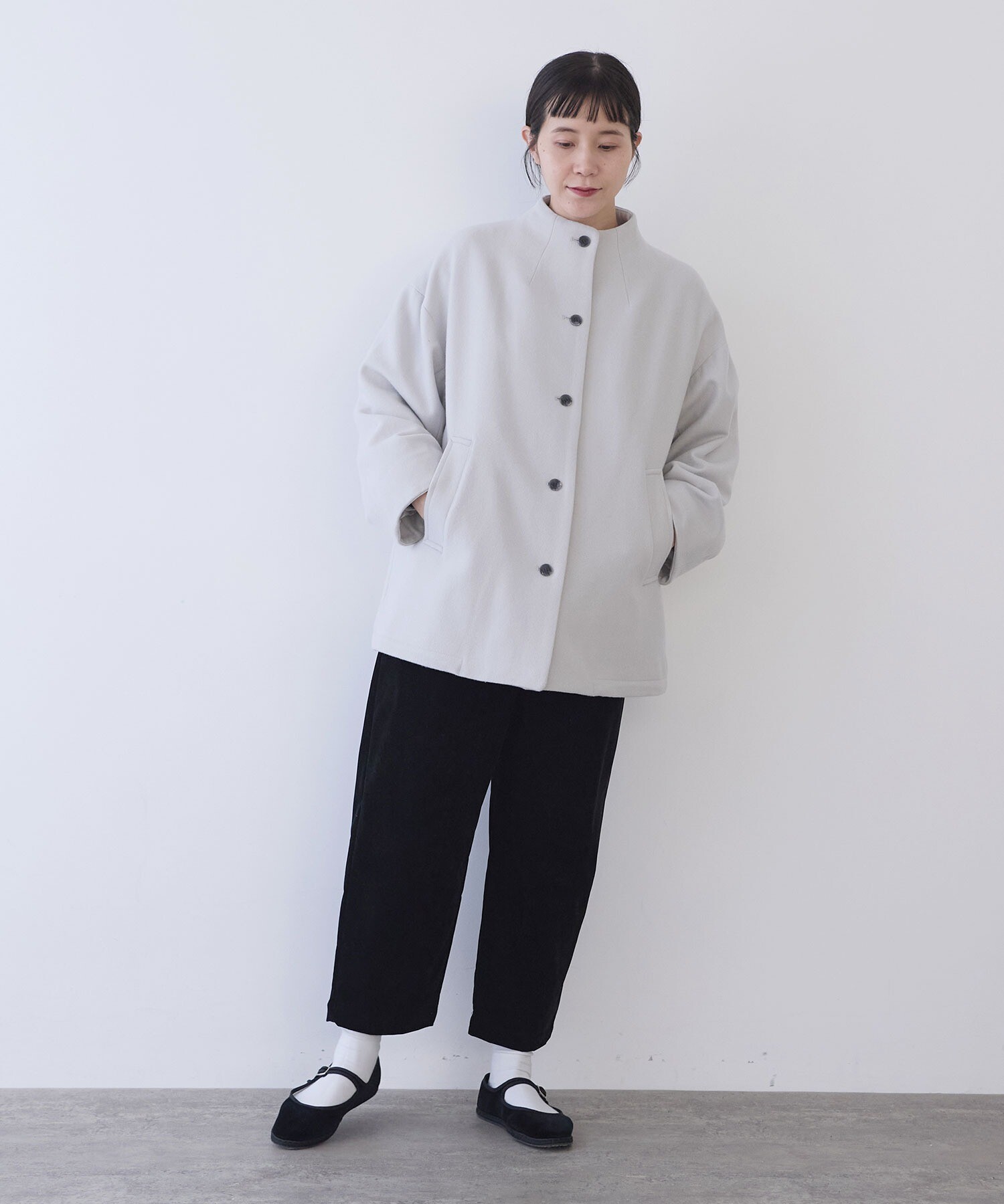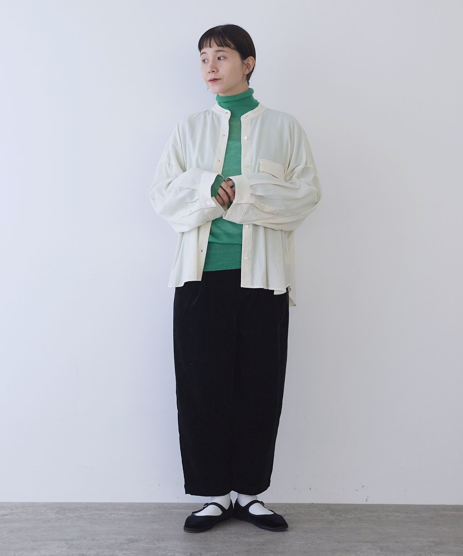丸みのあるやさしいシルエットはそのままに、 コーディネートの幅を広げてくれる一本です。