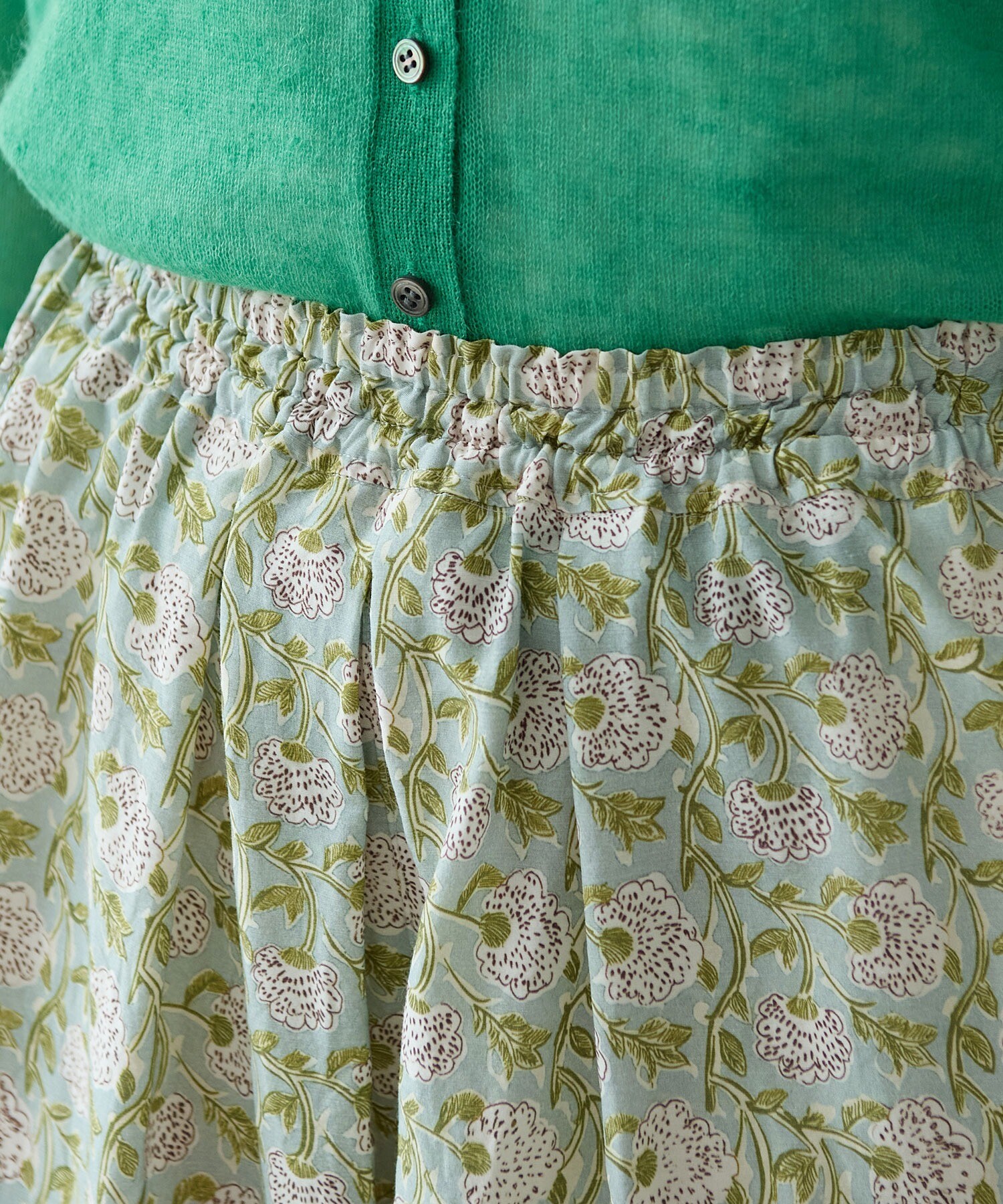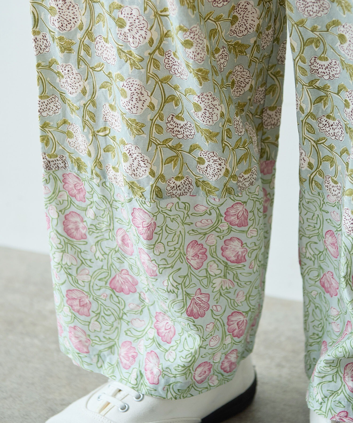 裾には切り替えを入れて、色や柄が少しずつ変わるようにデザイン。