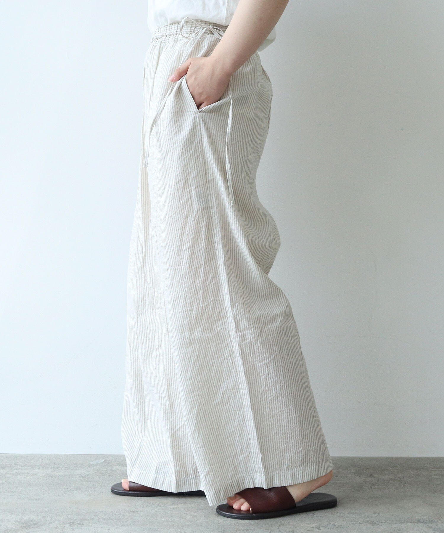 リラックスしてカジュアルに季節を楽しめるゆったりとしたワイドシルエットパンツ。