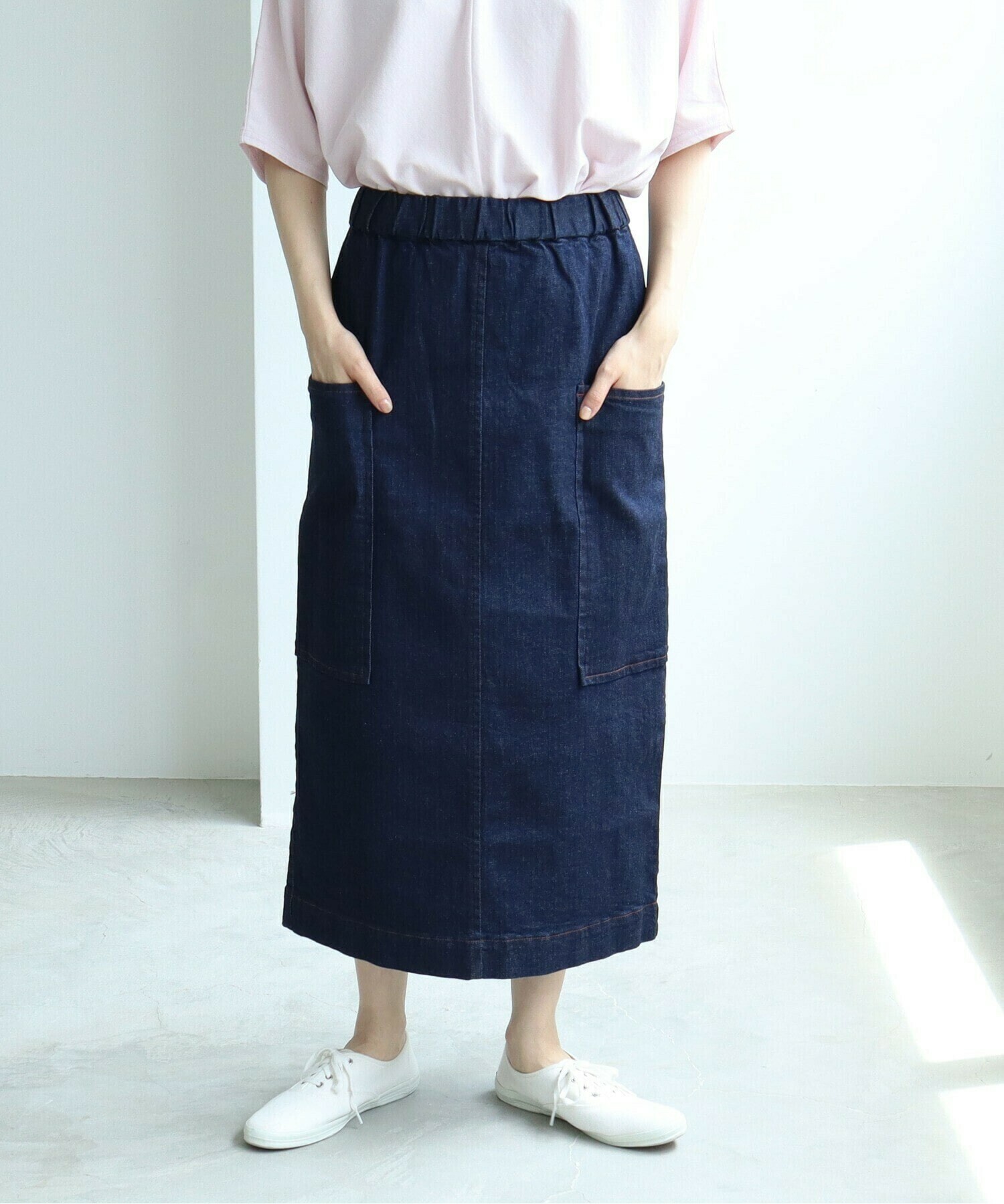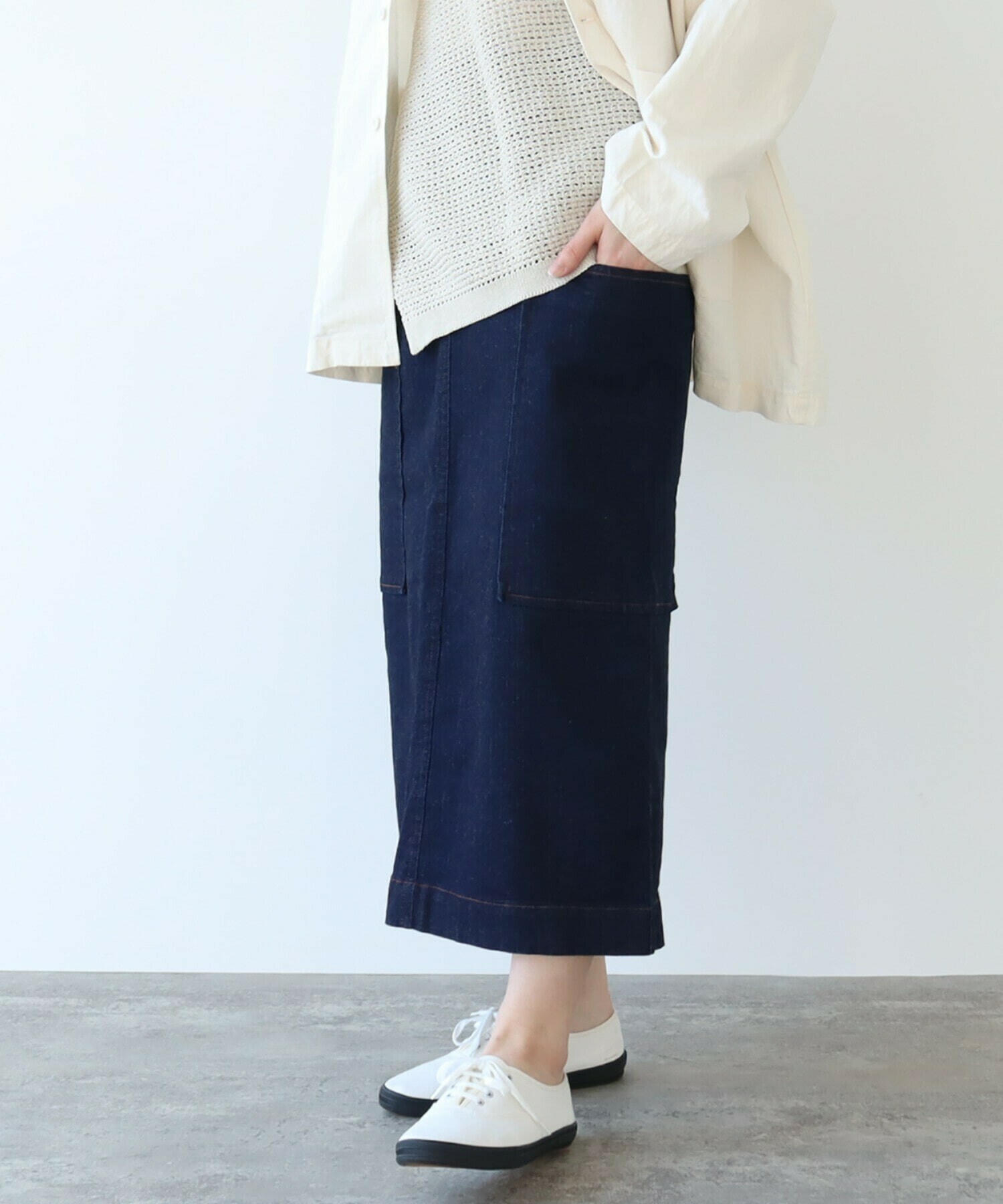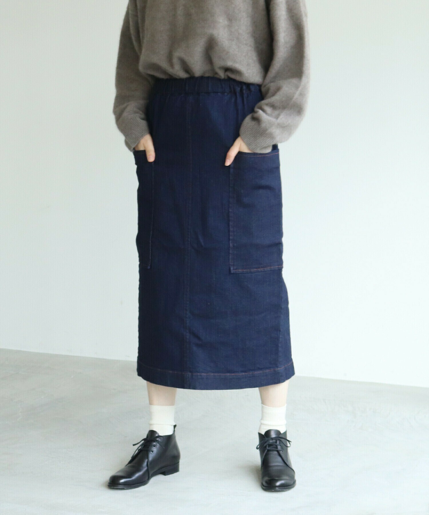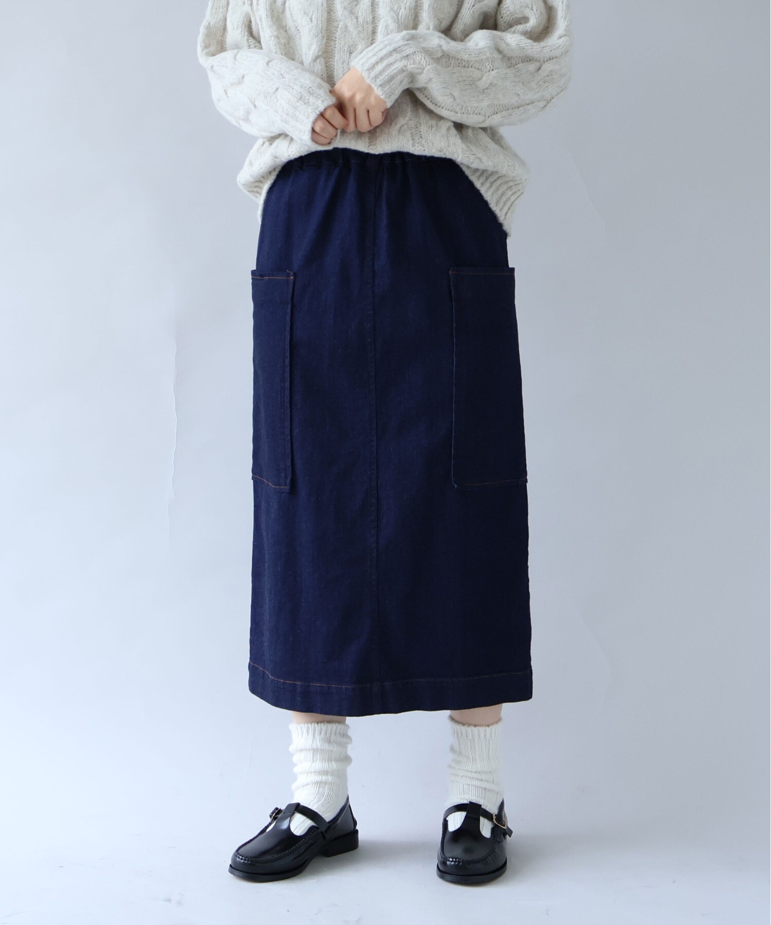 一年を通して頼れる、やわらかムラ糸デニムのタイトスカート。