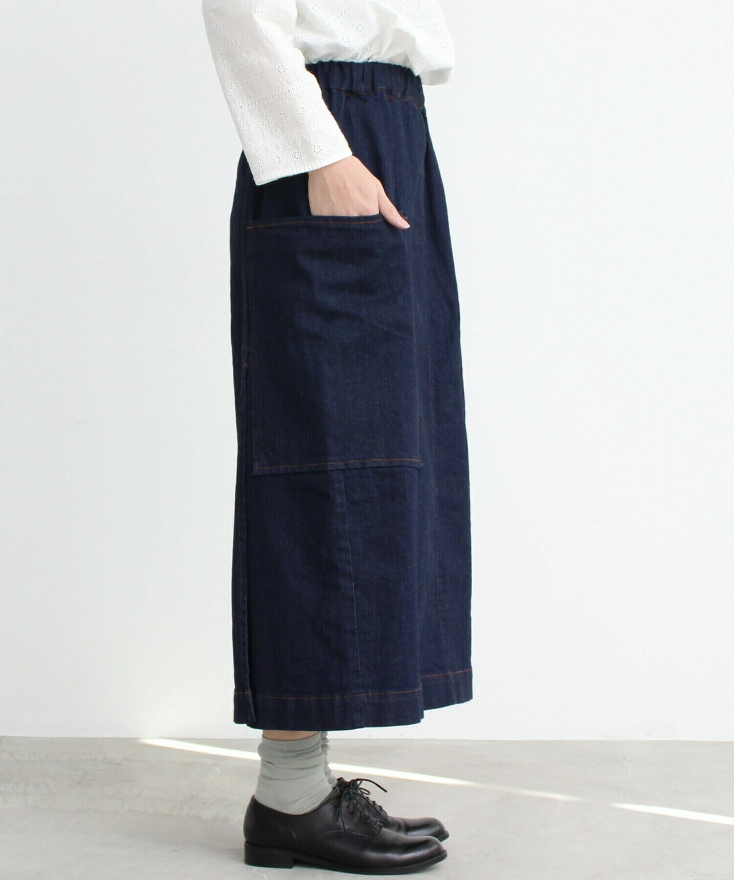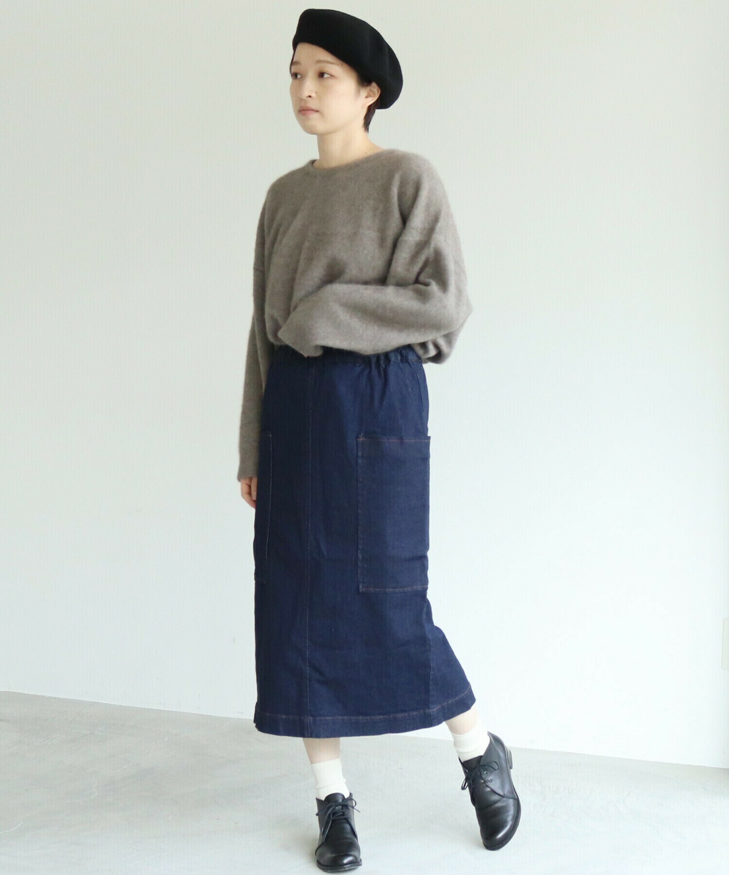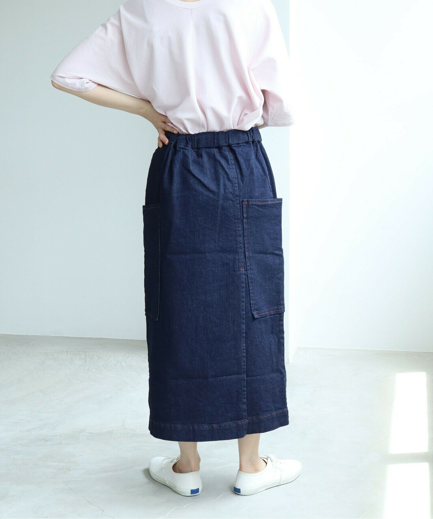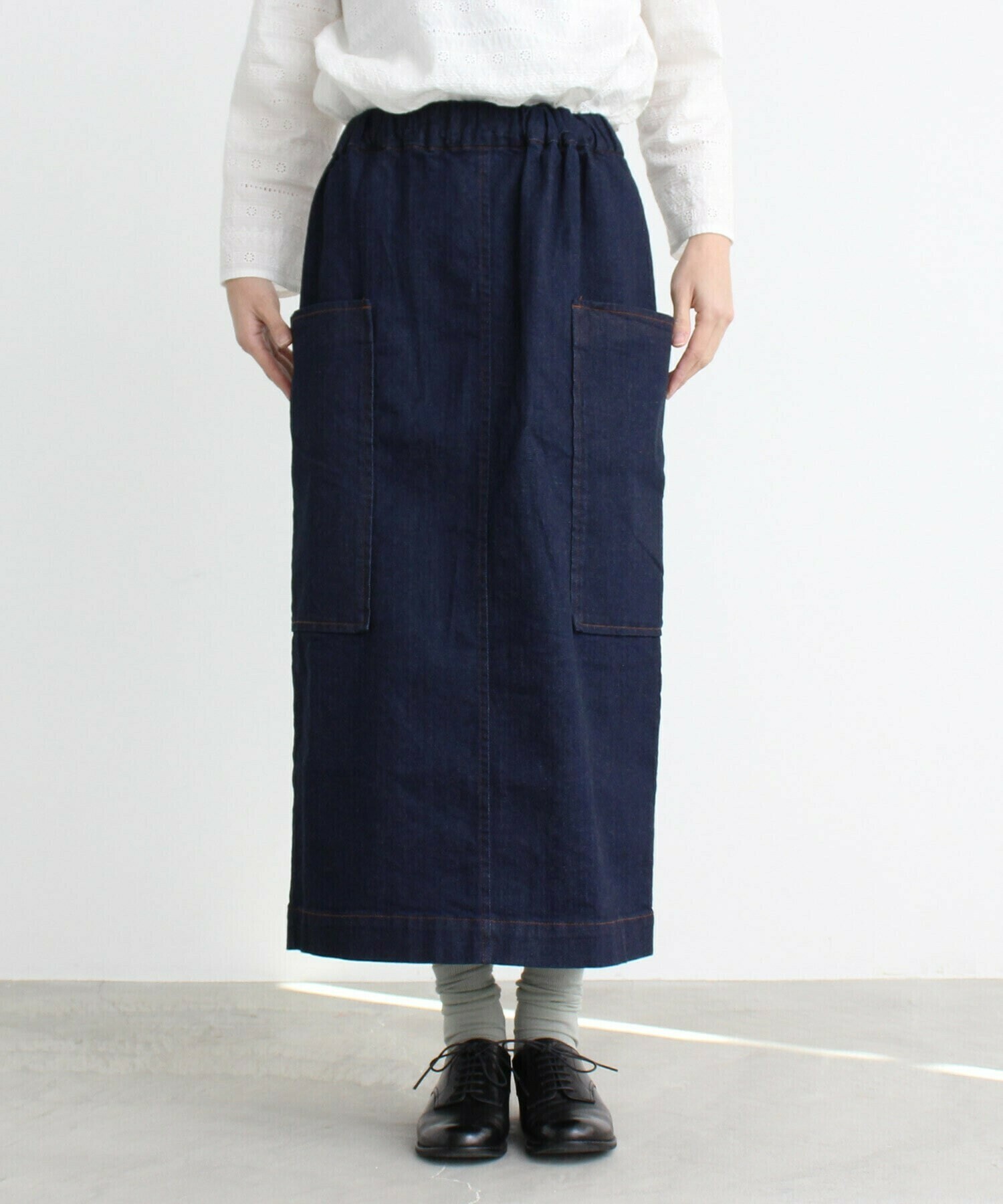 一年を通して頼れる、やわらかムラ糸デニムのタイトスカート。