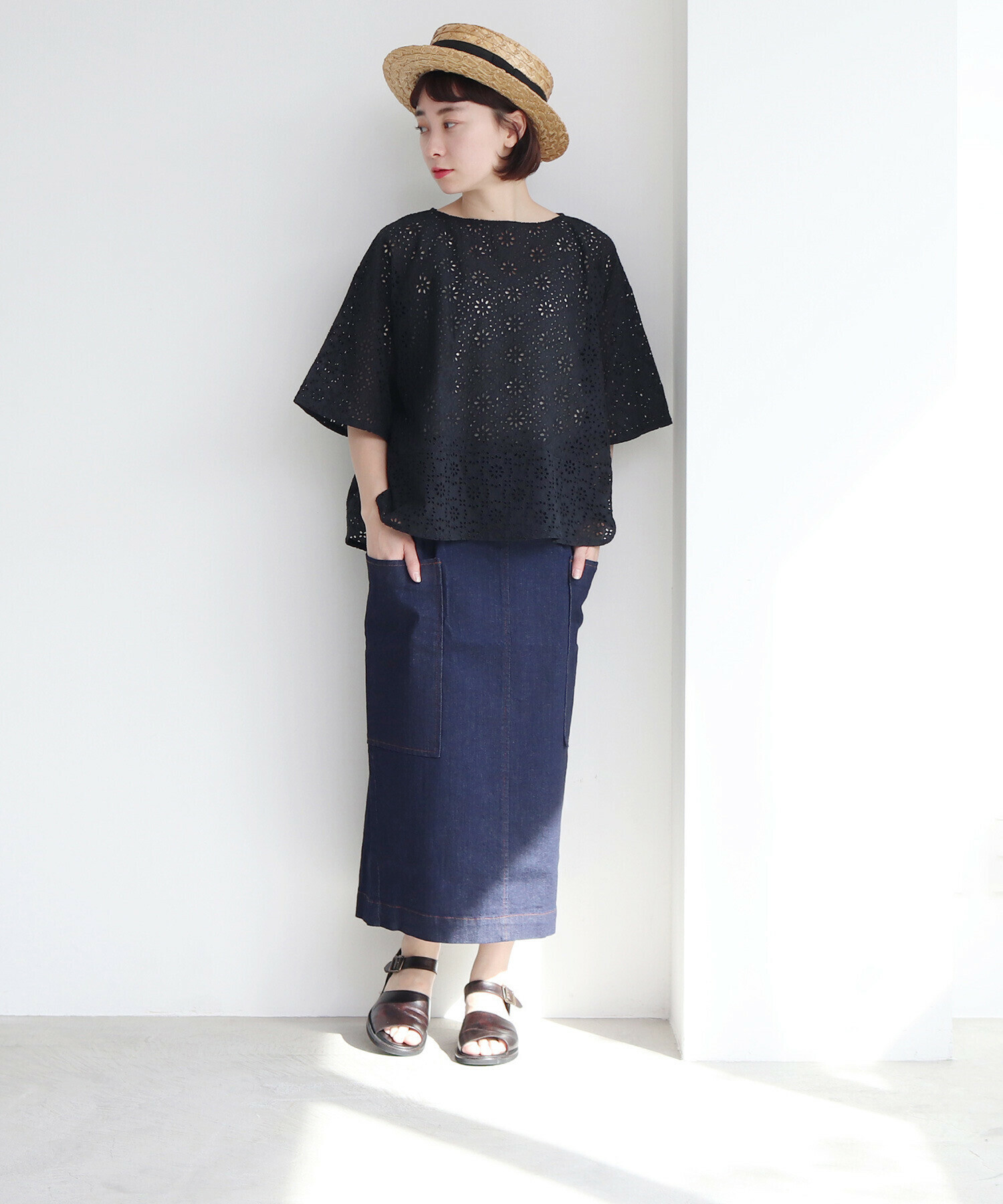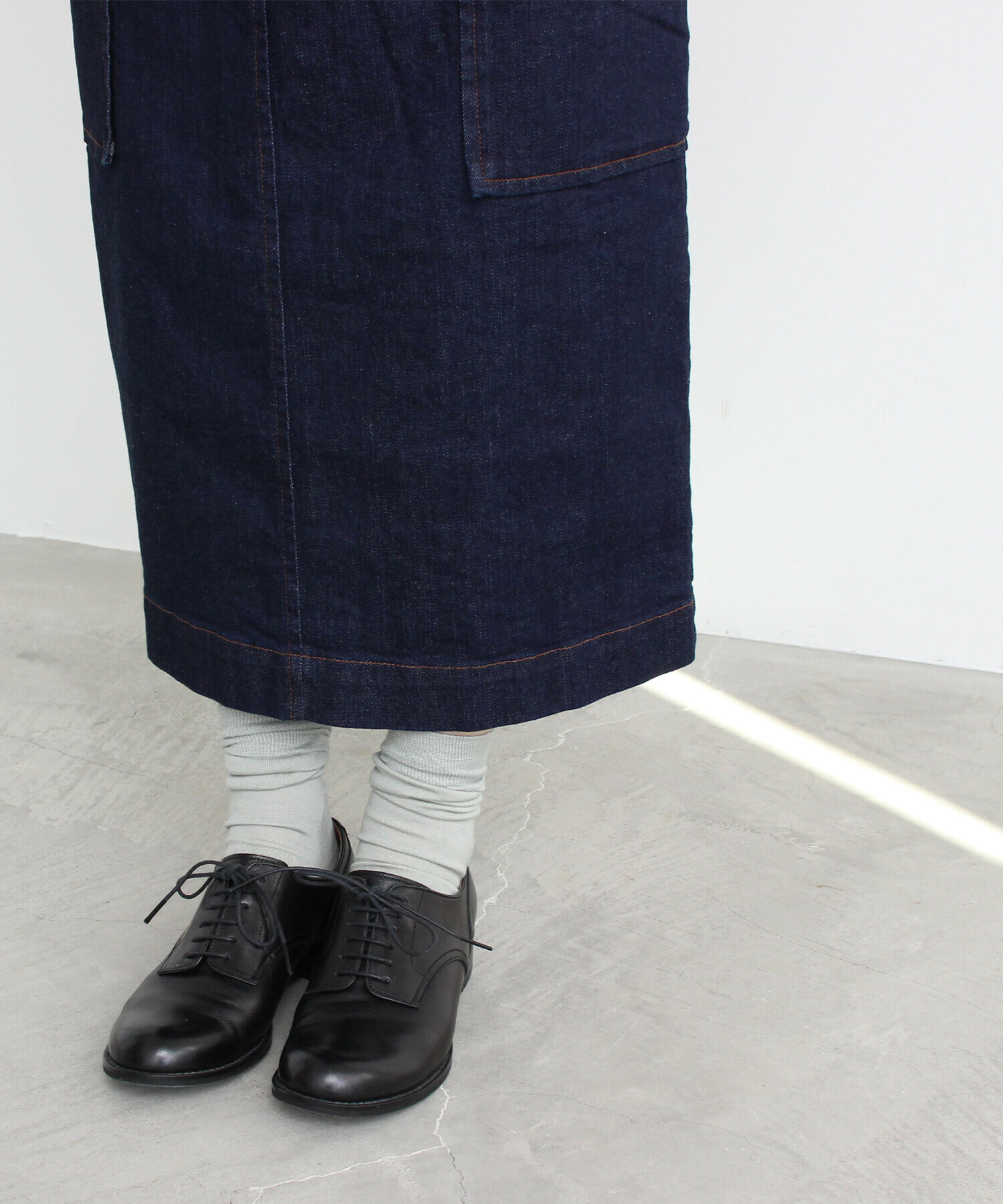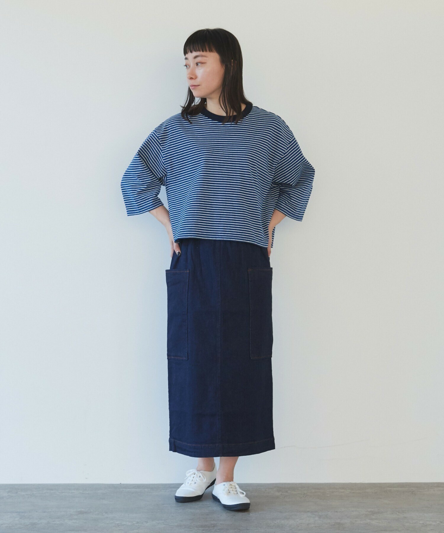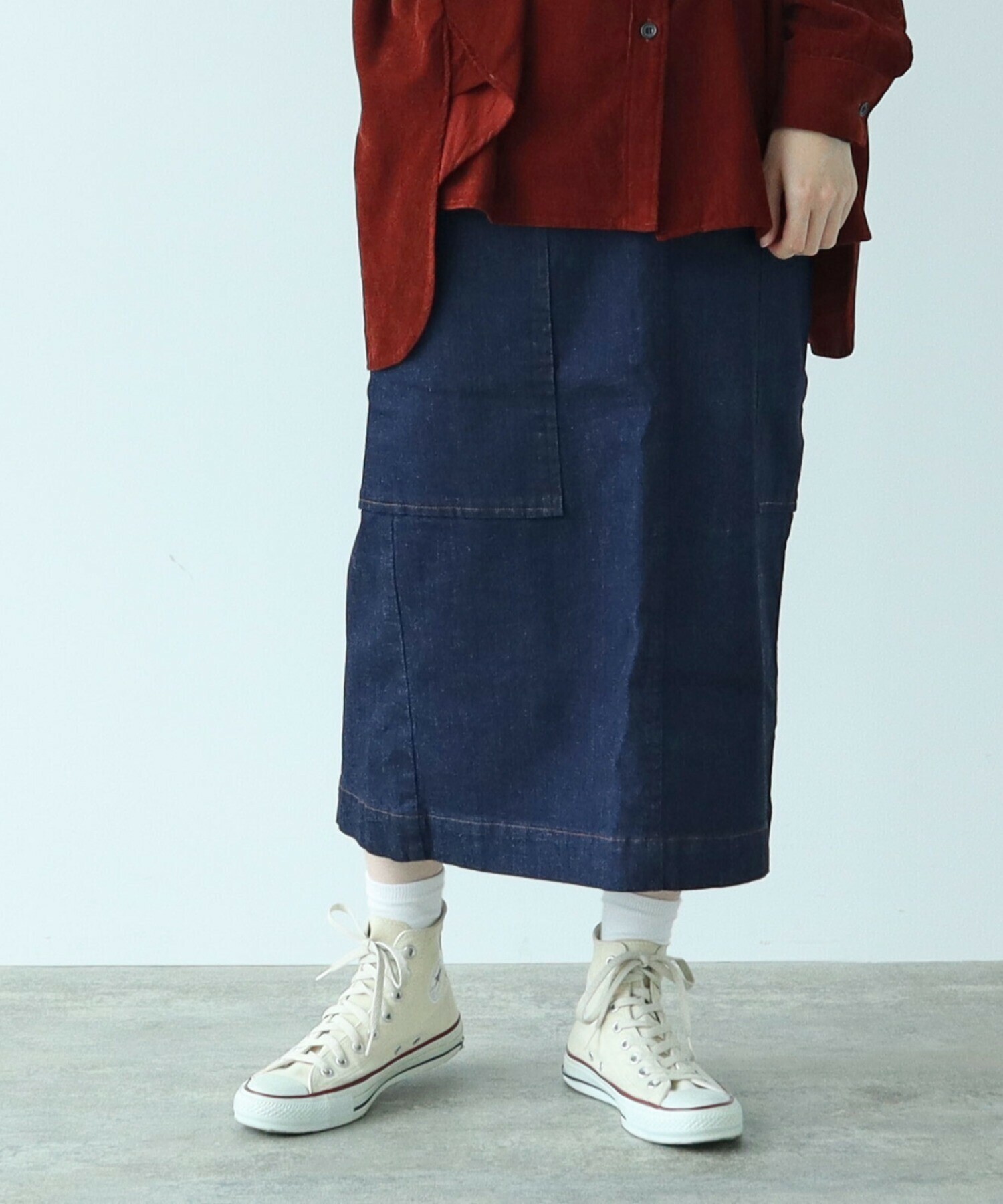 一年を通して頼れる、やわらかムラ糸デニムのタイトスカート。