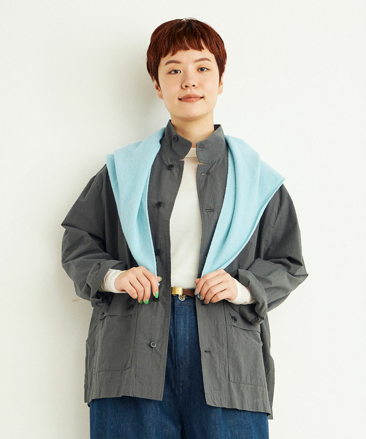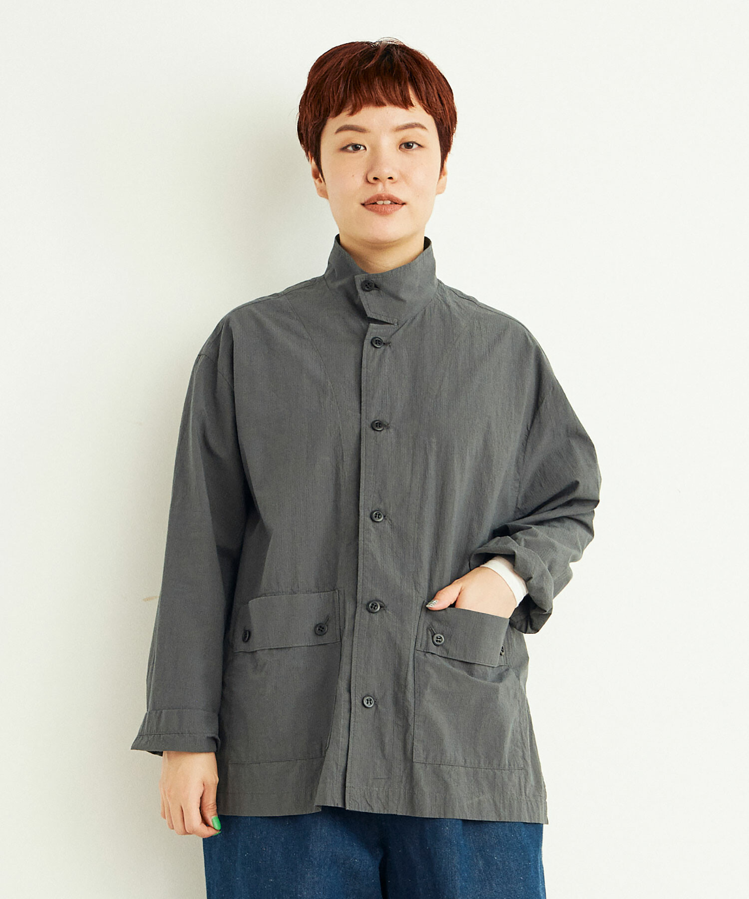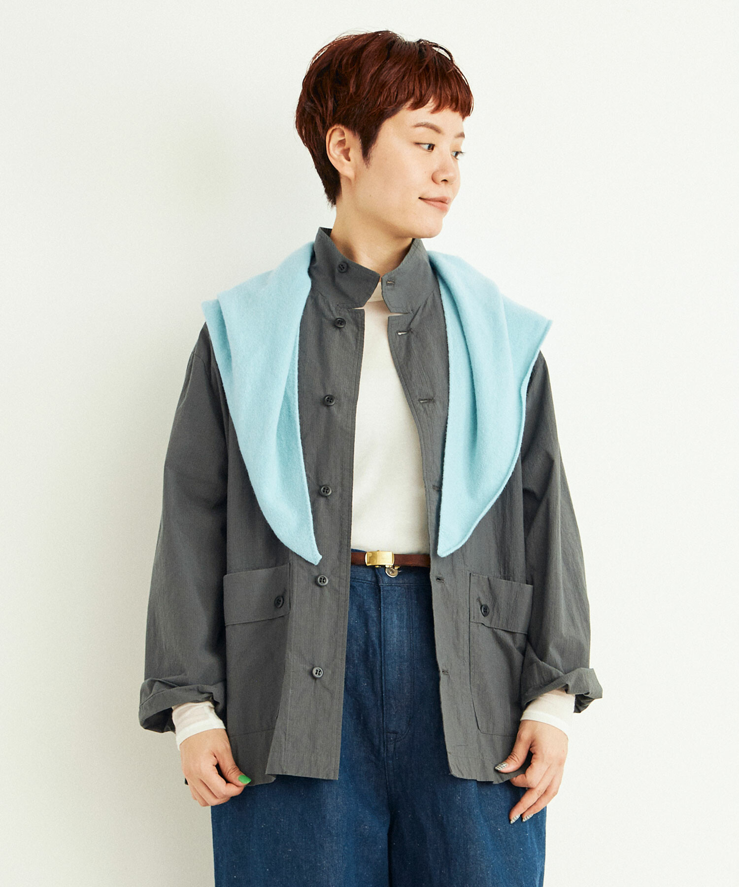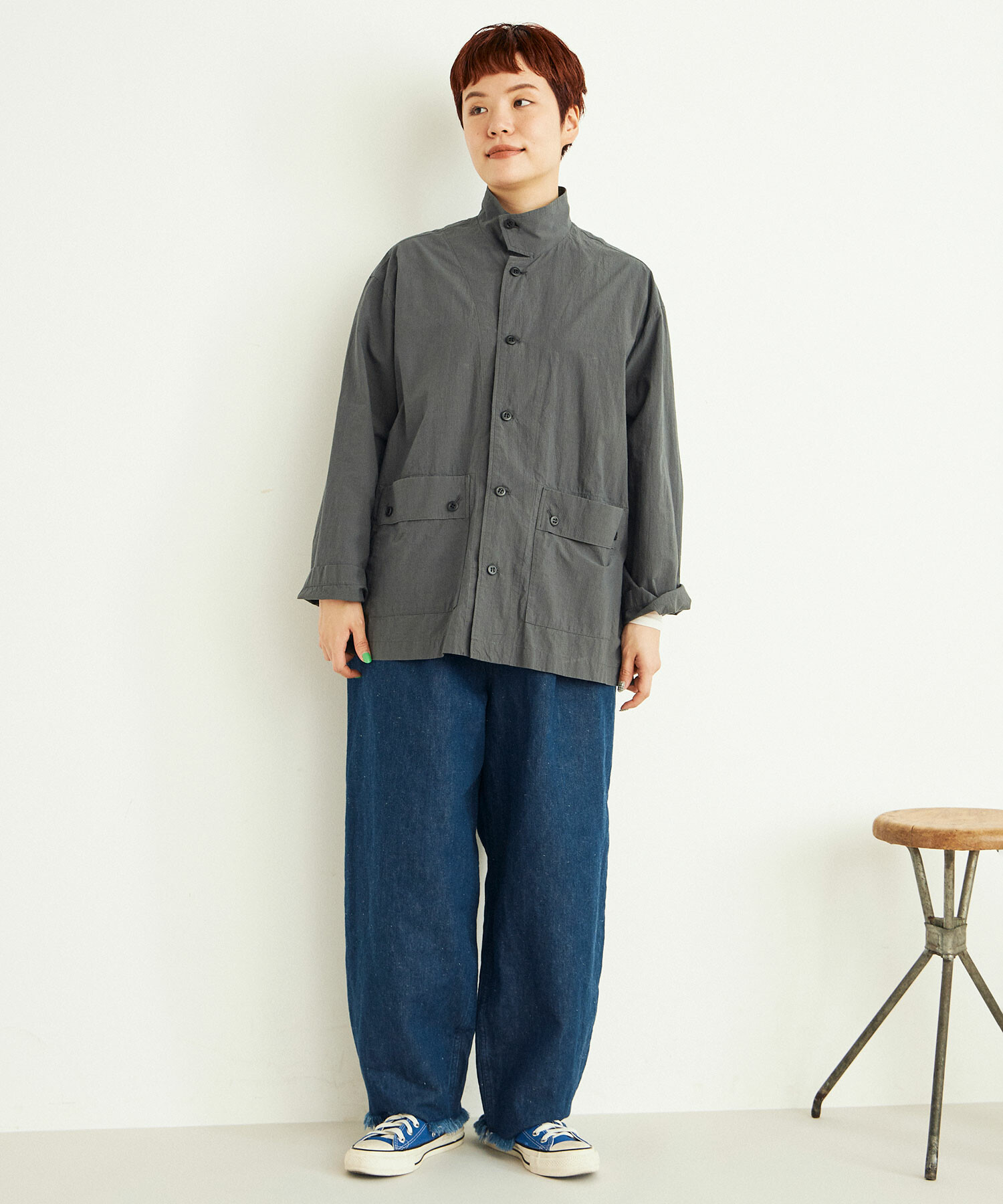 大胆なパッチポケット、衿周りはスタンドカラーにして、