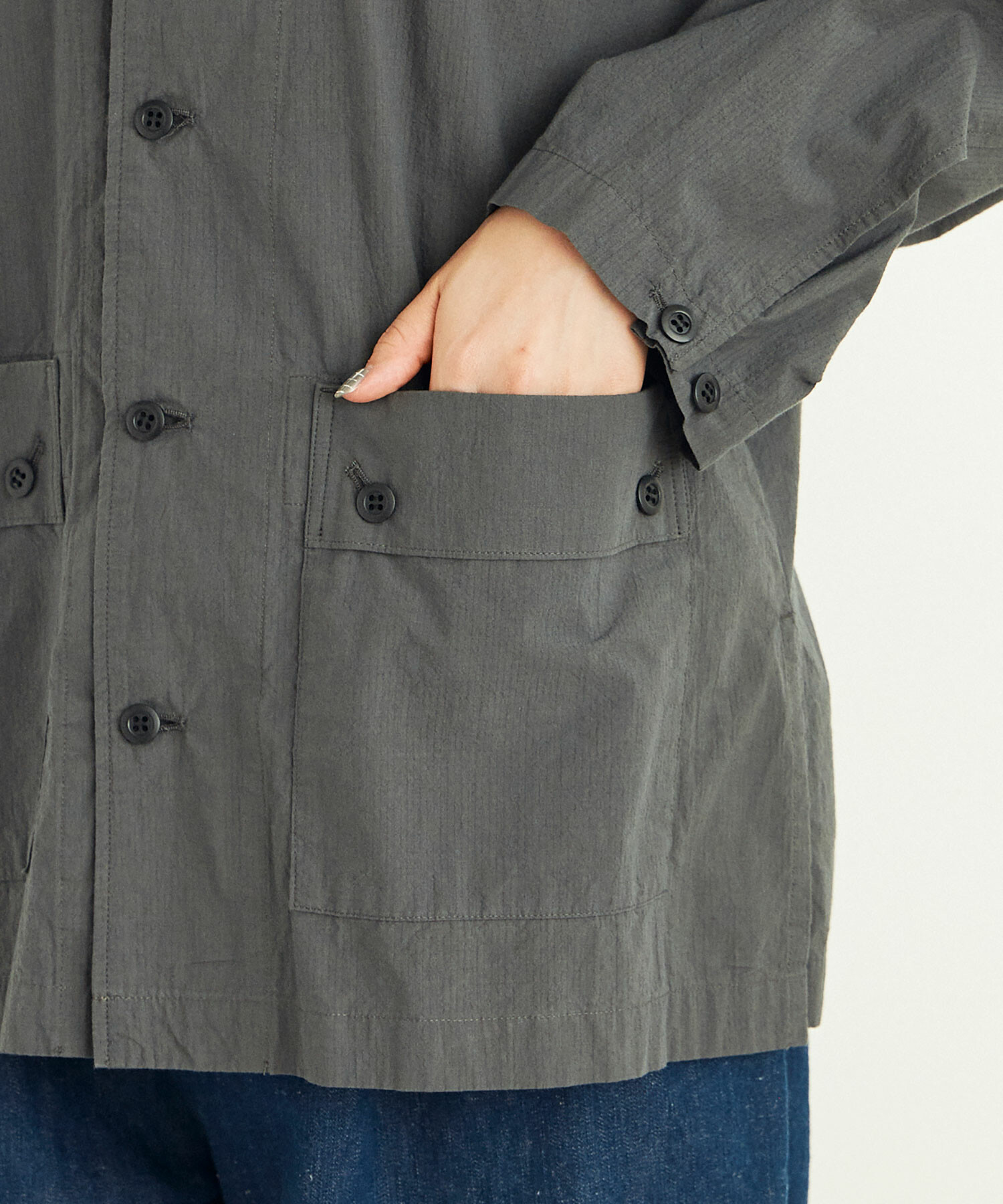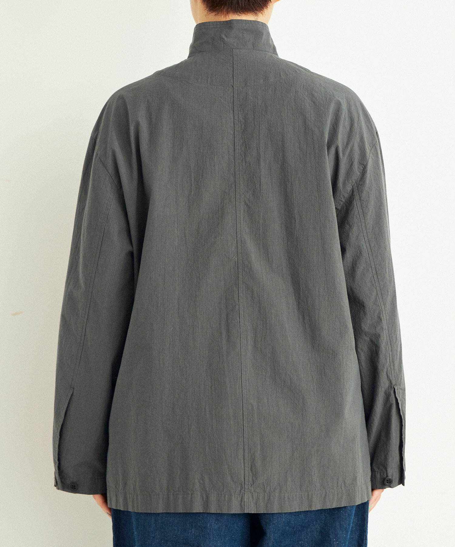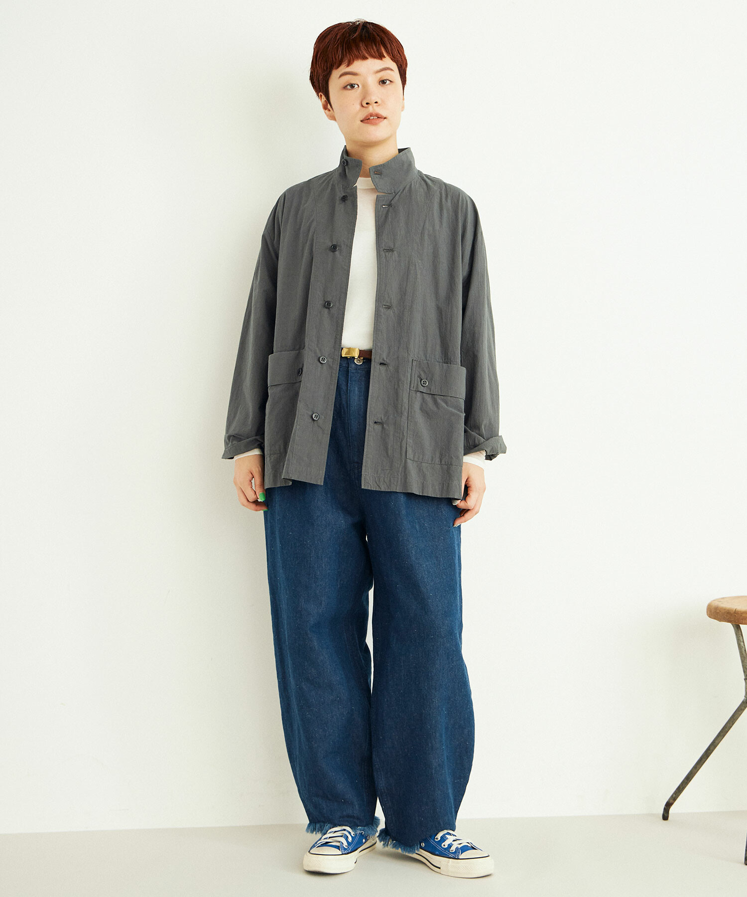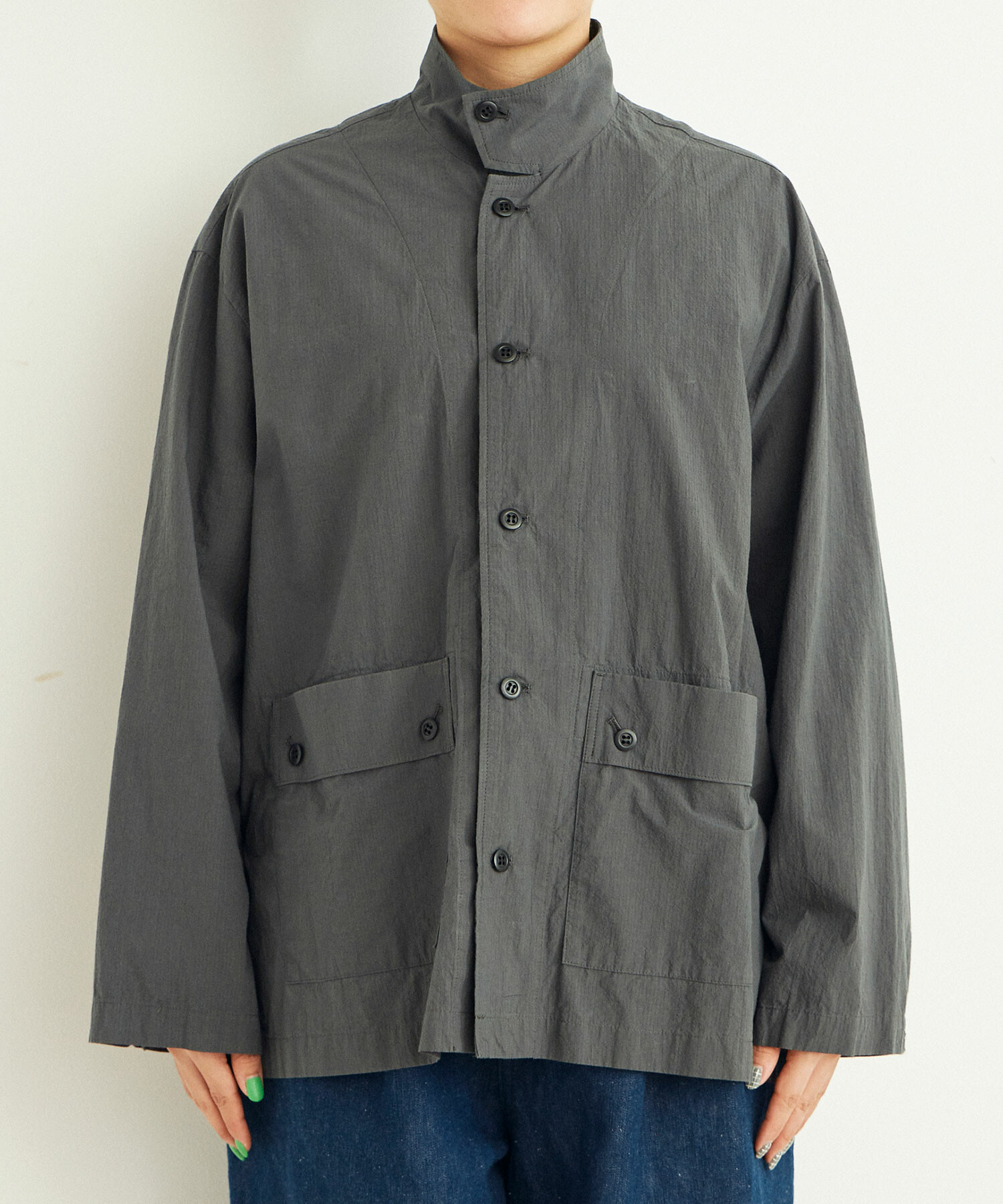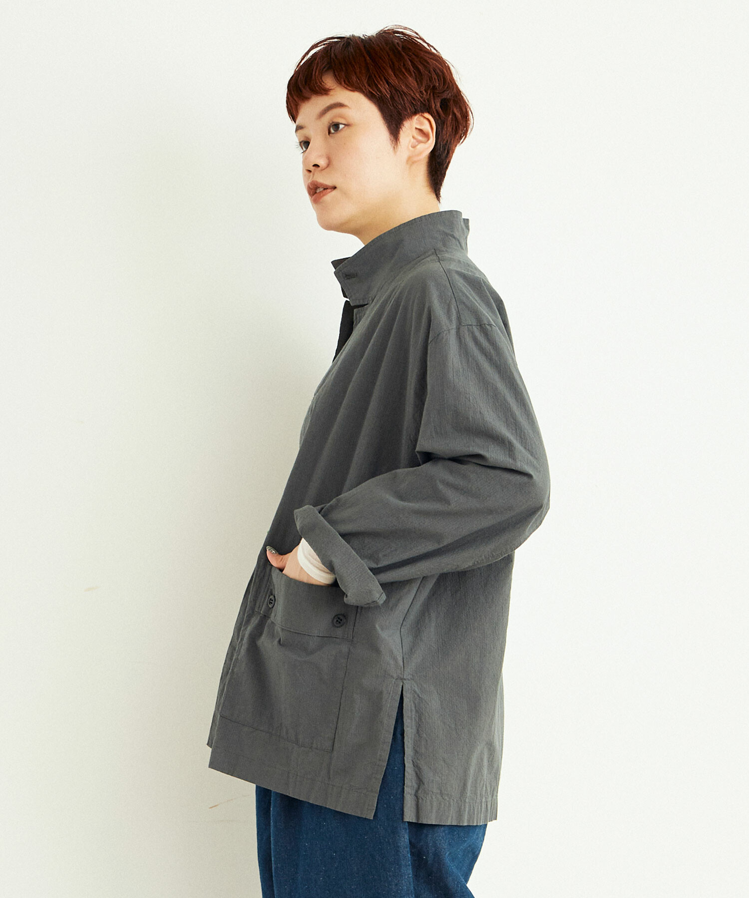 大胆なパッチポケット、衿周りはスタンドカラーにして、