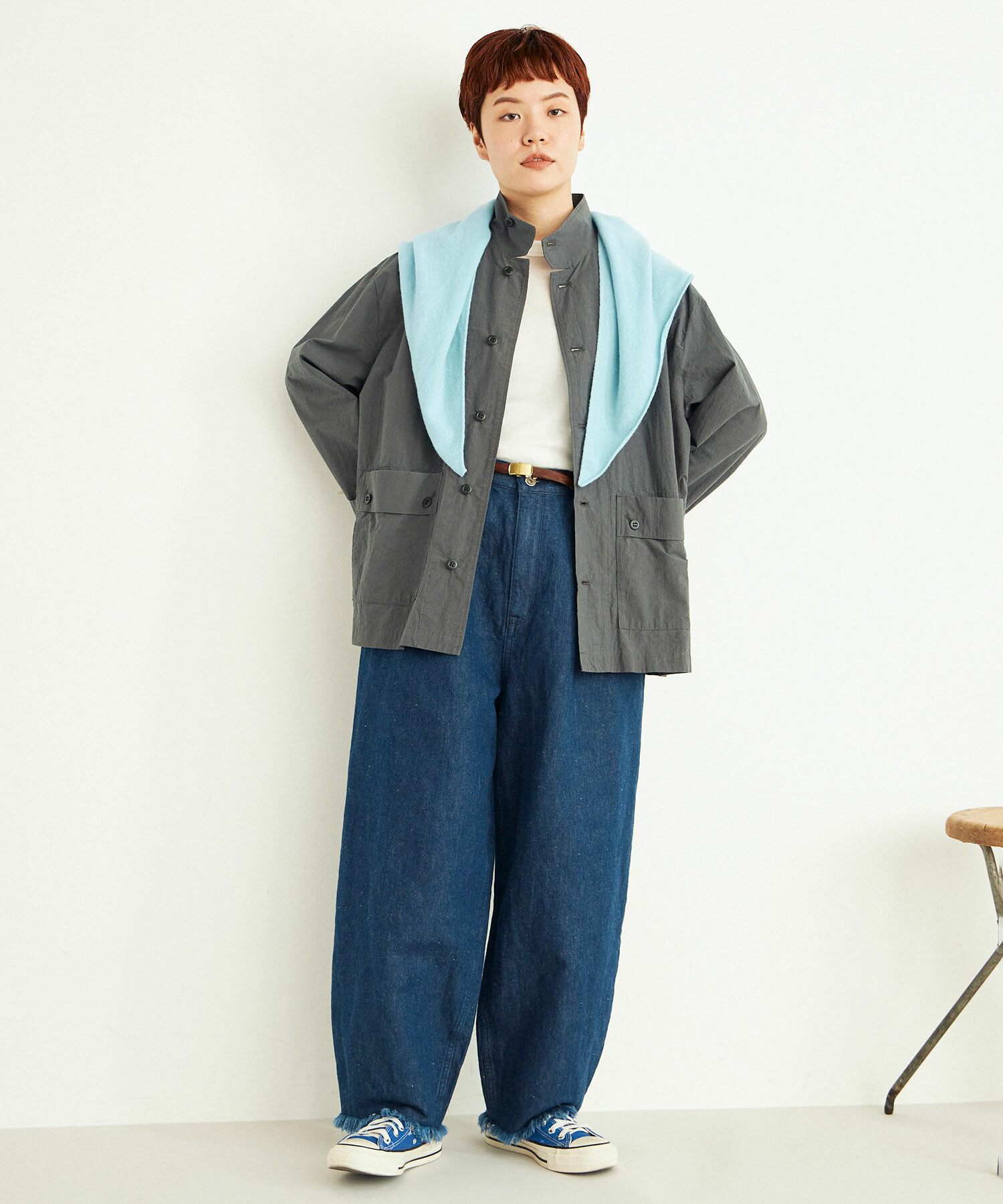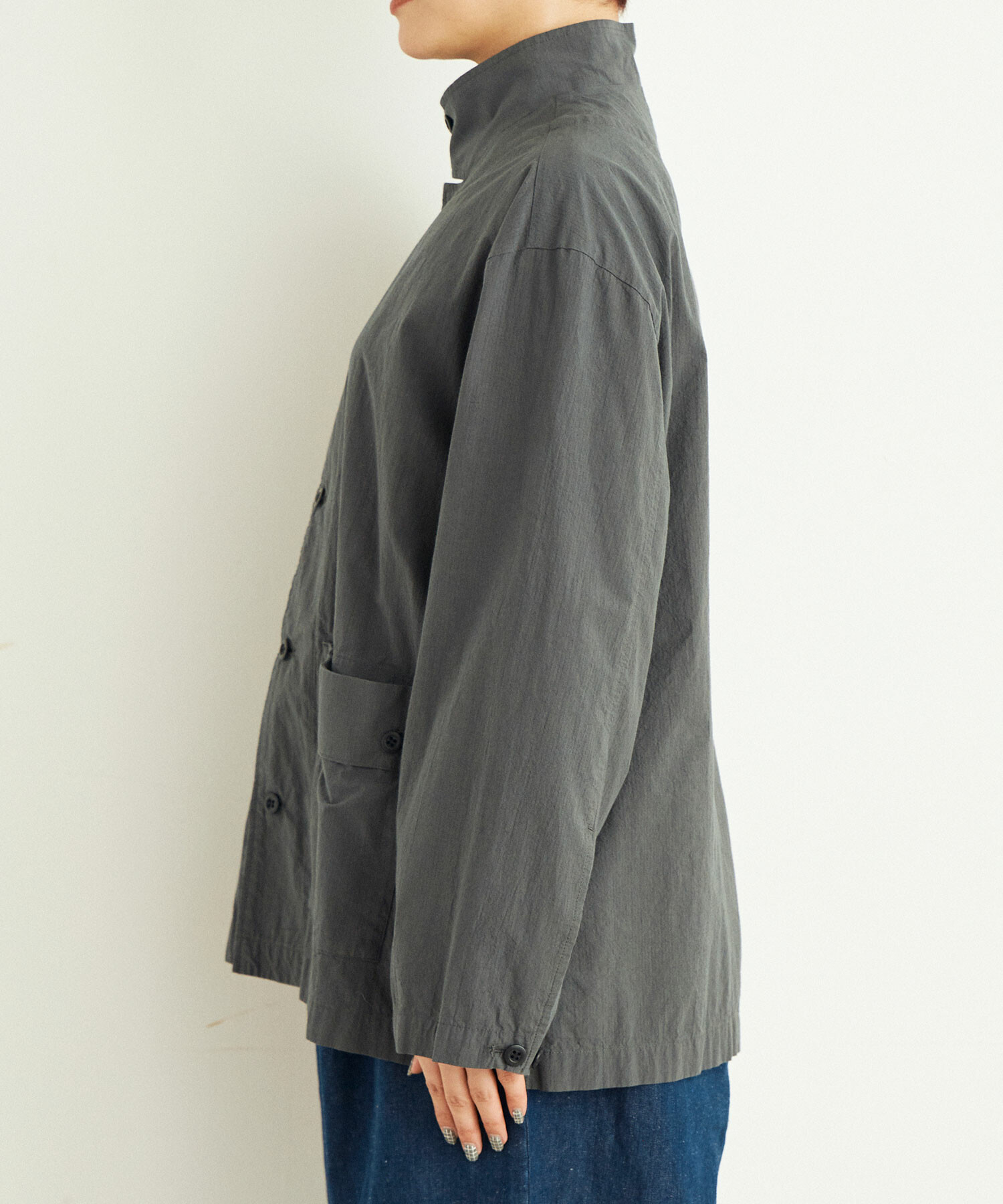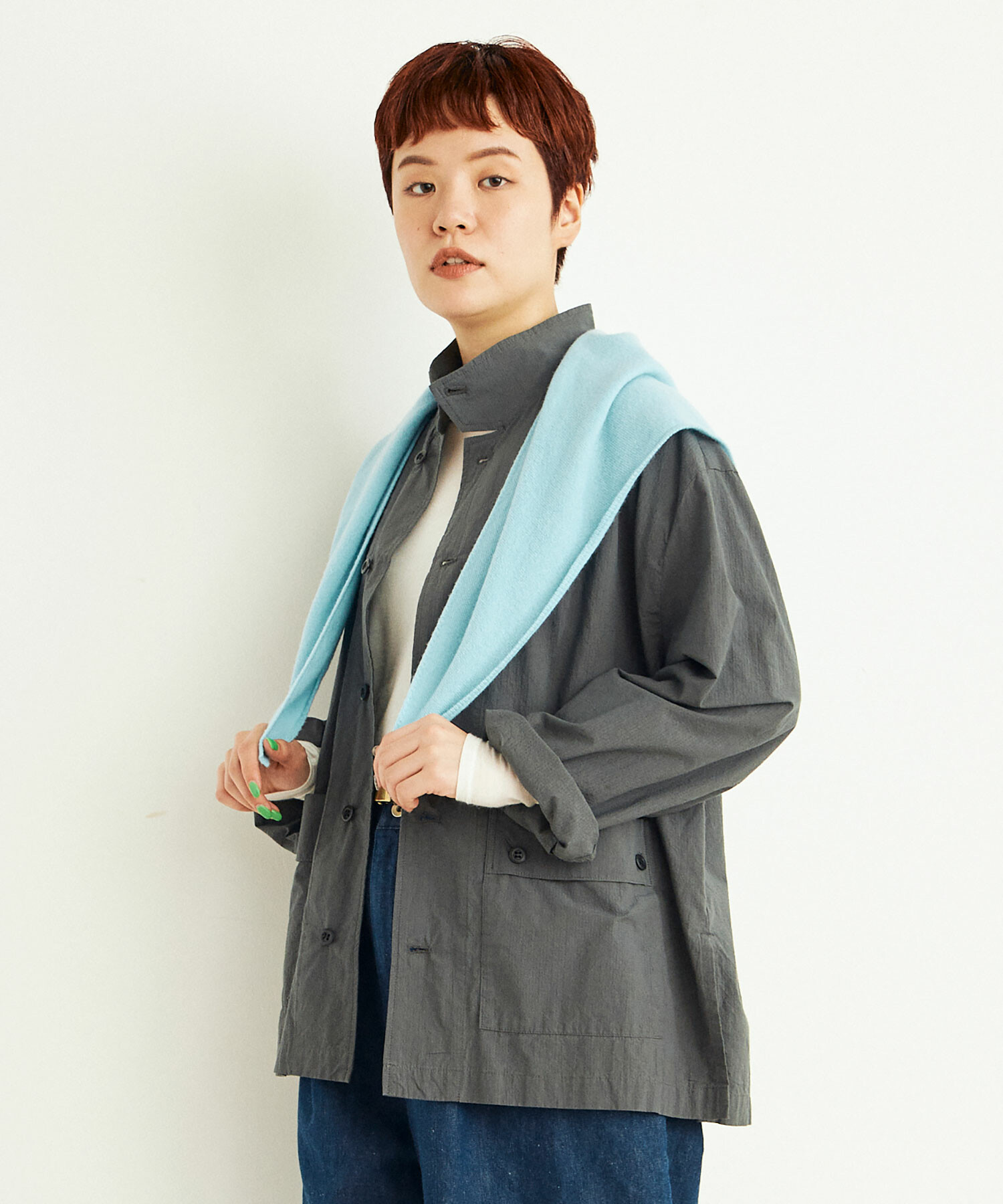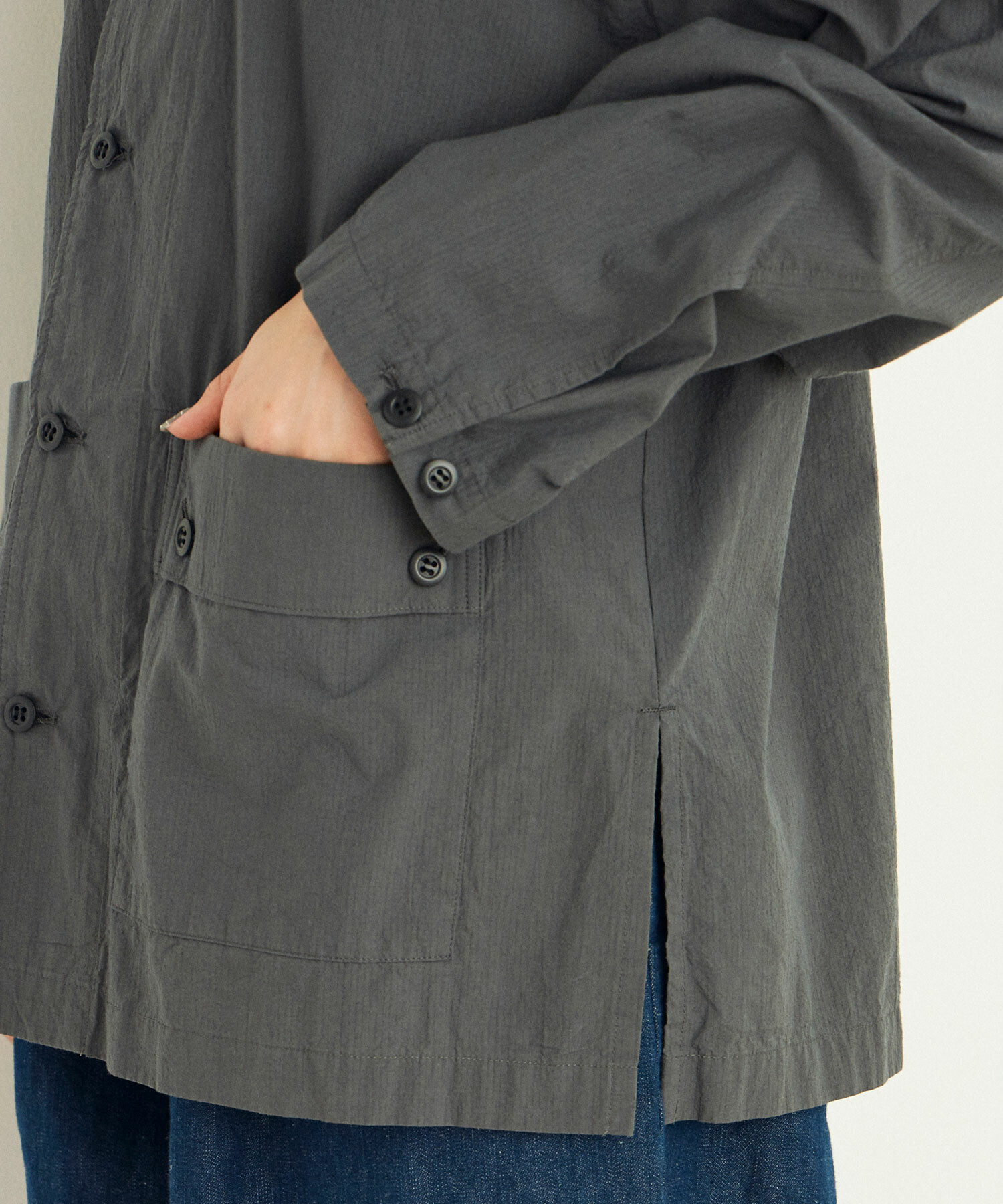 大胆なパッチポケット、衿周りはスタンドカラーにして、
