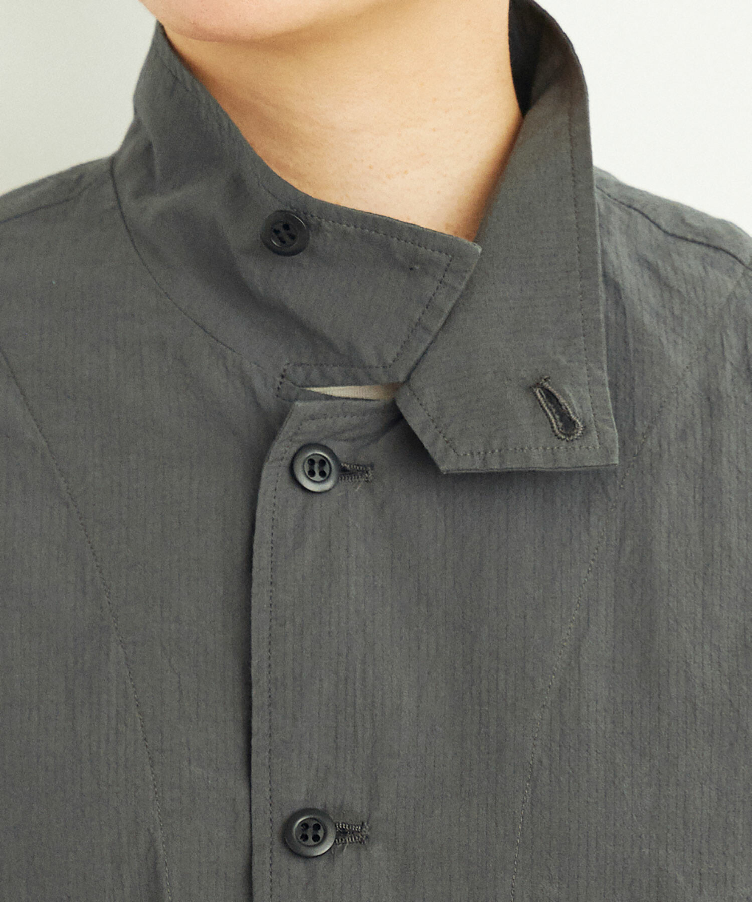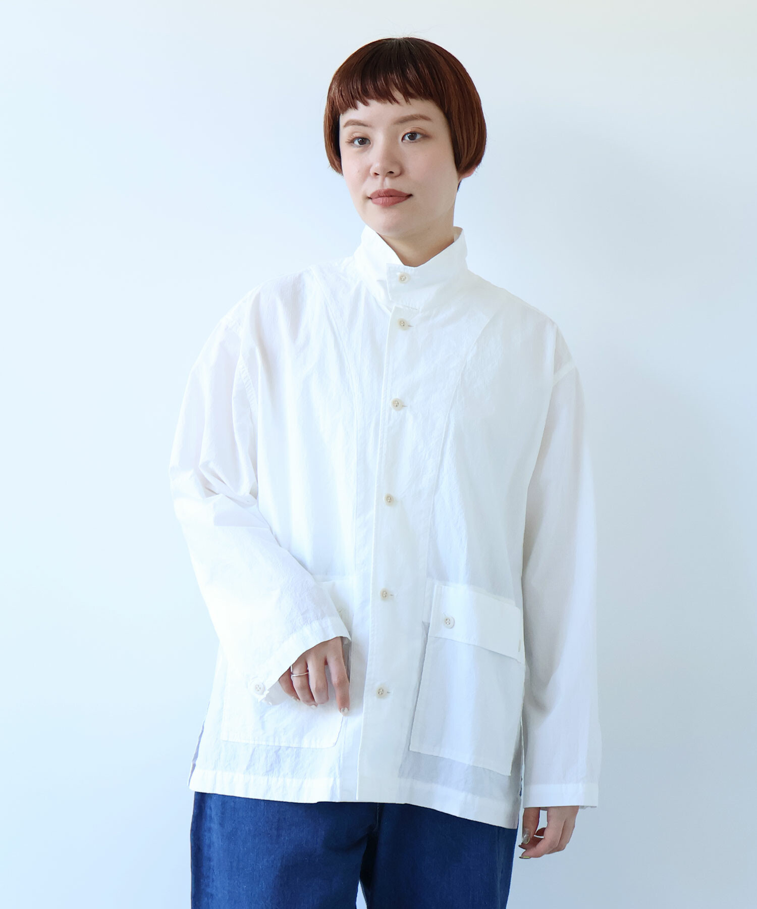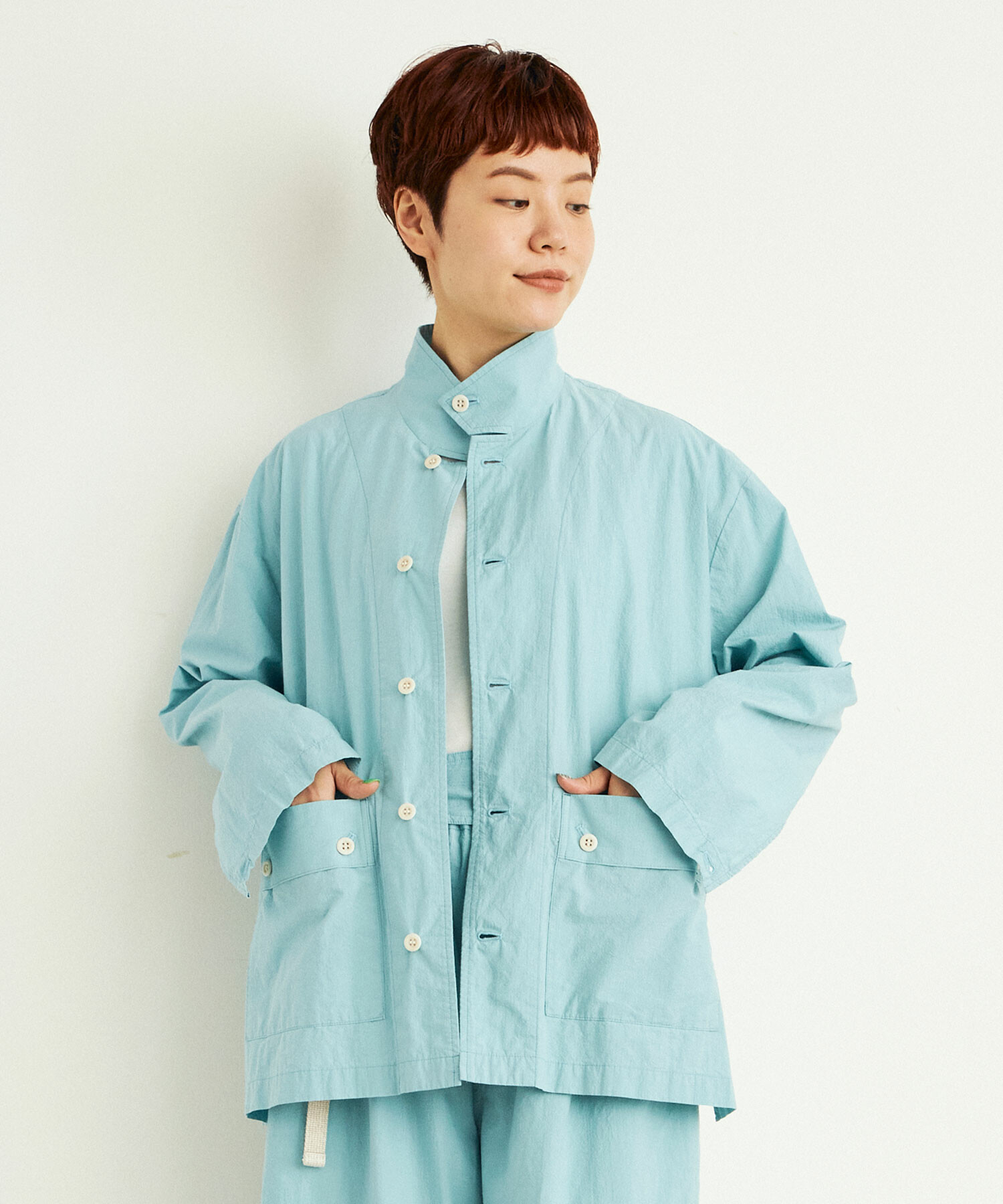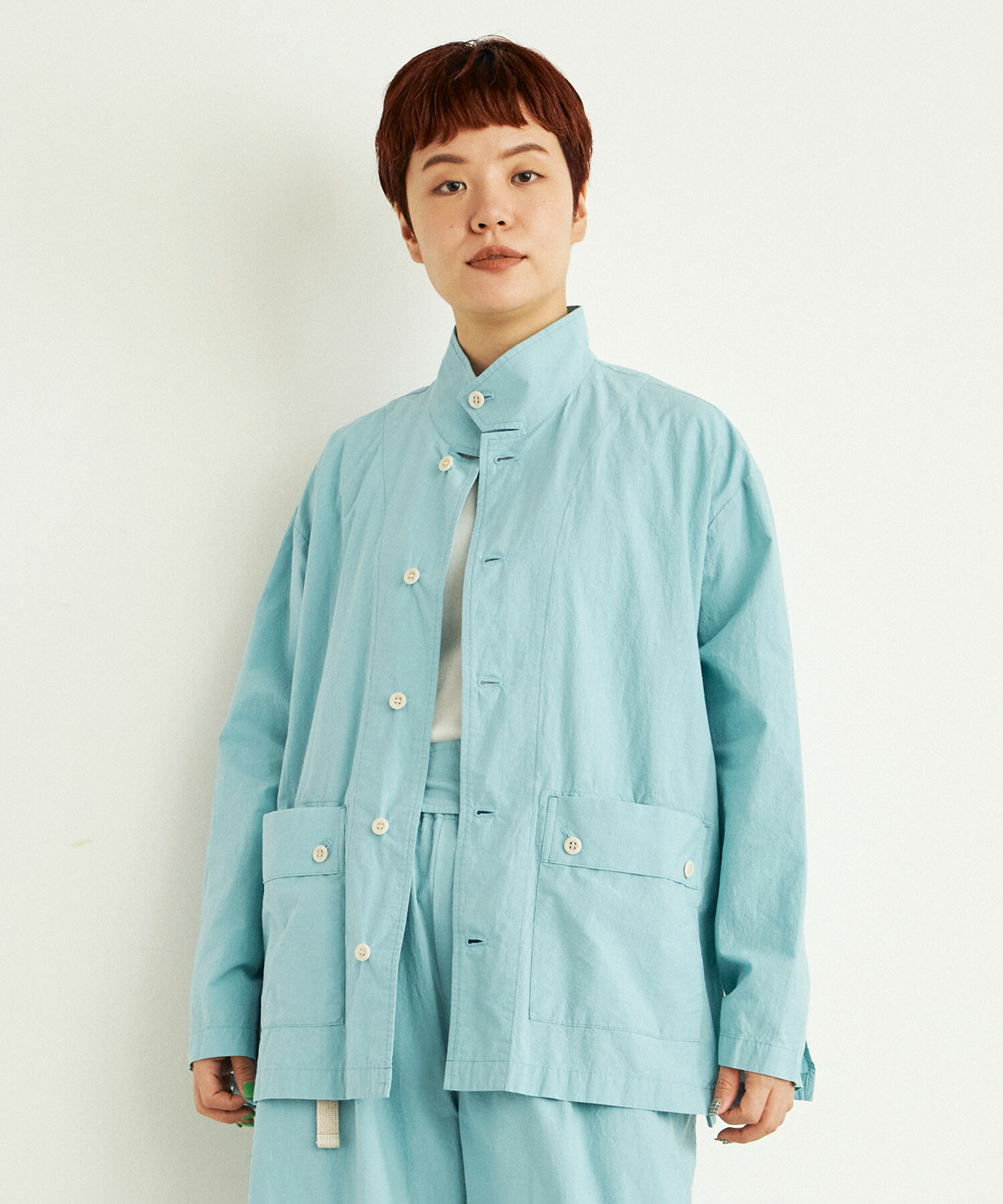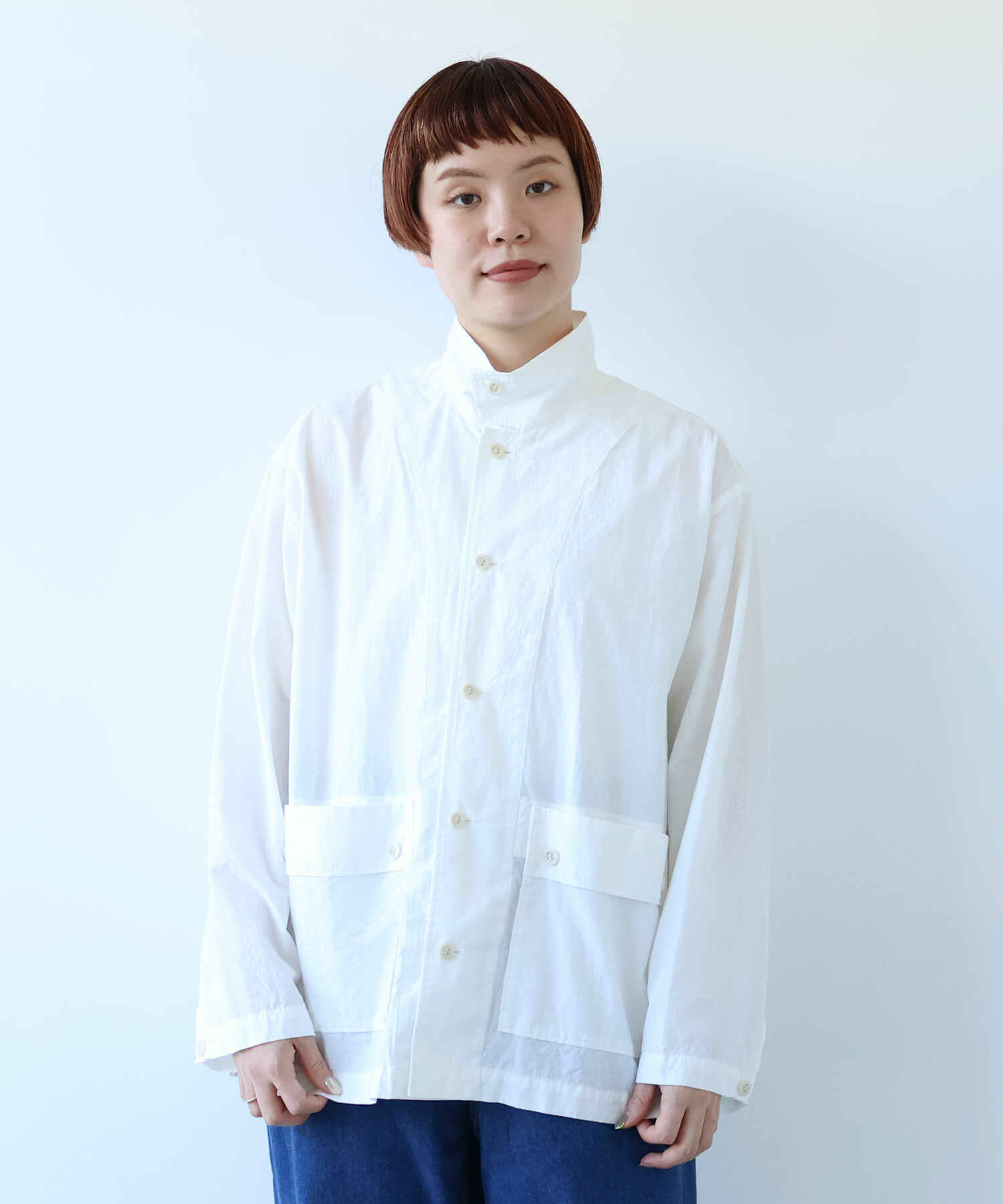 大胆なパッチポケット、衿周りはスタンドカラーにして、