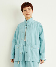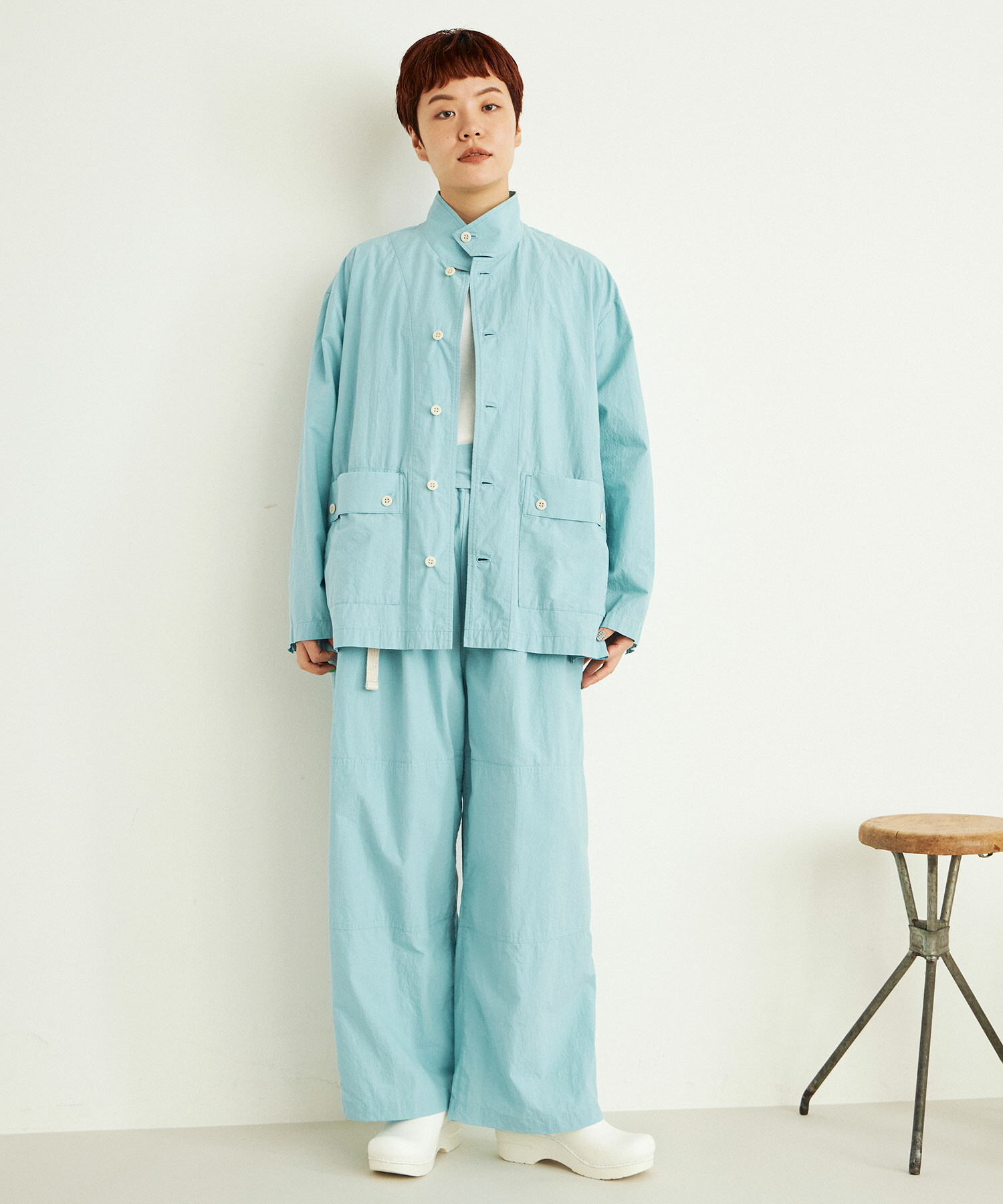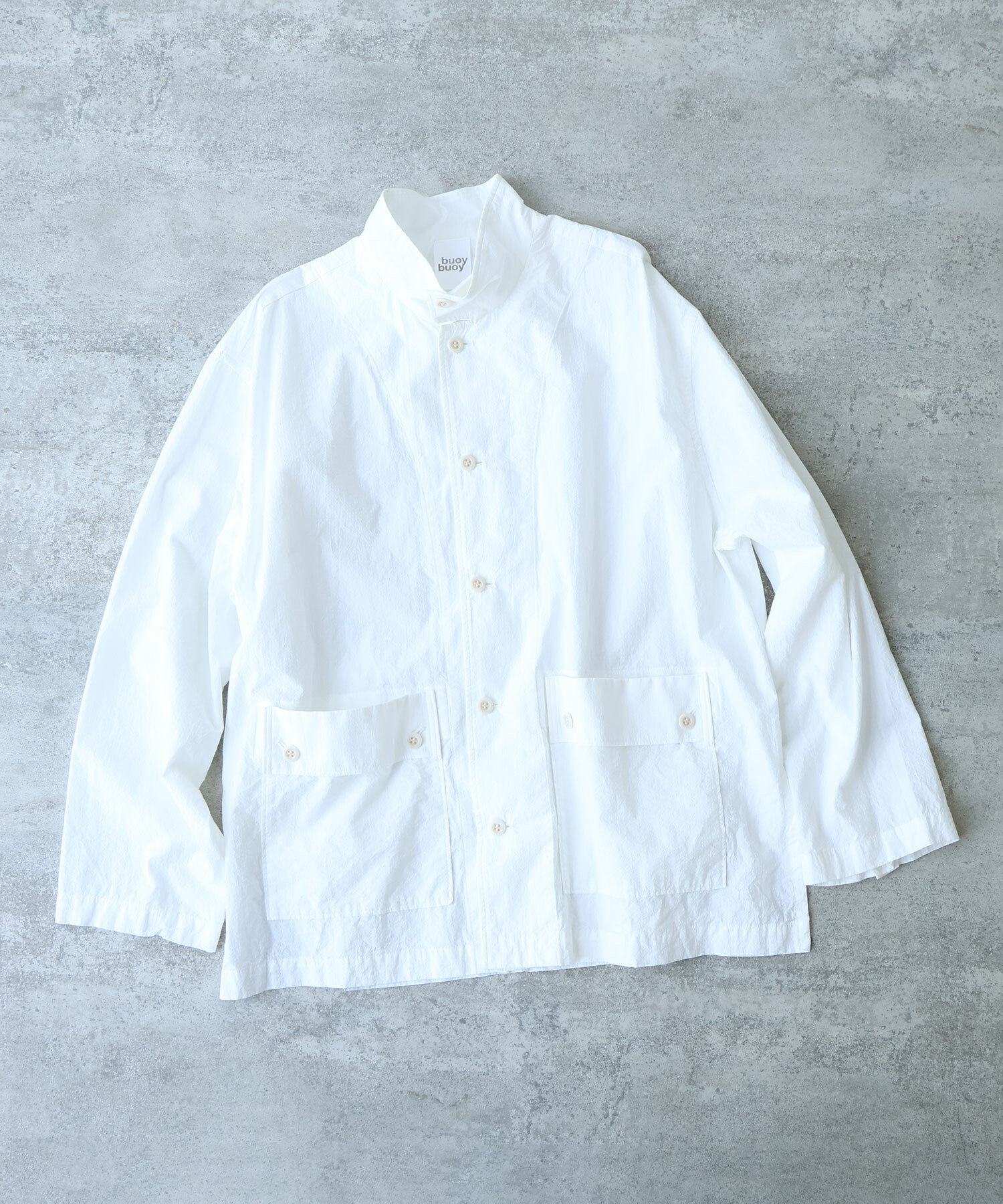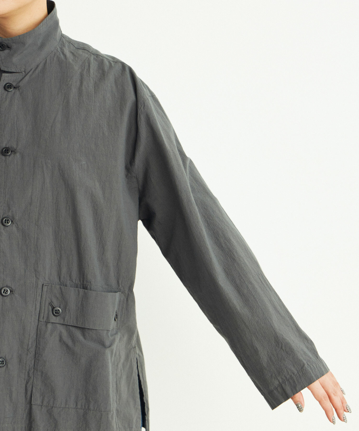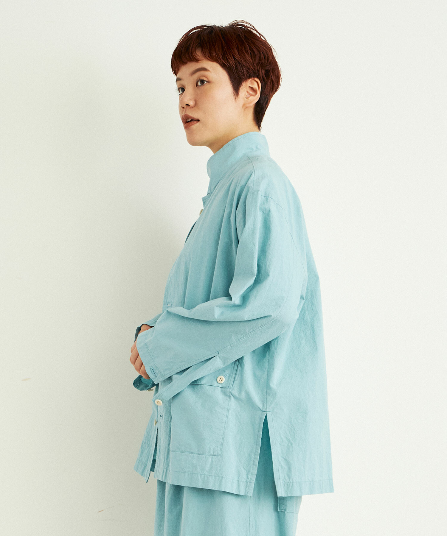 大胆なパッチポケット、衿周りはスタンドカラーにして、