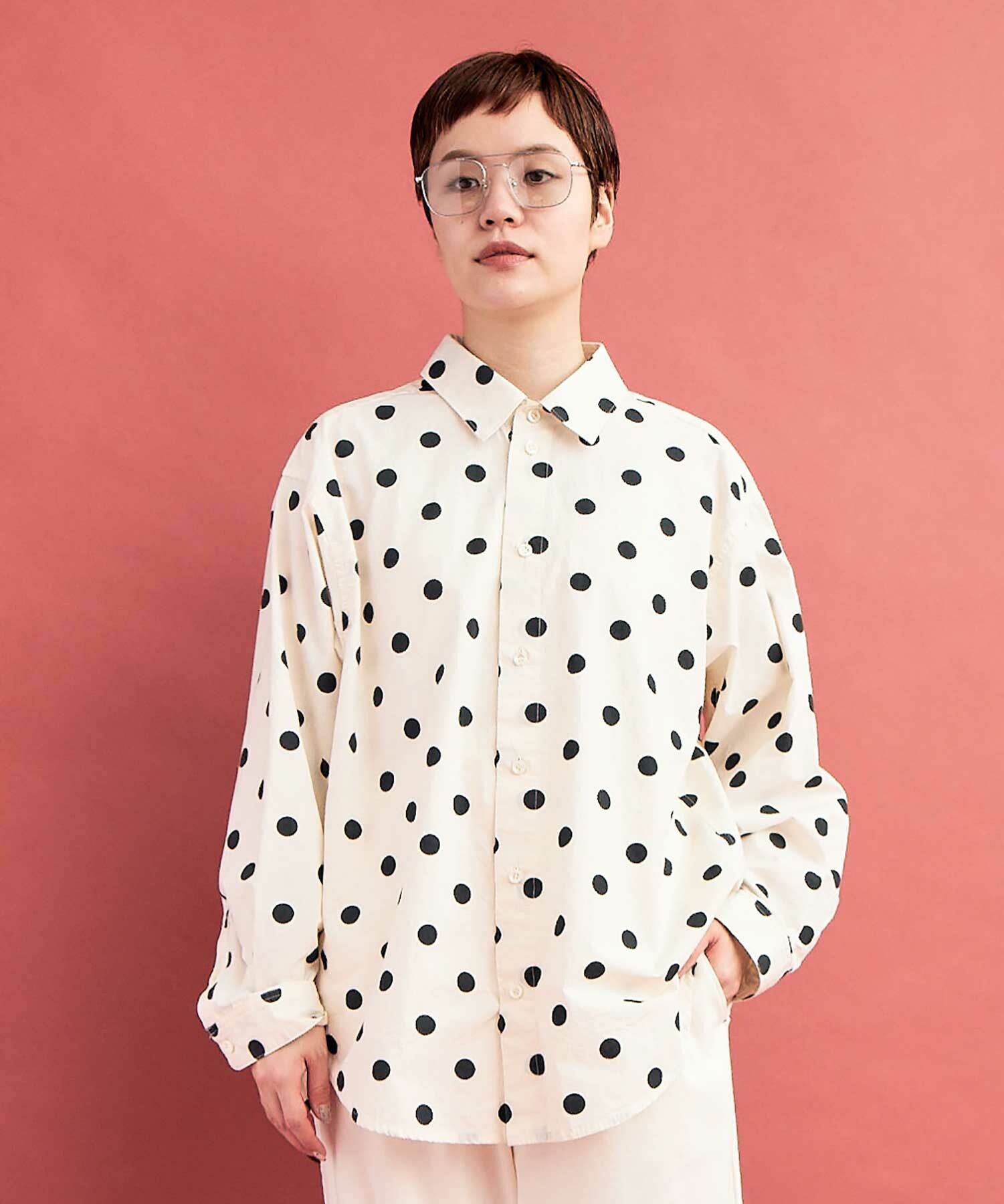 ドット柄のメンズシャツ。