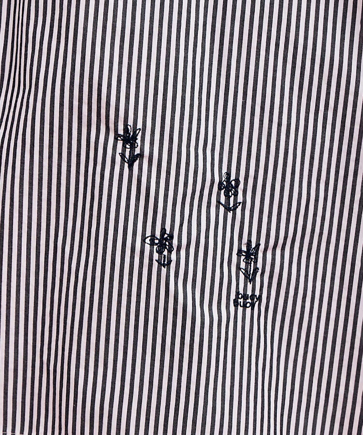 高密なストライプのブロード生地にエドダキ加工を施し、