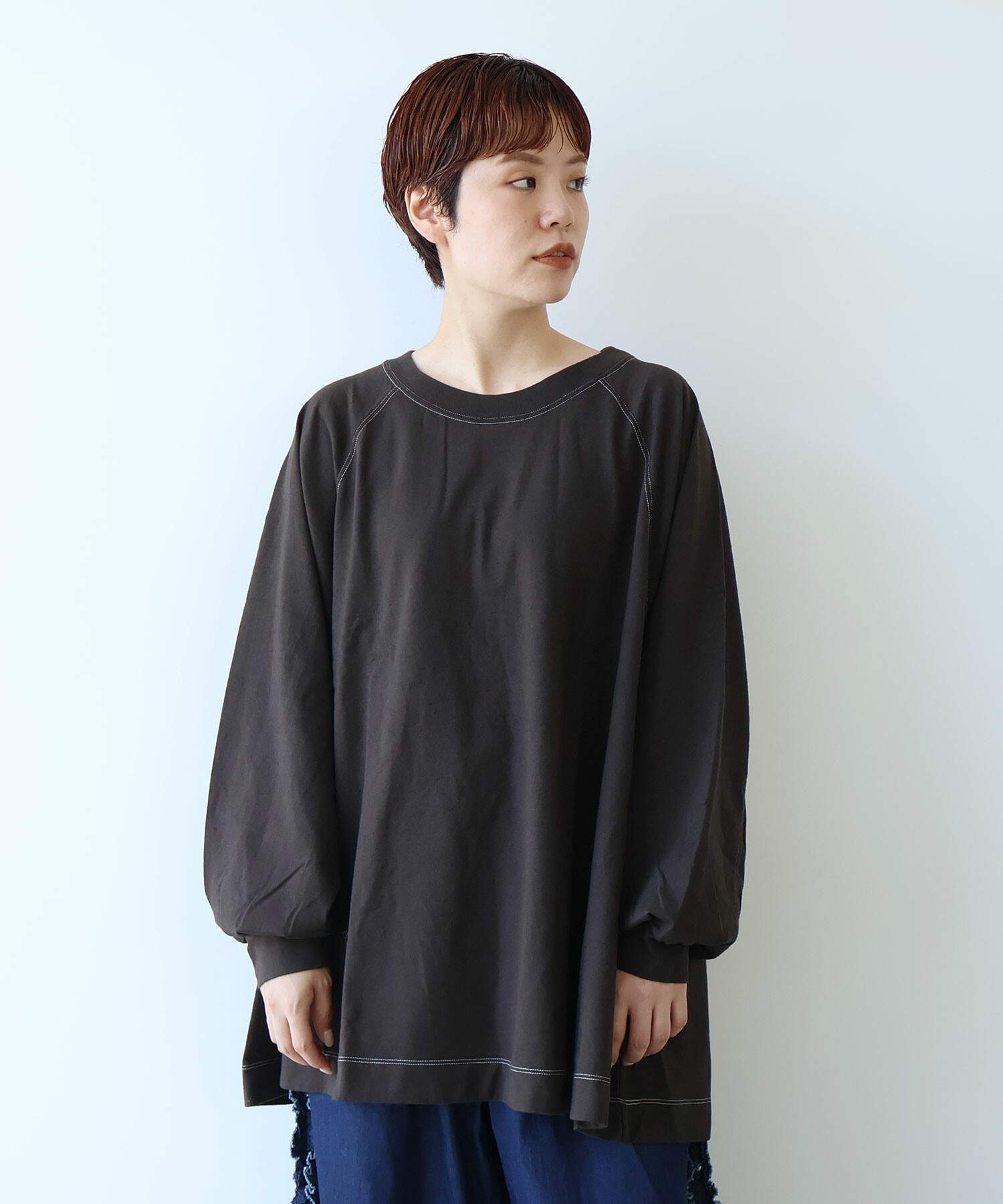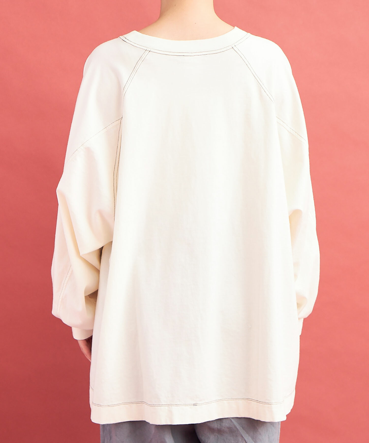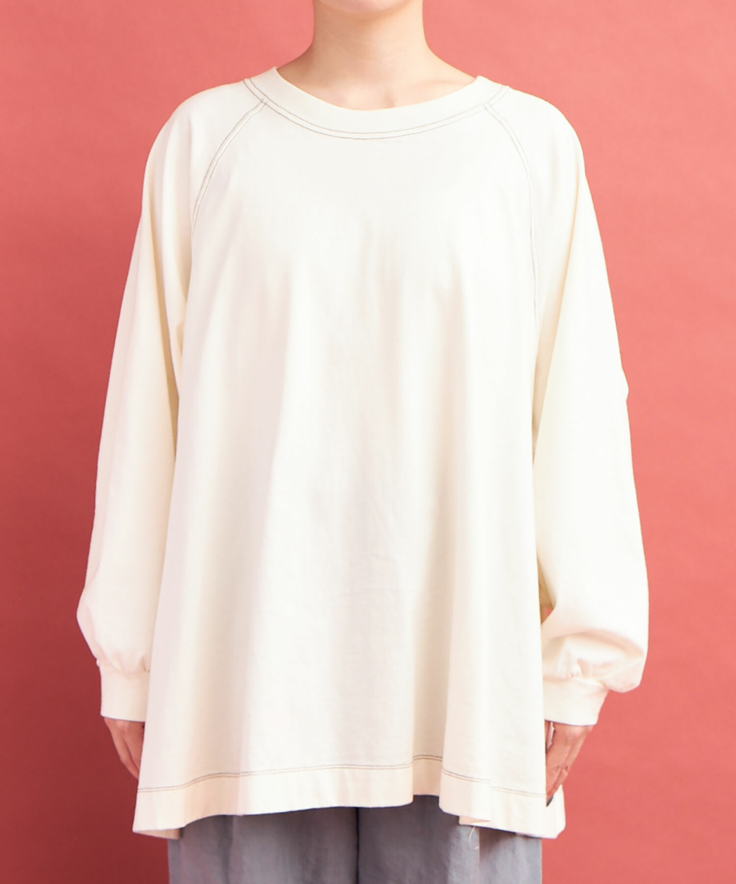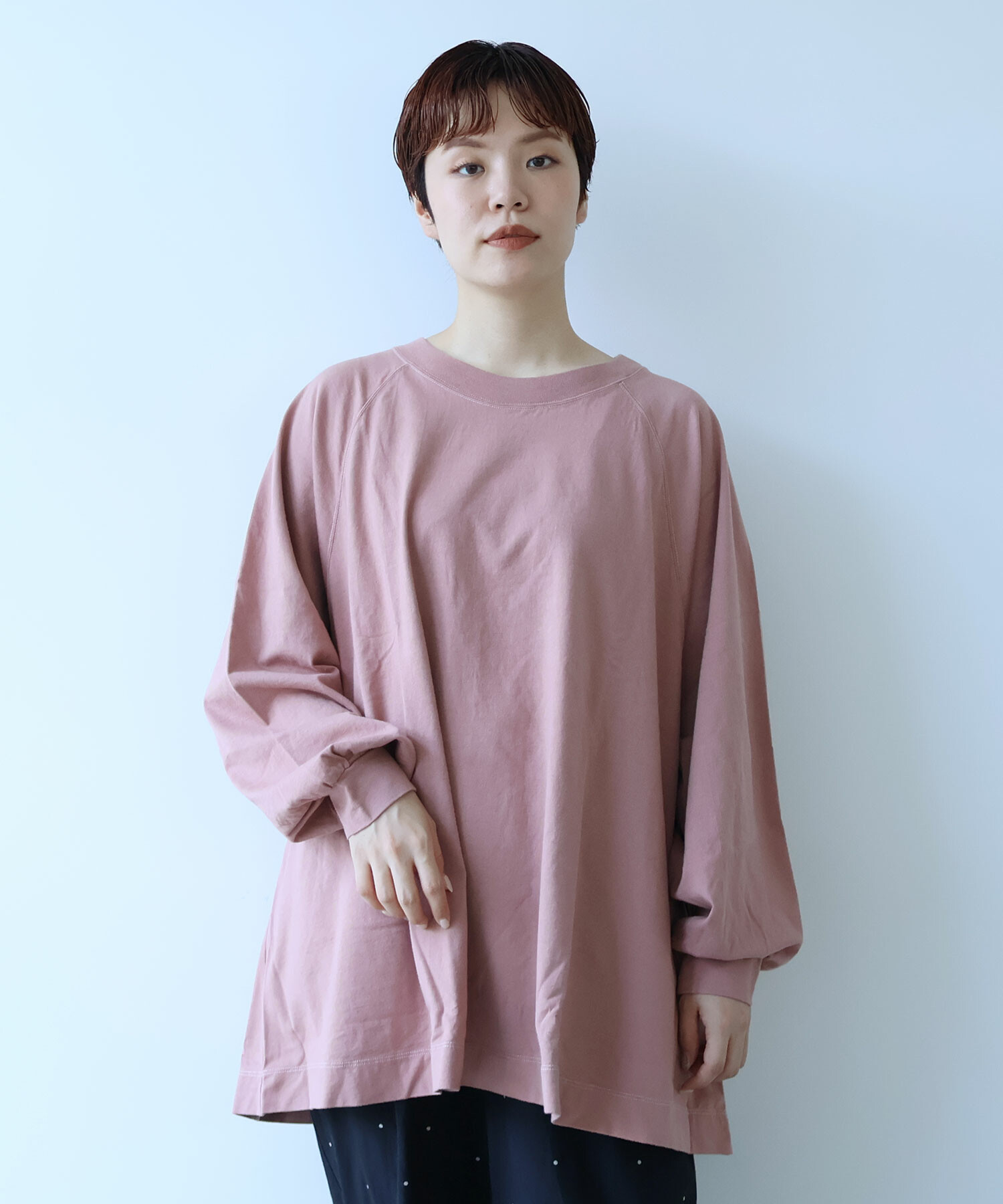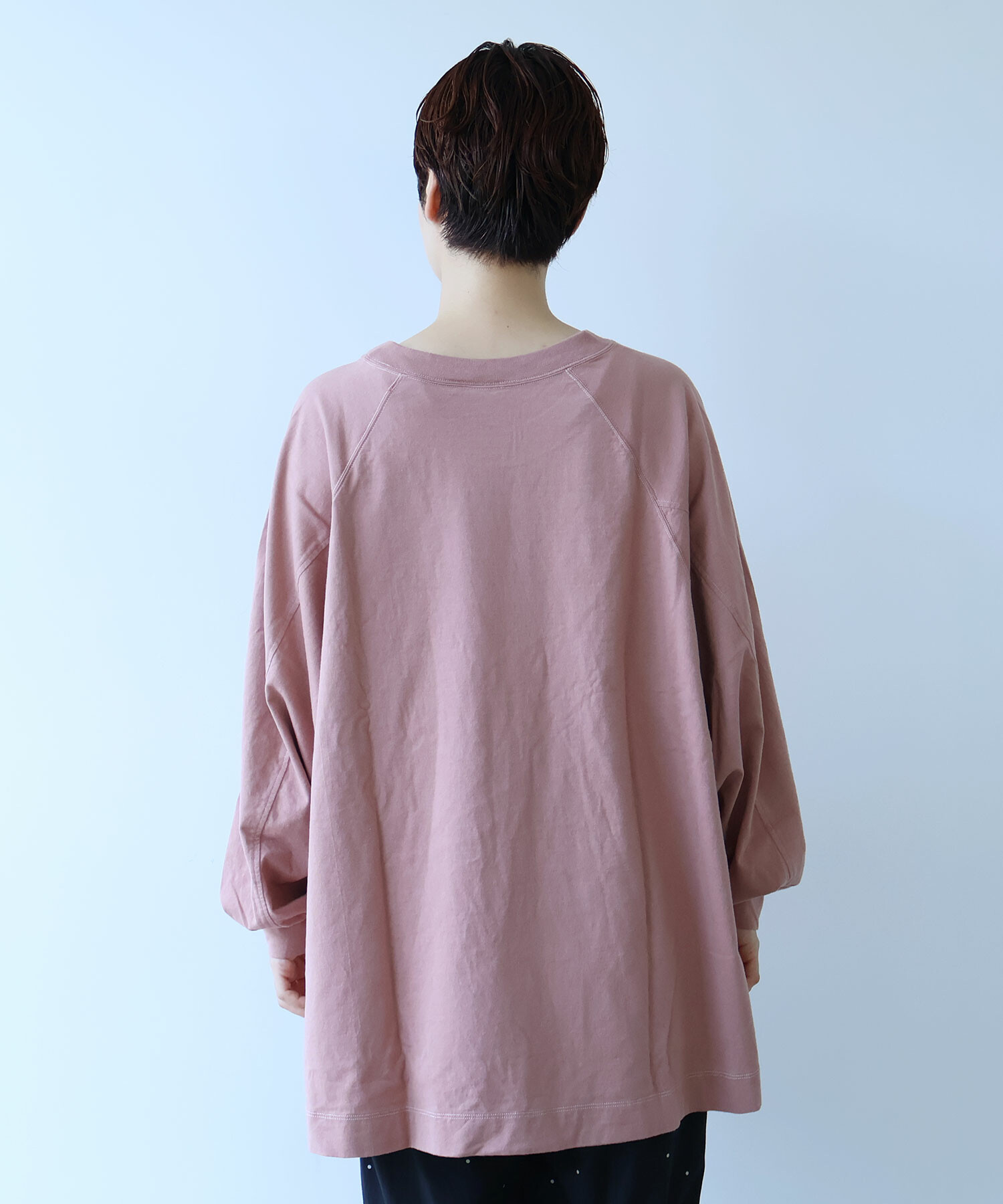 ラグランスリーブのワイドプルオーバー。