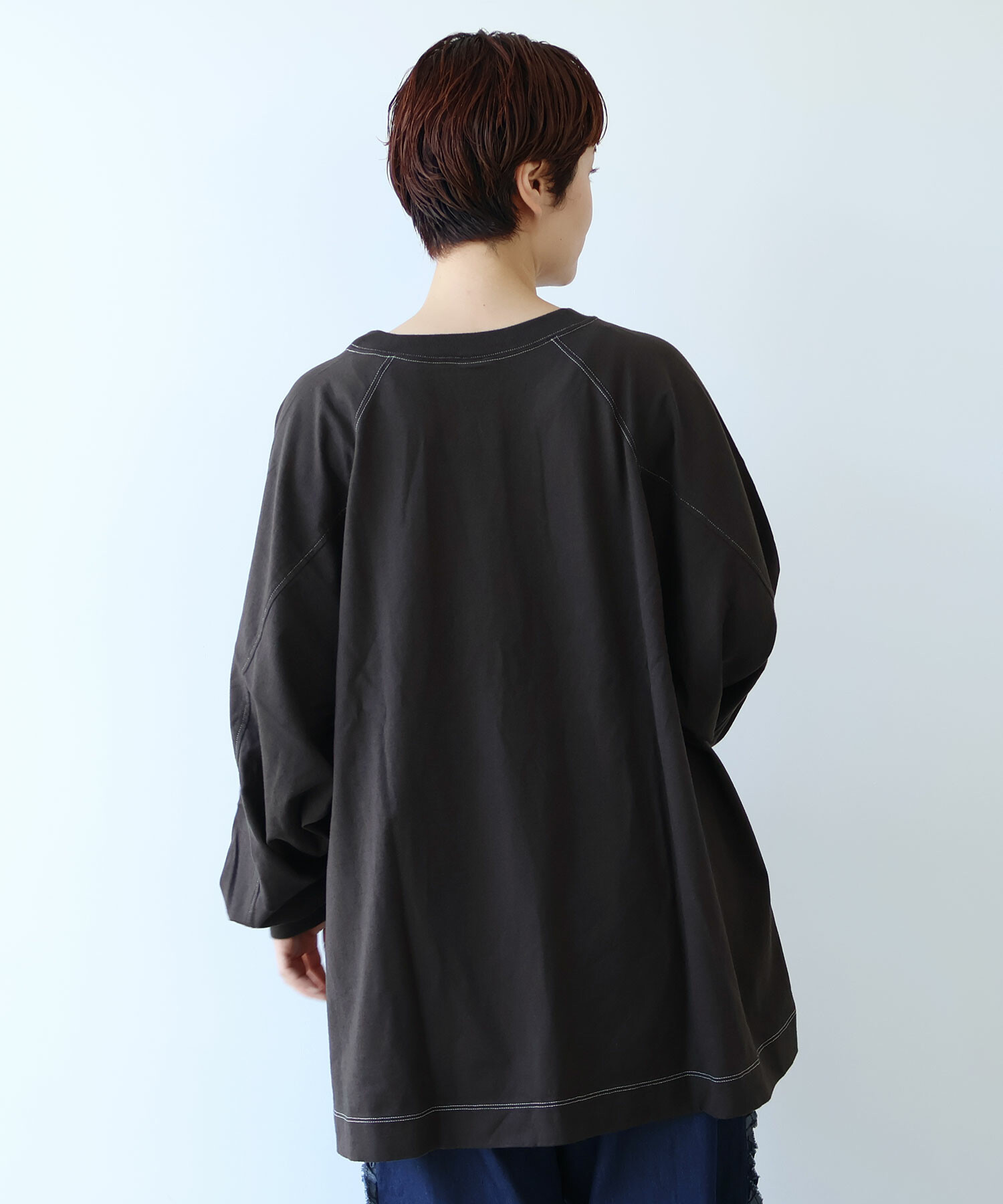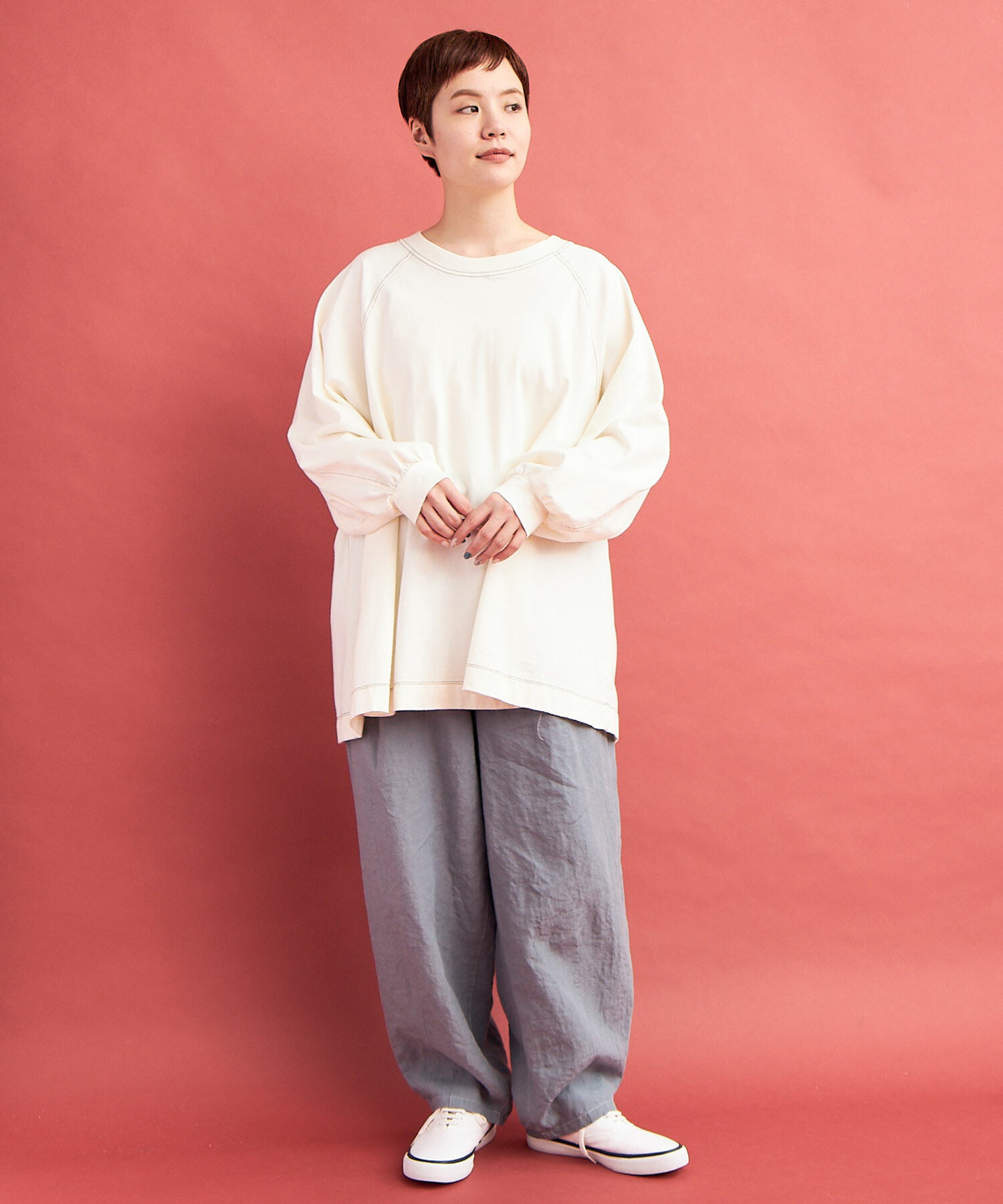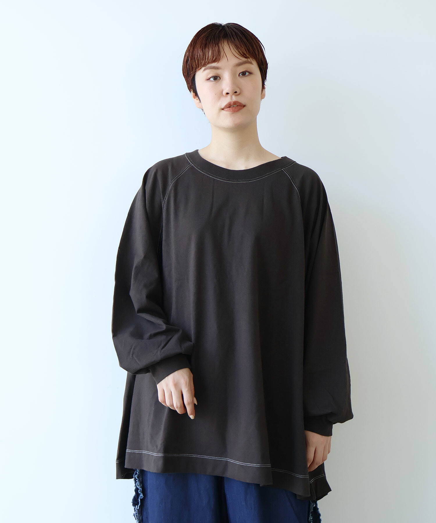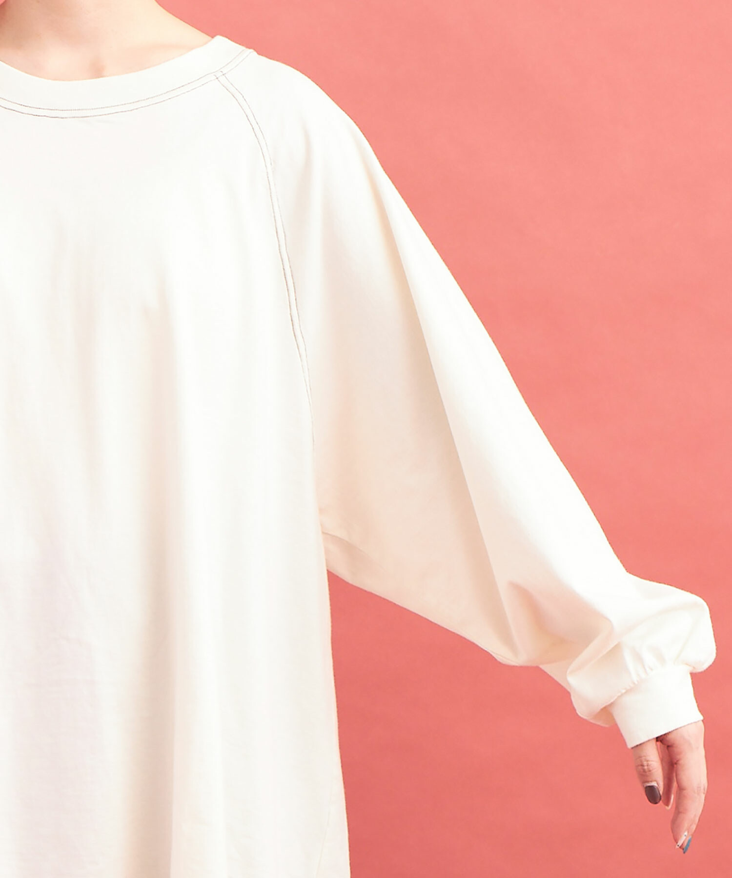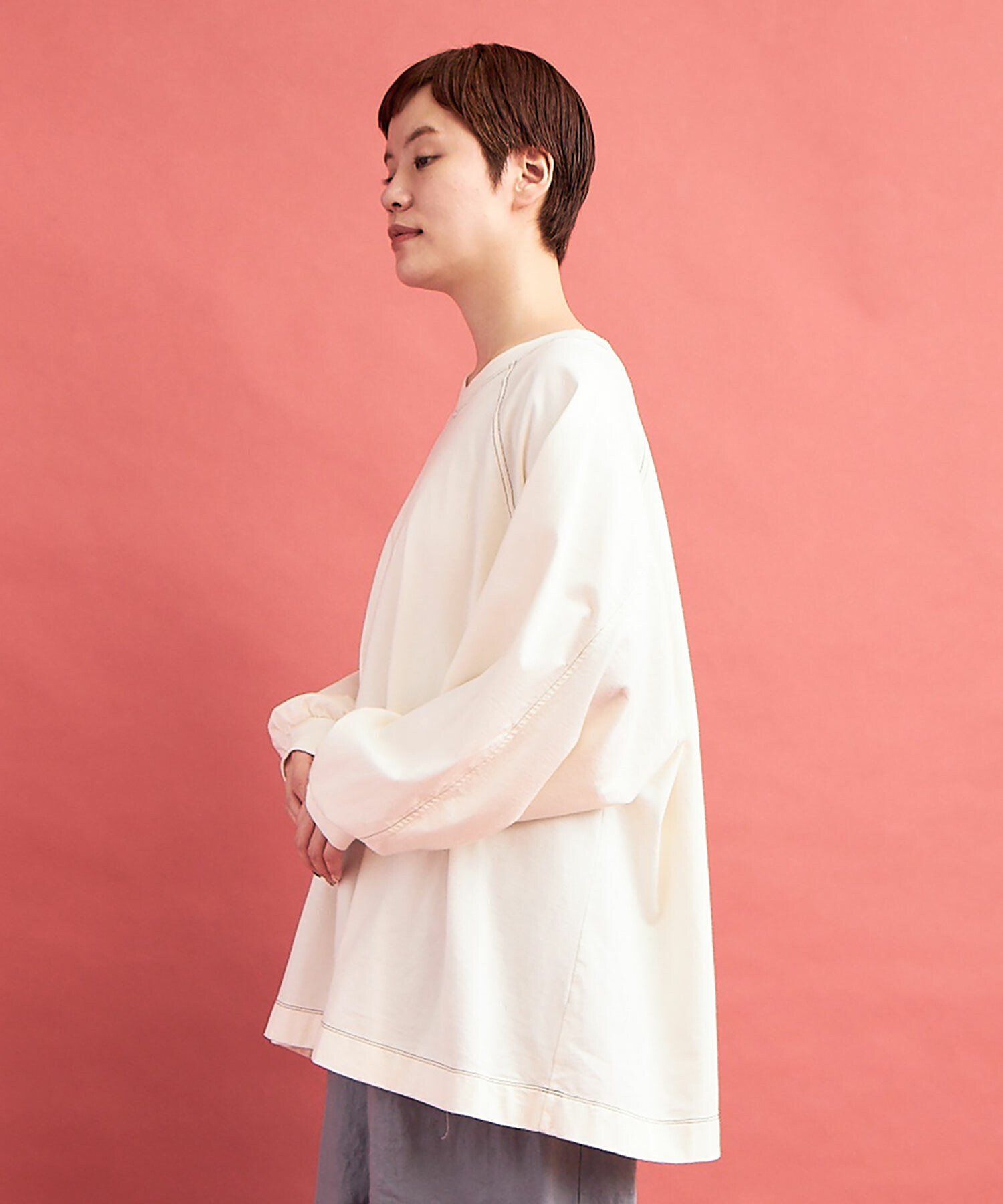 ラグランスリーブのワイドプルオーバー。