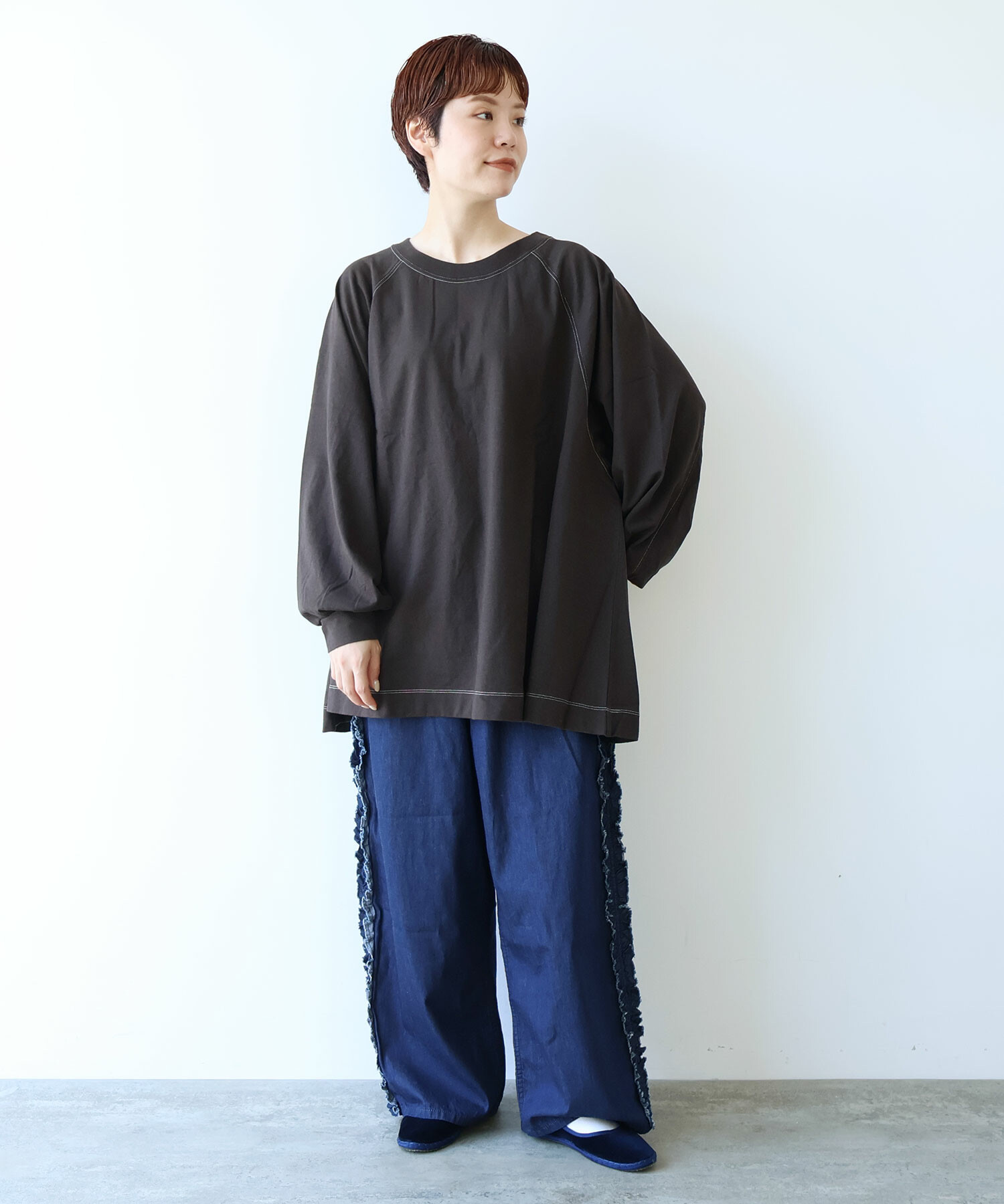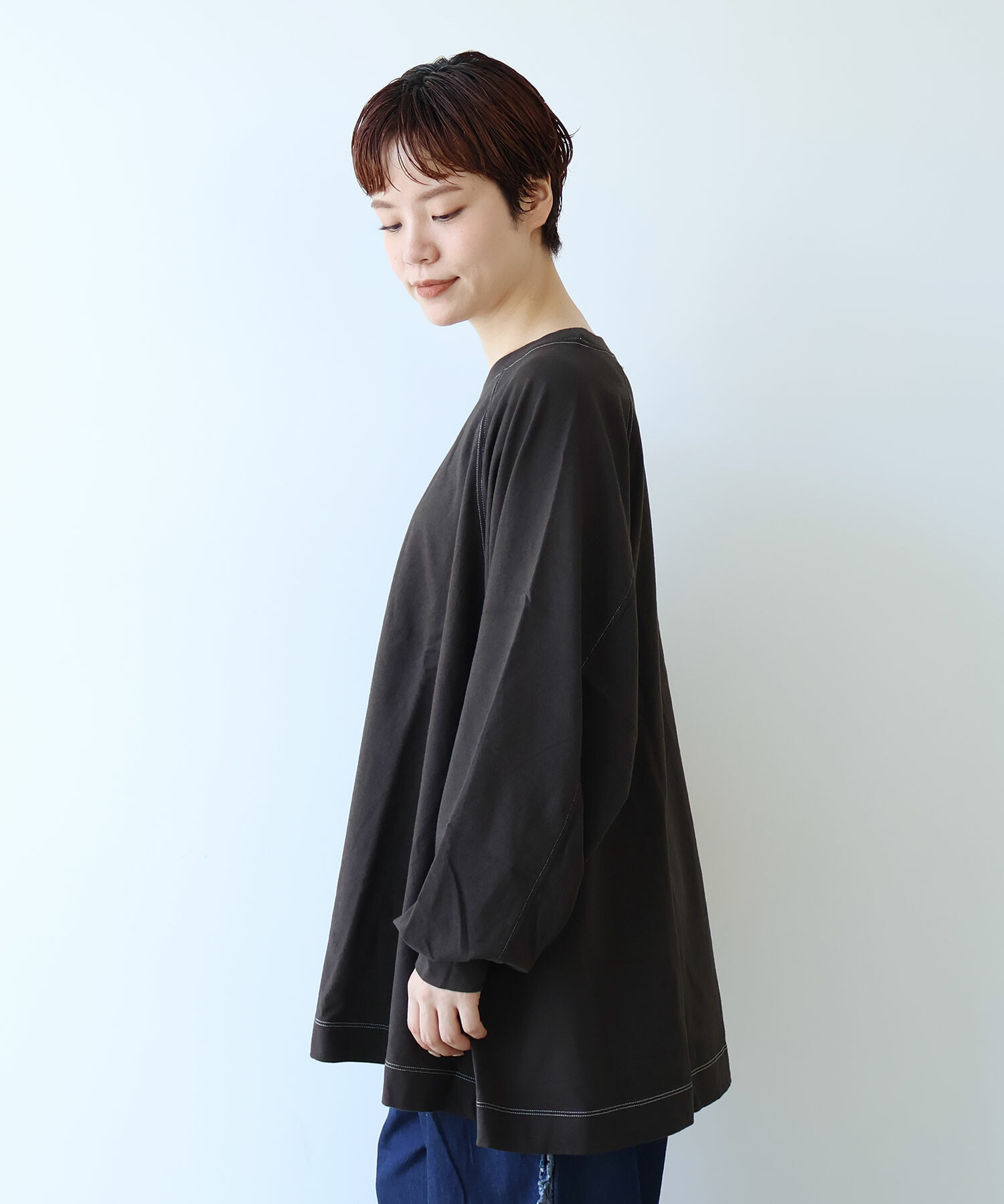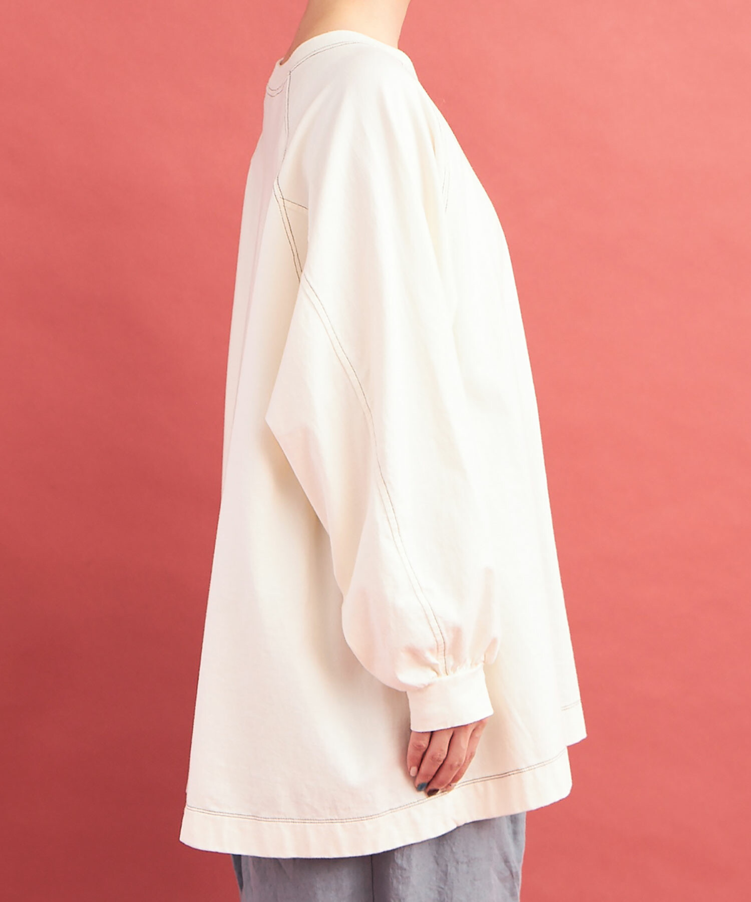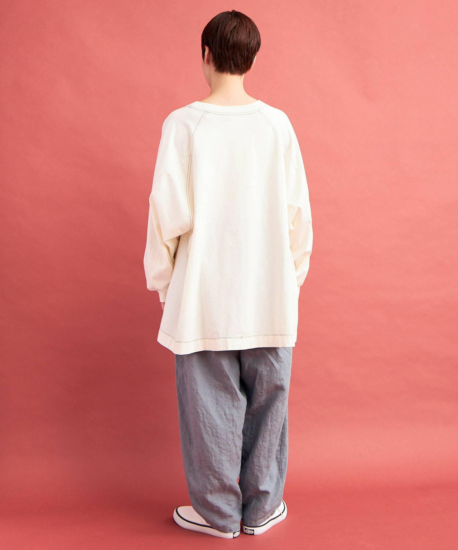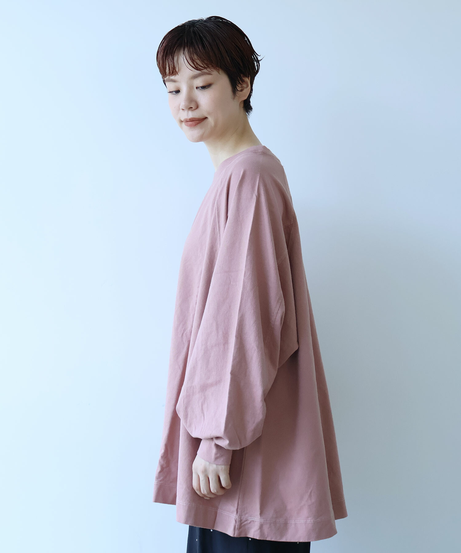 ラグランスリーブのワイドプルオーバー。