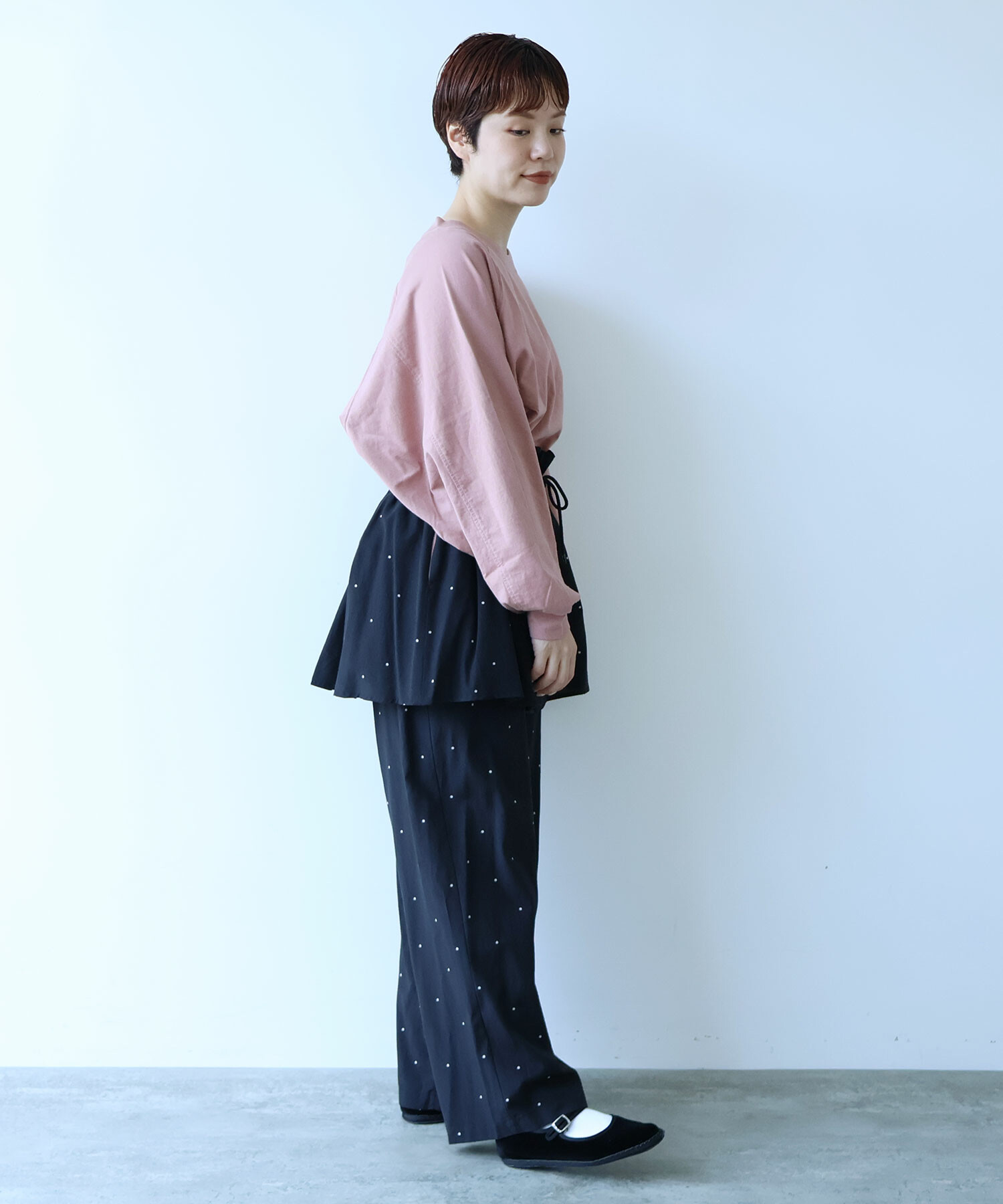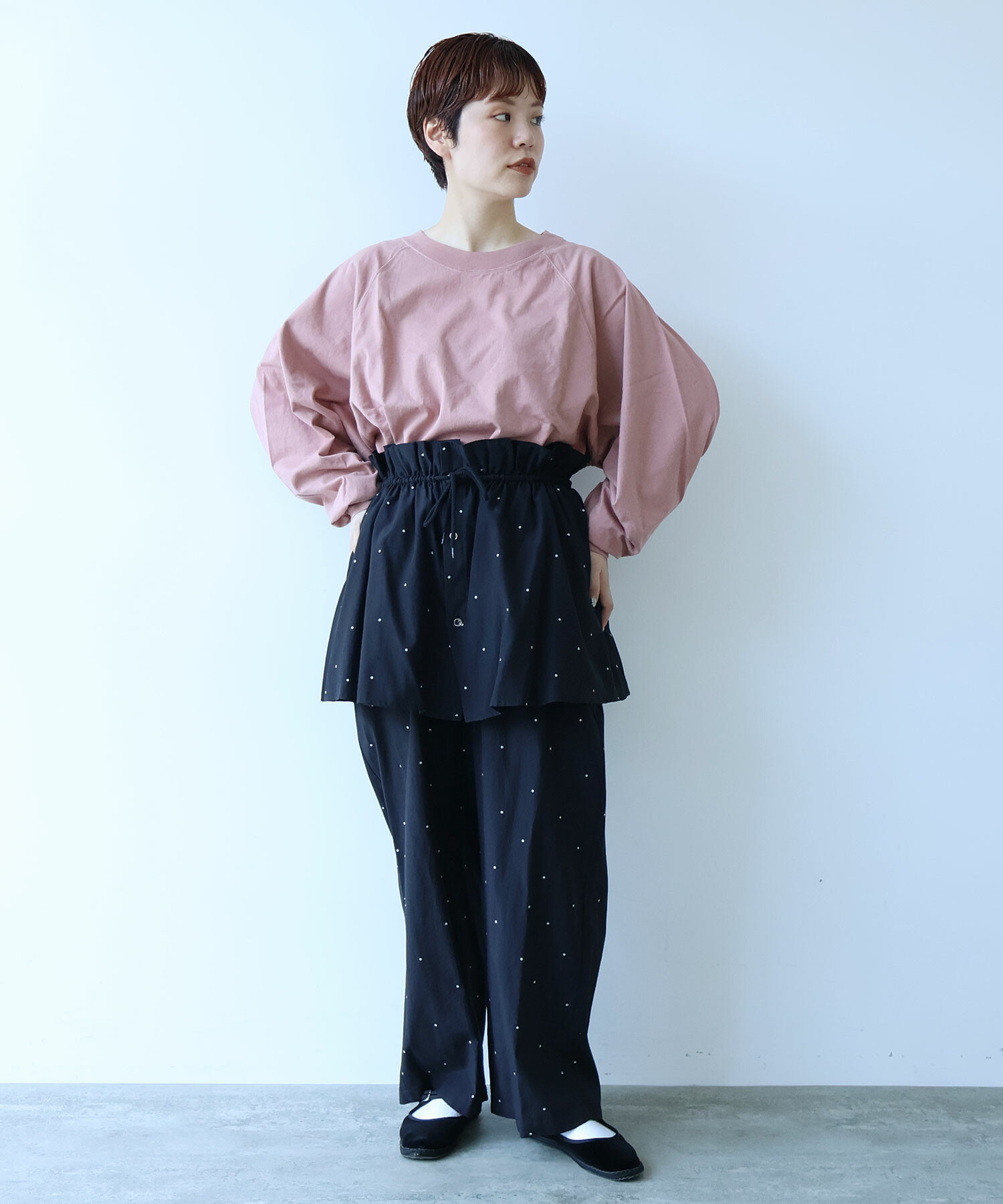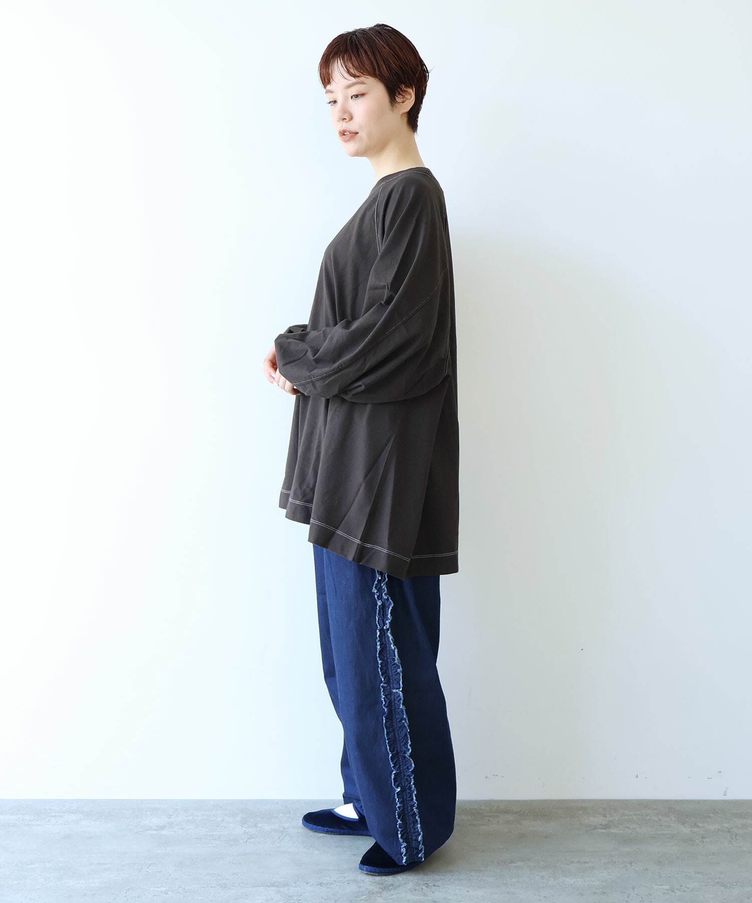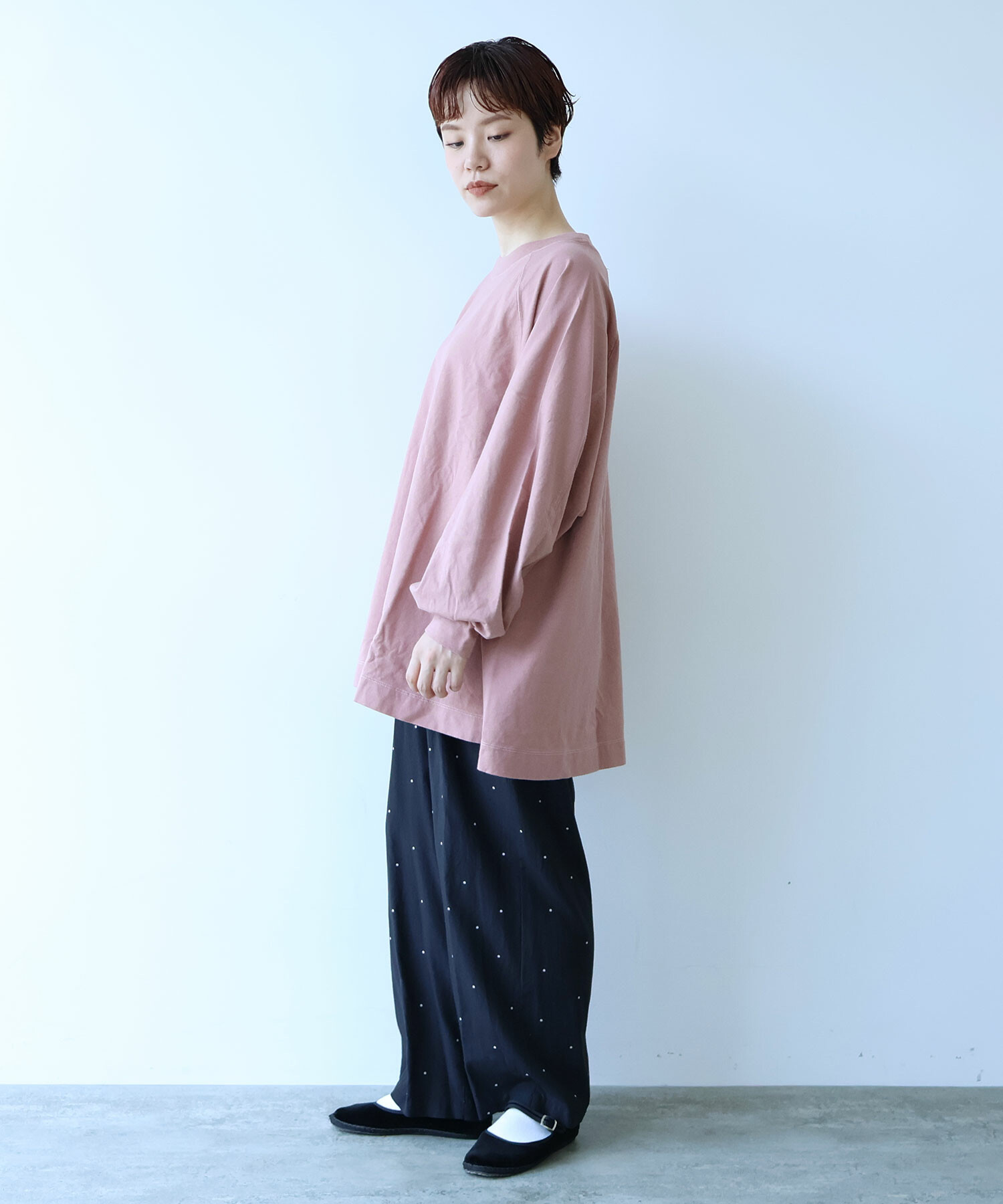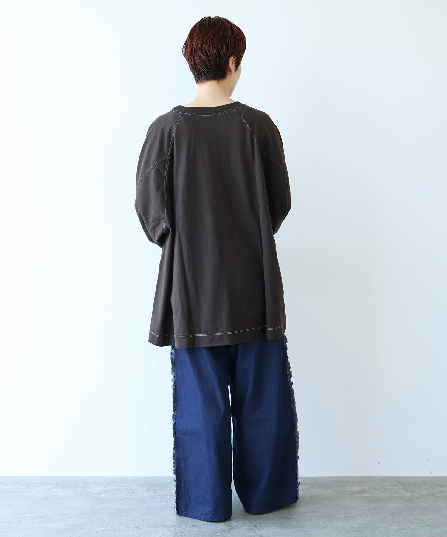 ラグランスリーブのワイドプルオーバー。