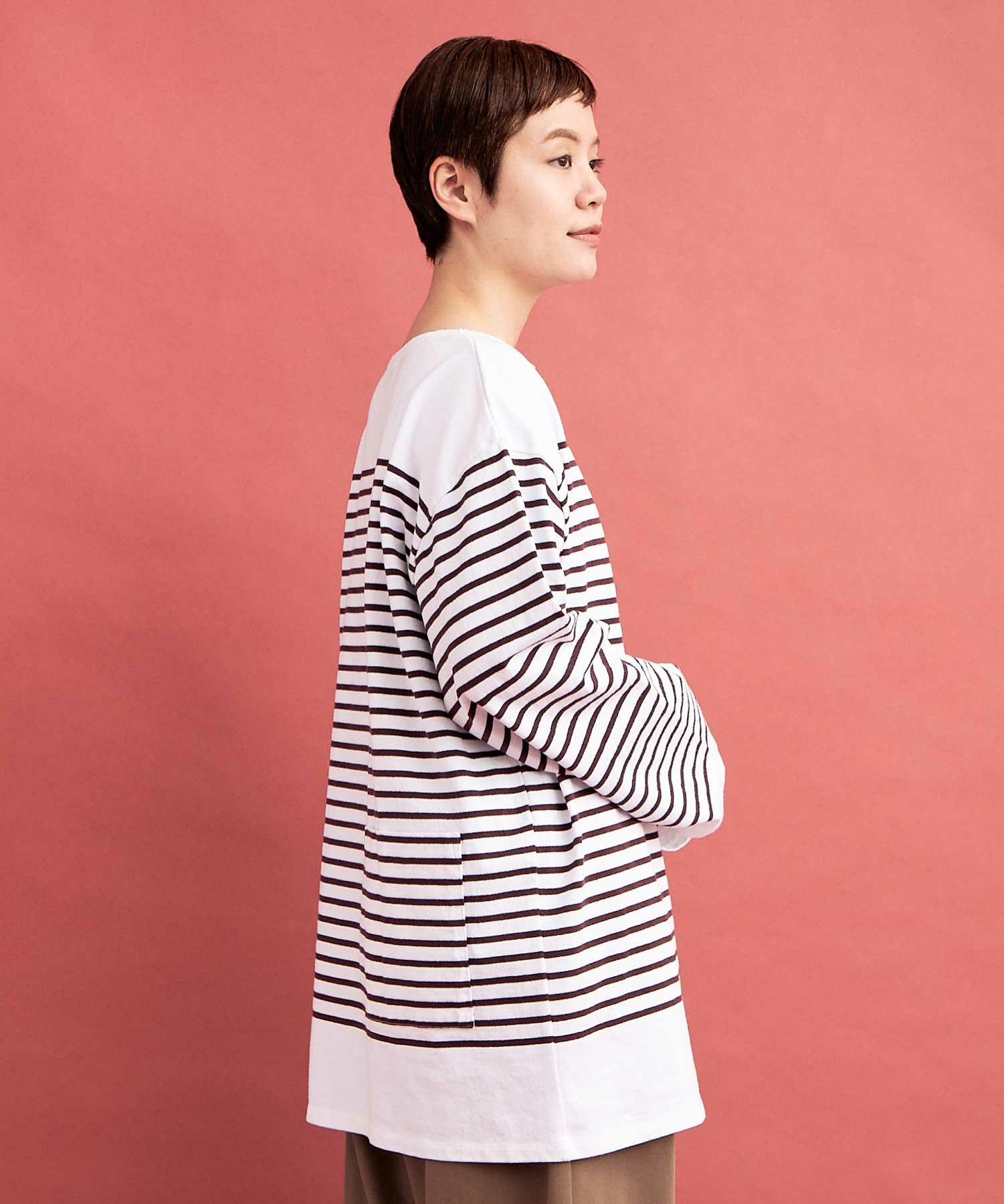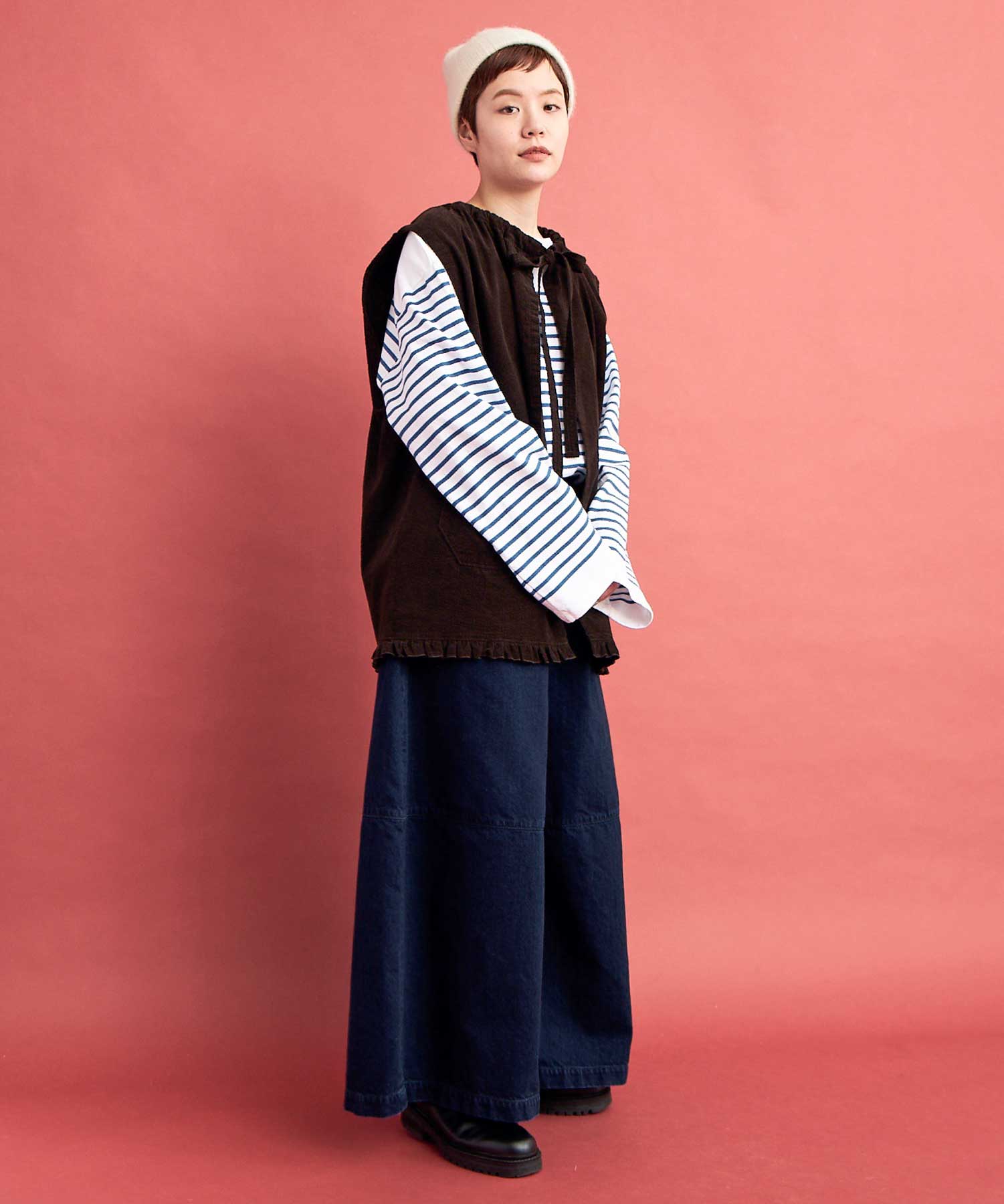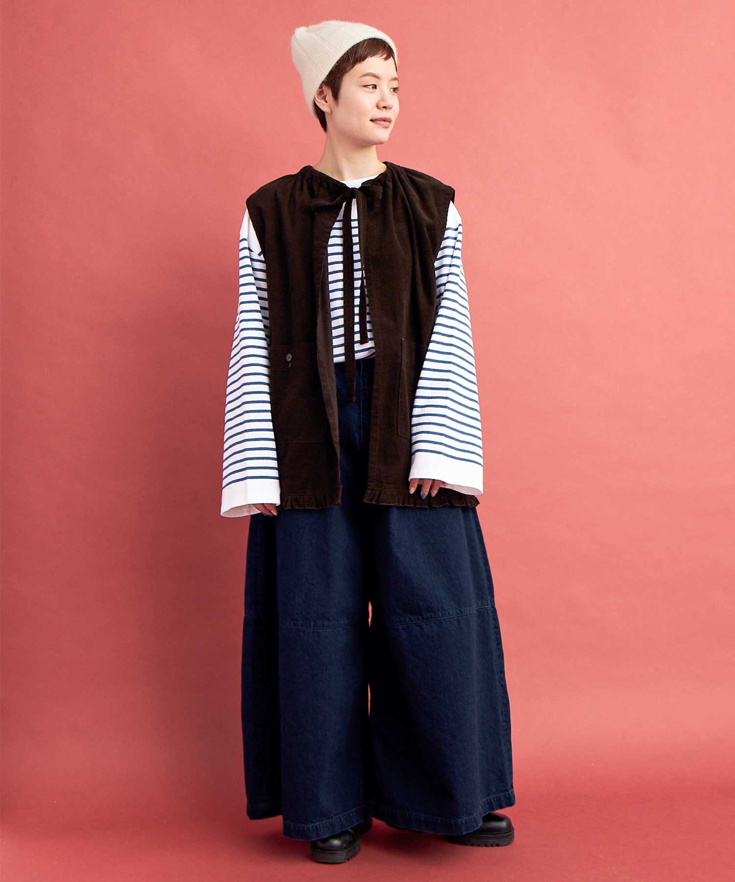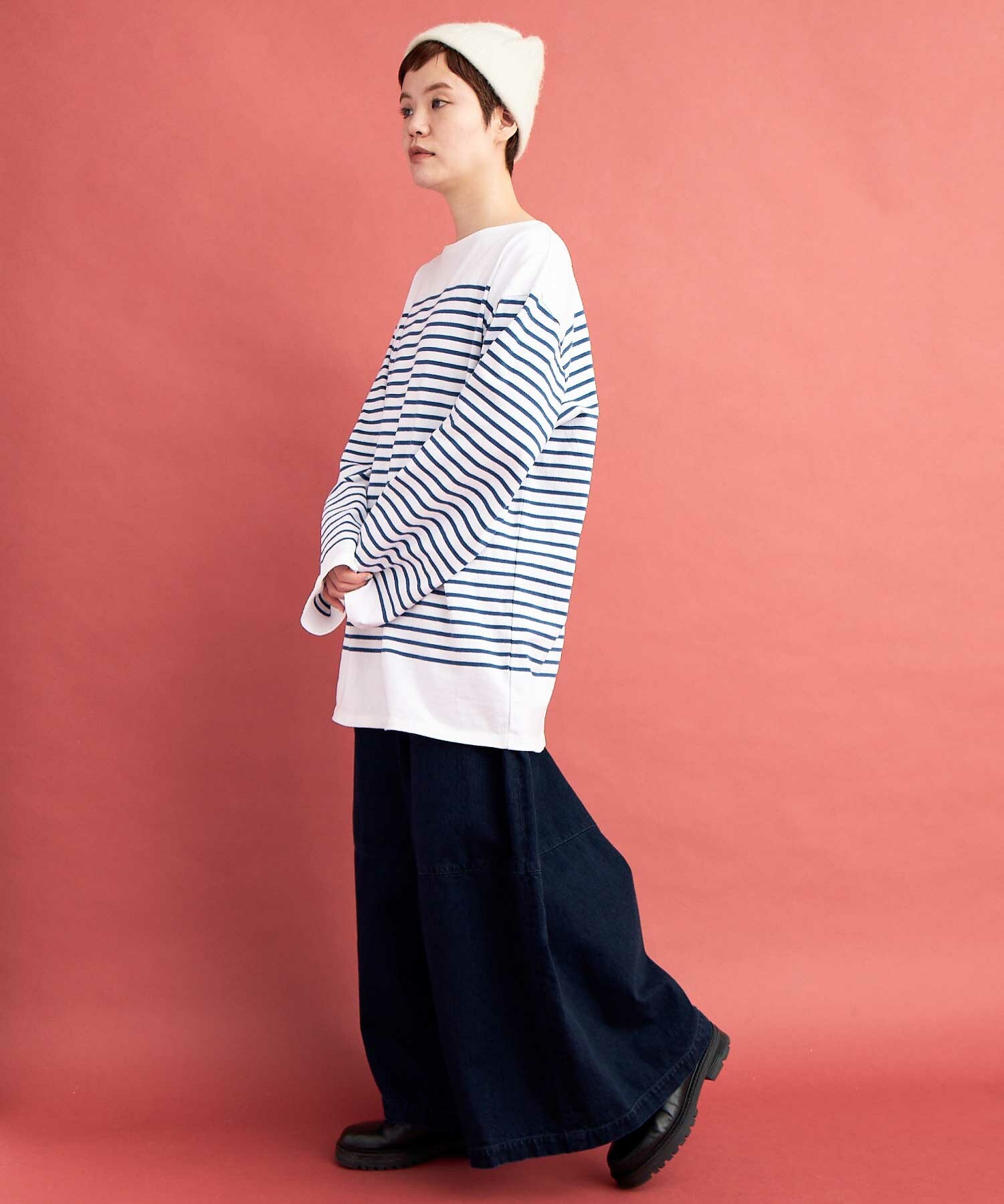 あえて袖も着丈も緩め・長めにして、