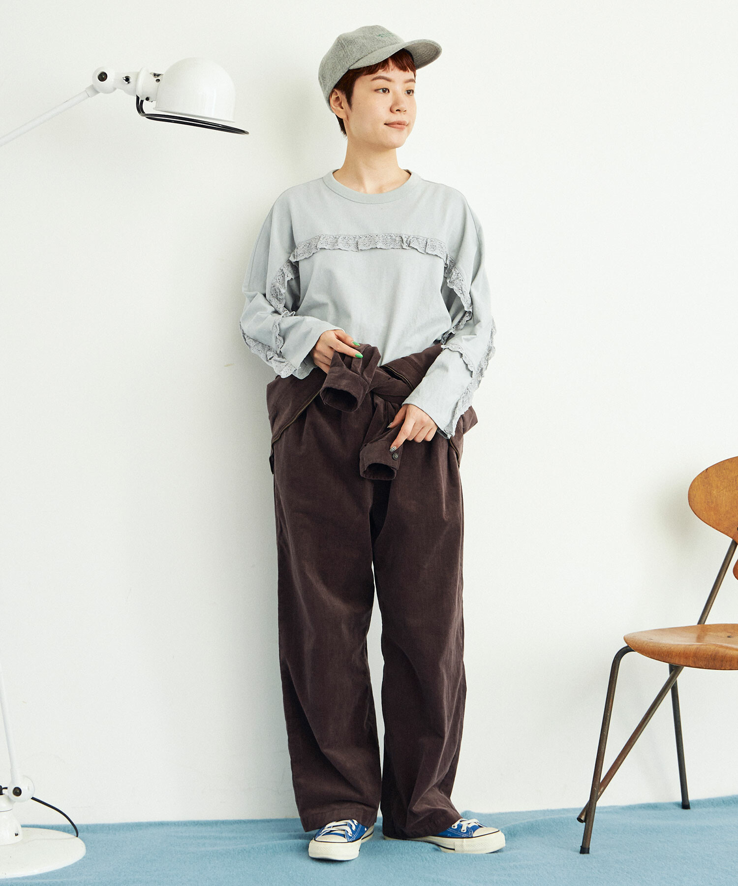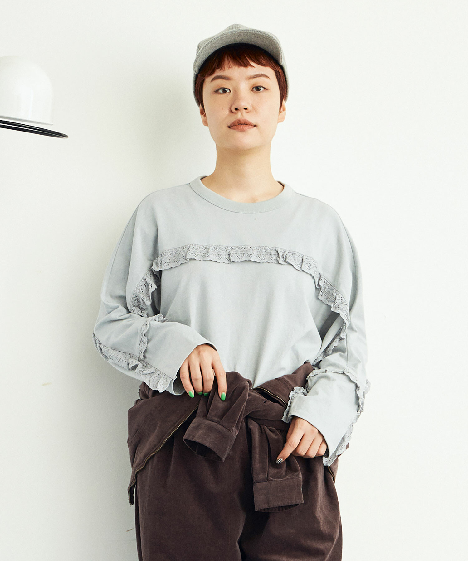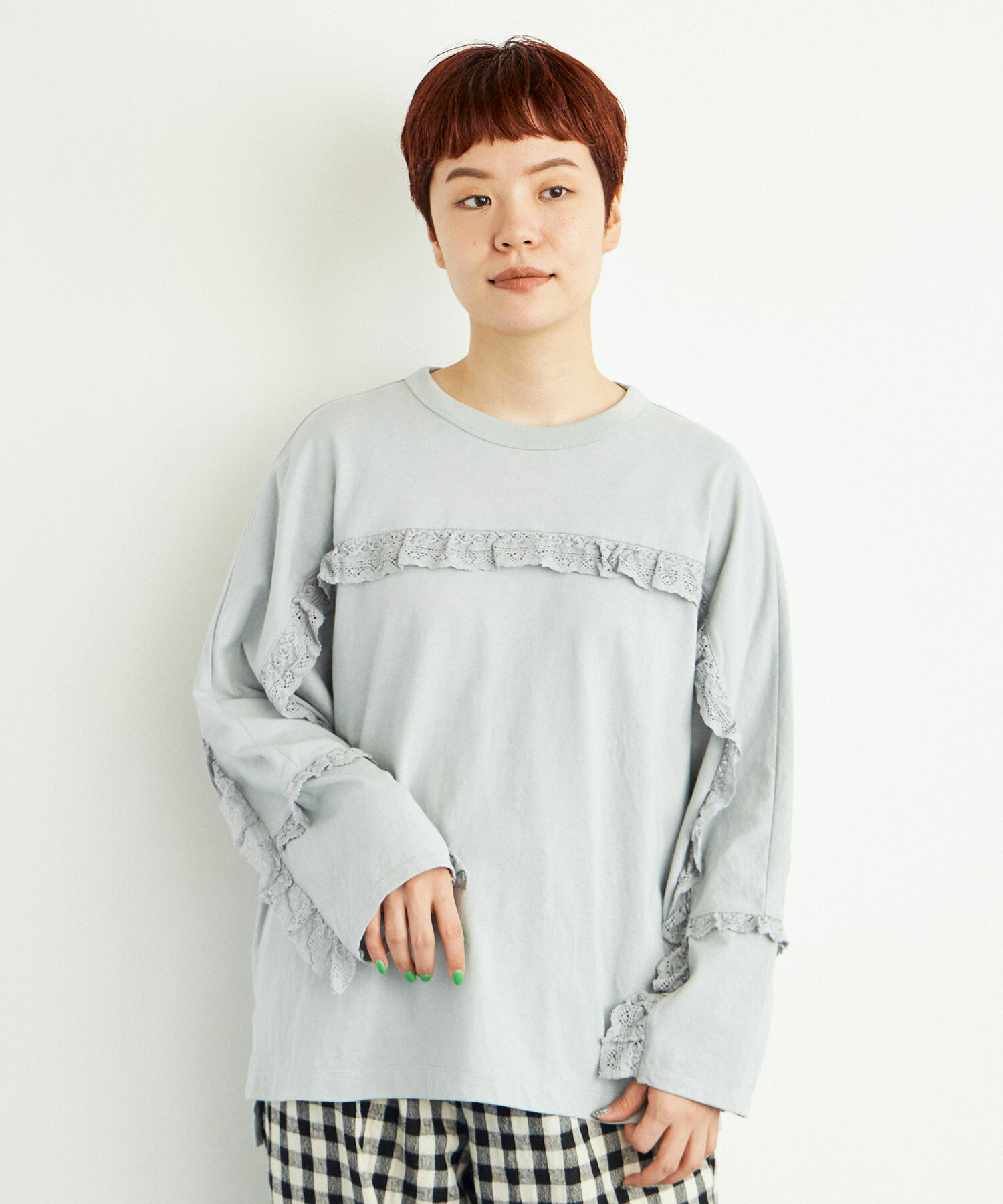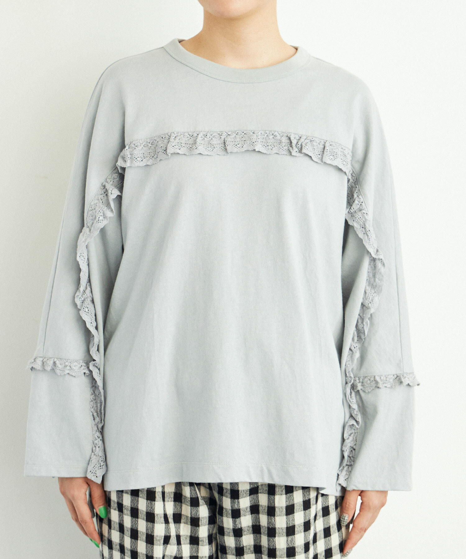 ※BLUE GREYはサンプルです。実際は前の袖のフリルが袖口より少し短くなります。