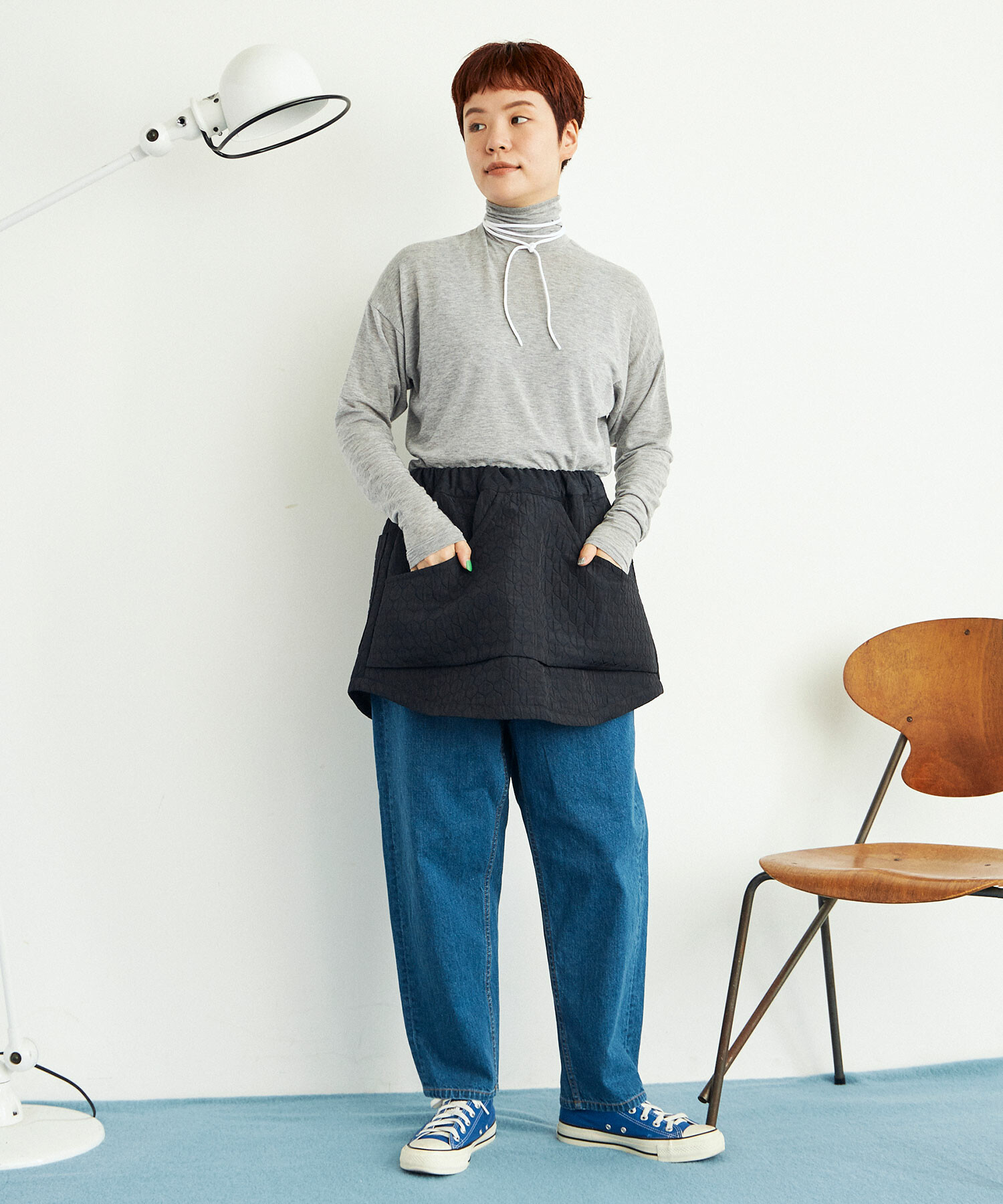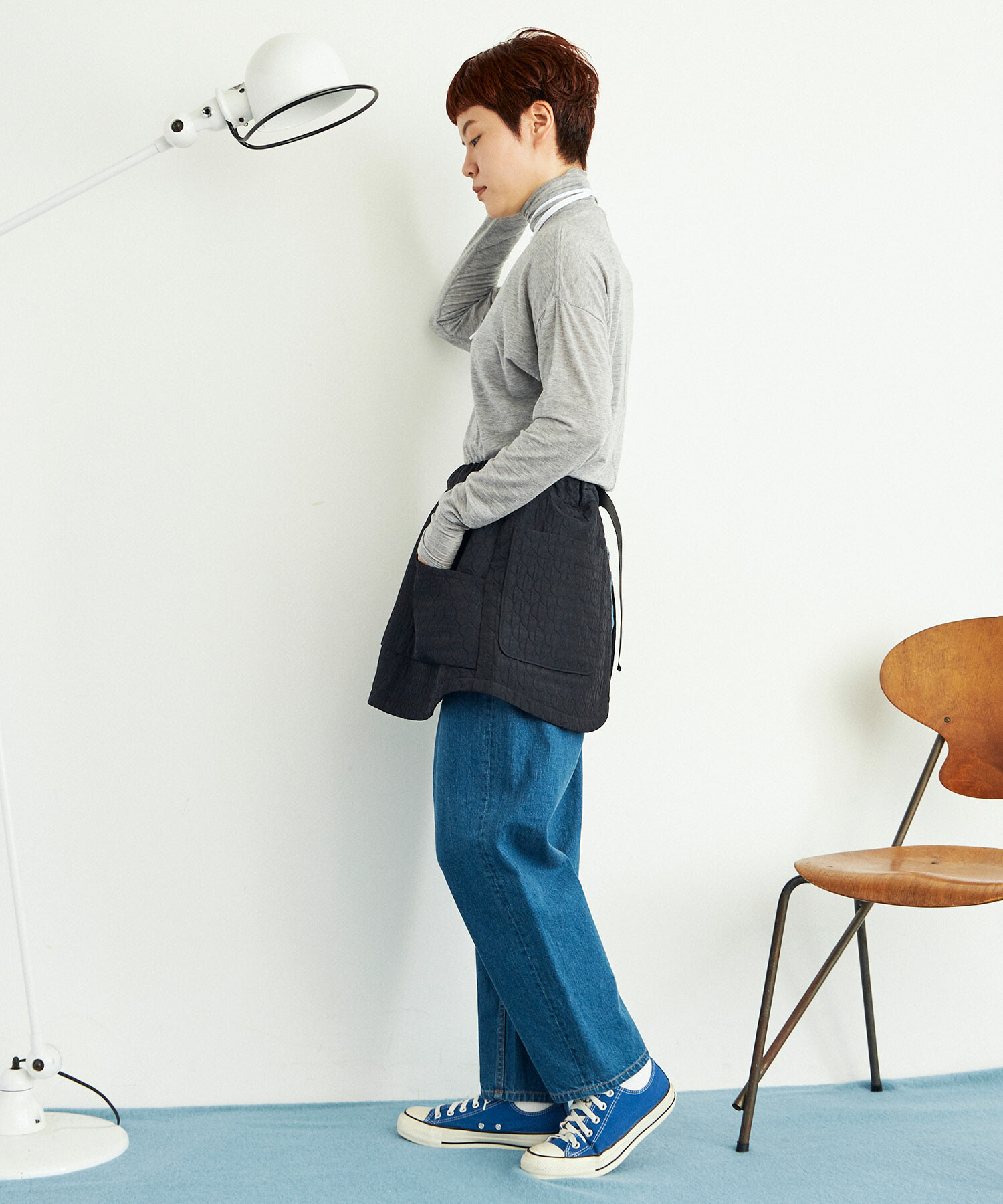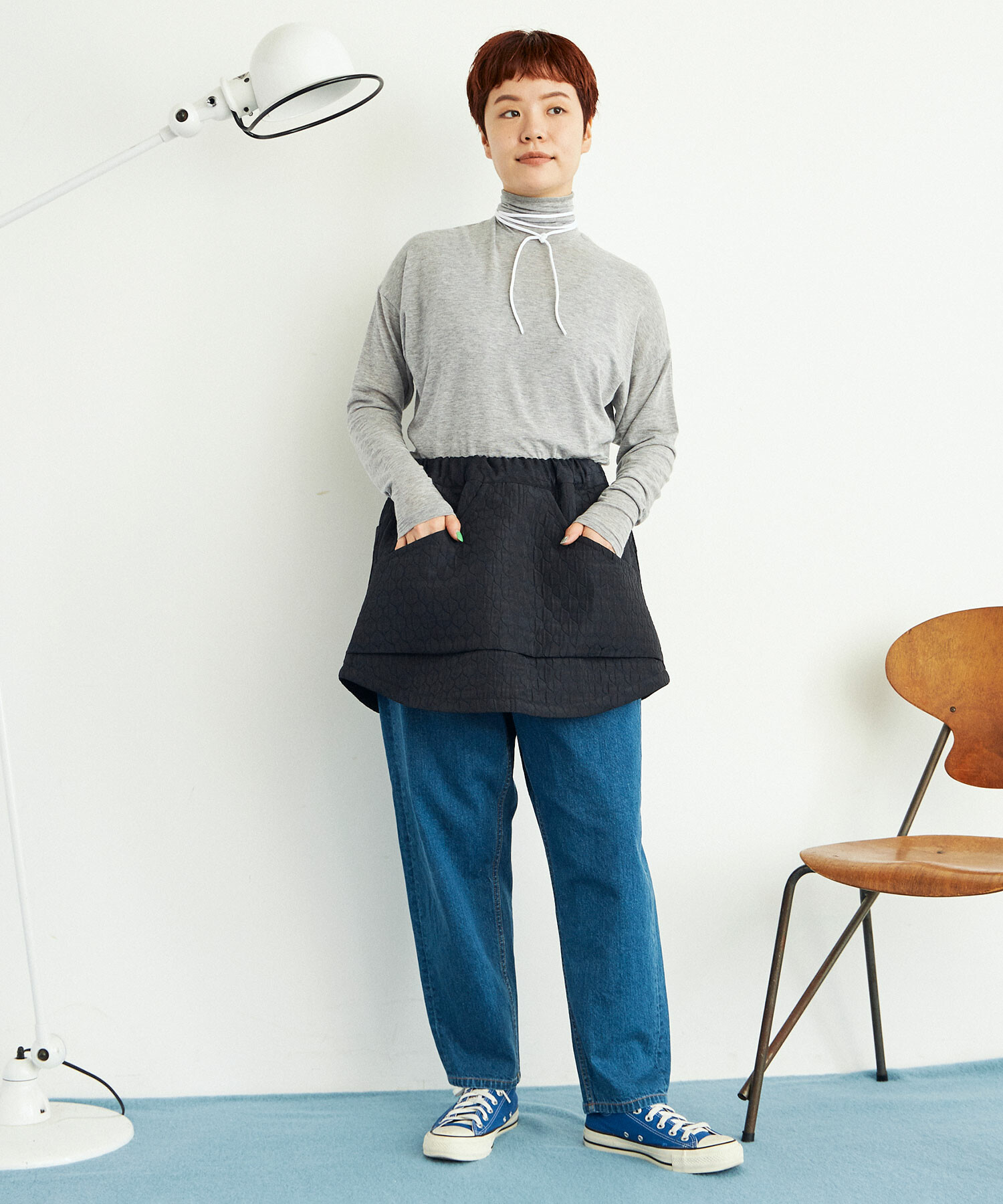 タイトさとゆるさ、メリハリのあるシルエットをカシミア混のベア天で。