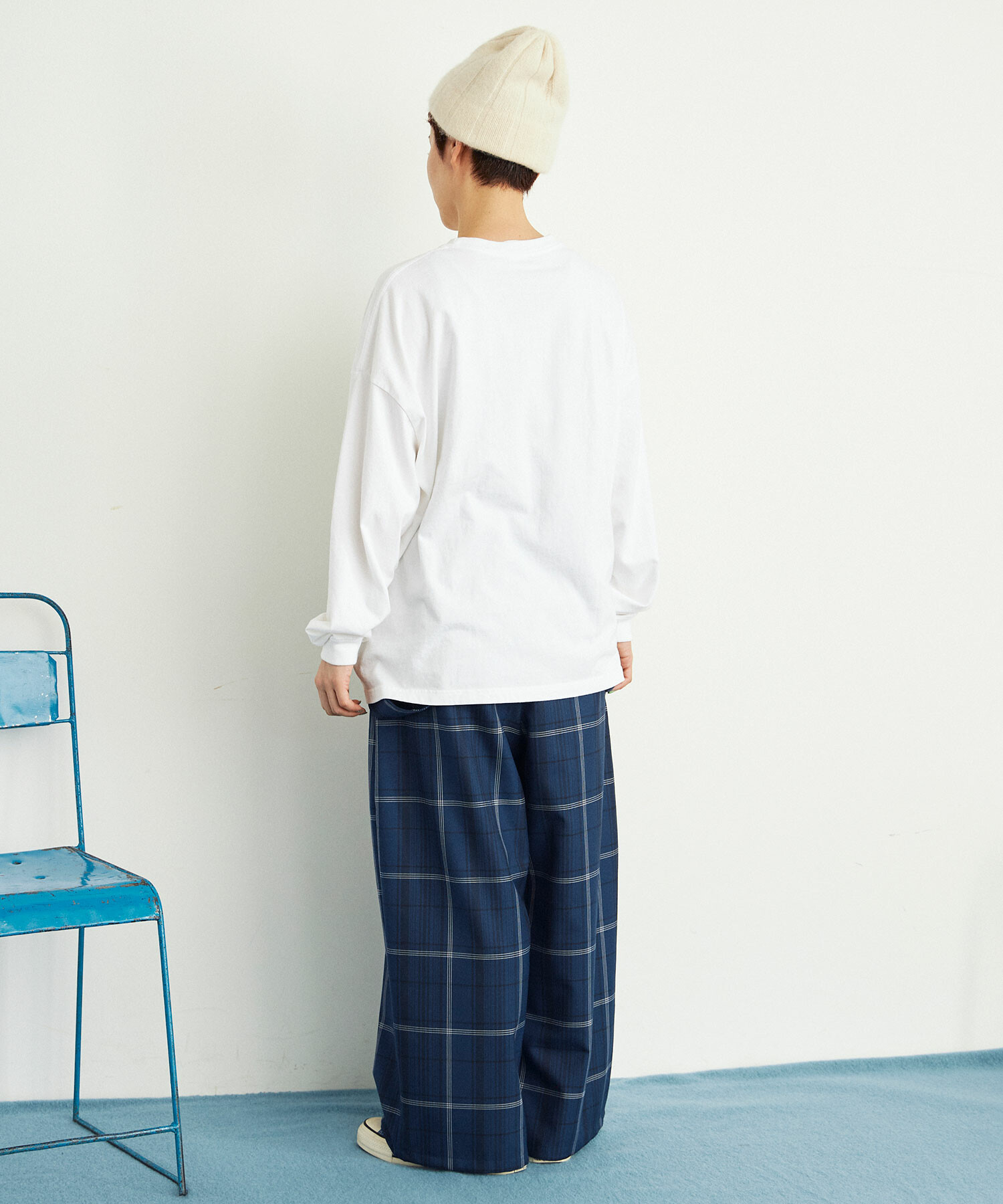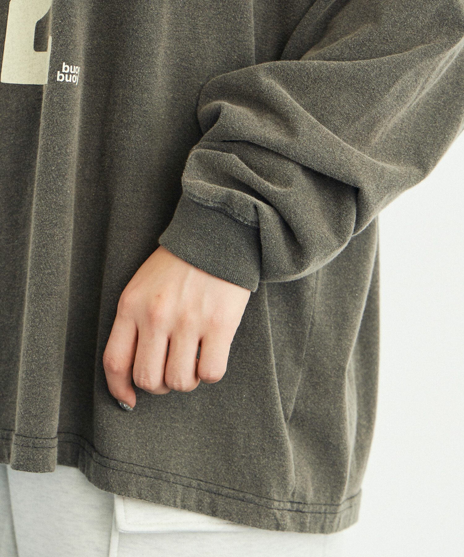 ほどよくドロップさせた肩回りと袖丈の長さで
