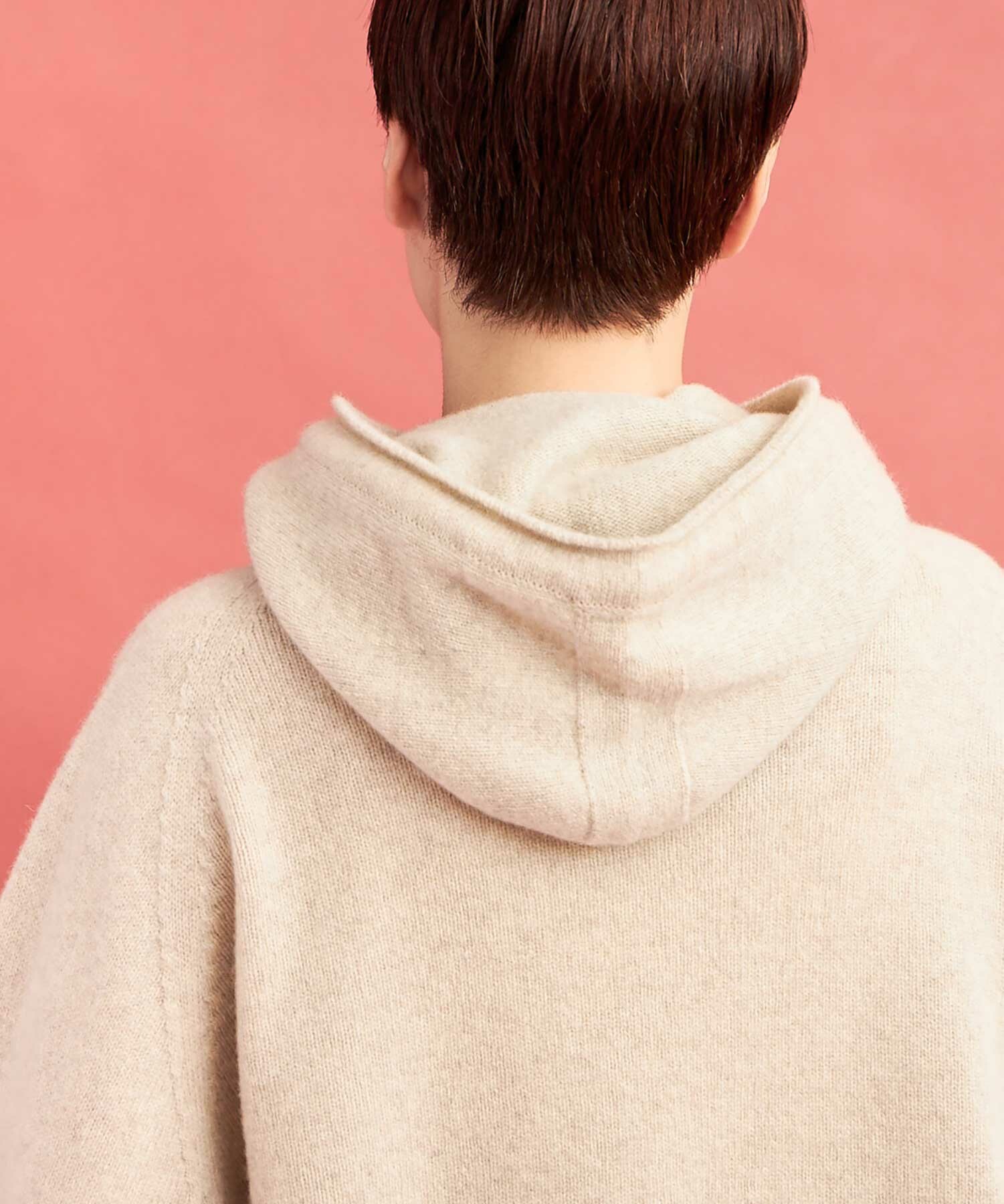 中国内蒙古産の貴重なホワイトカシミアと、 高品質なオーストラリア産のファインラムズウールを混紡。