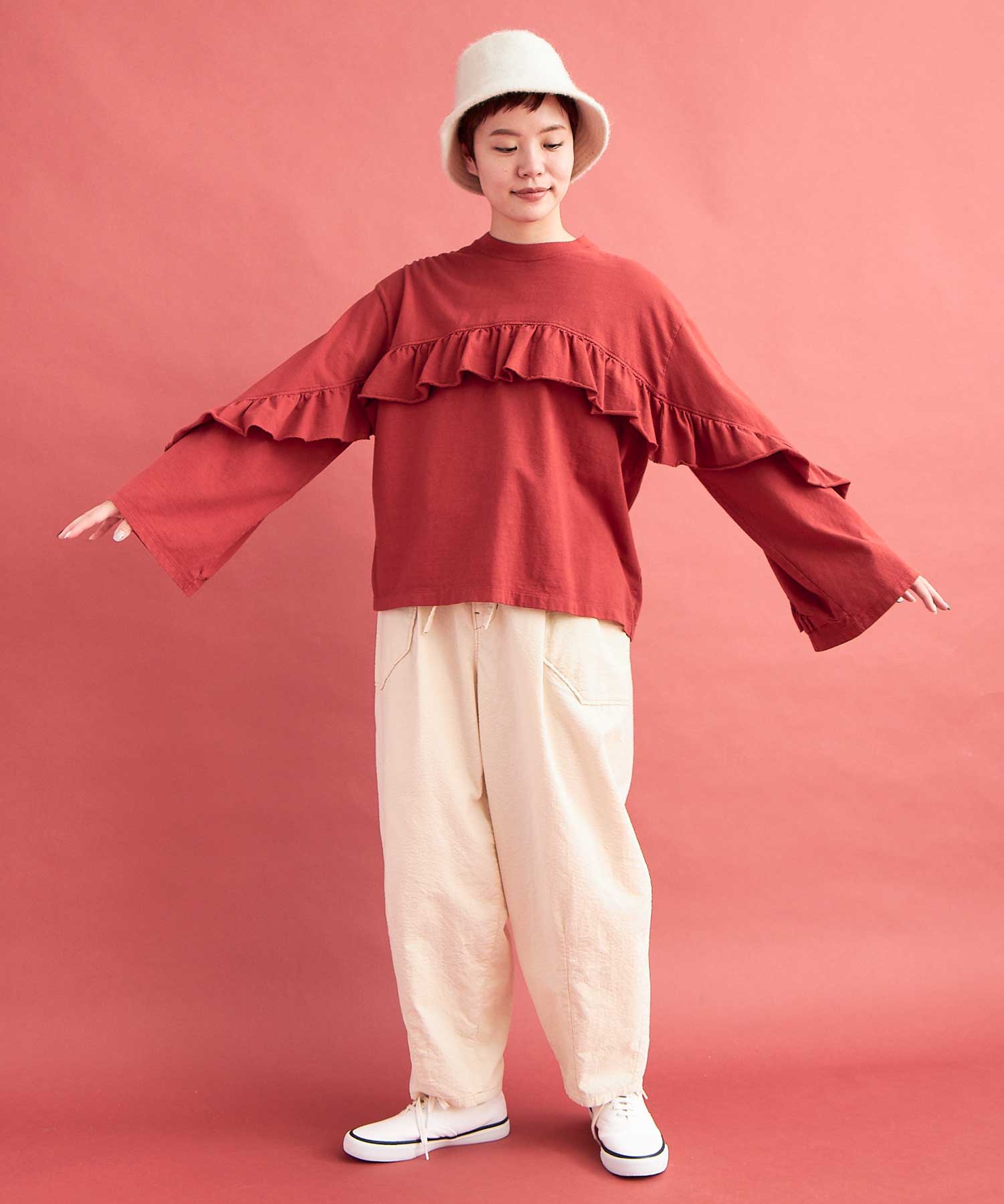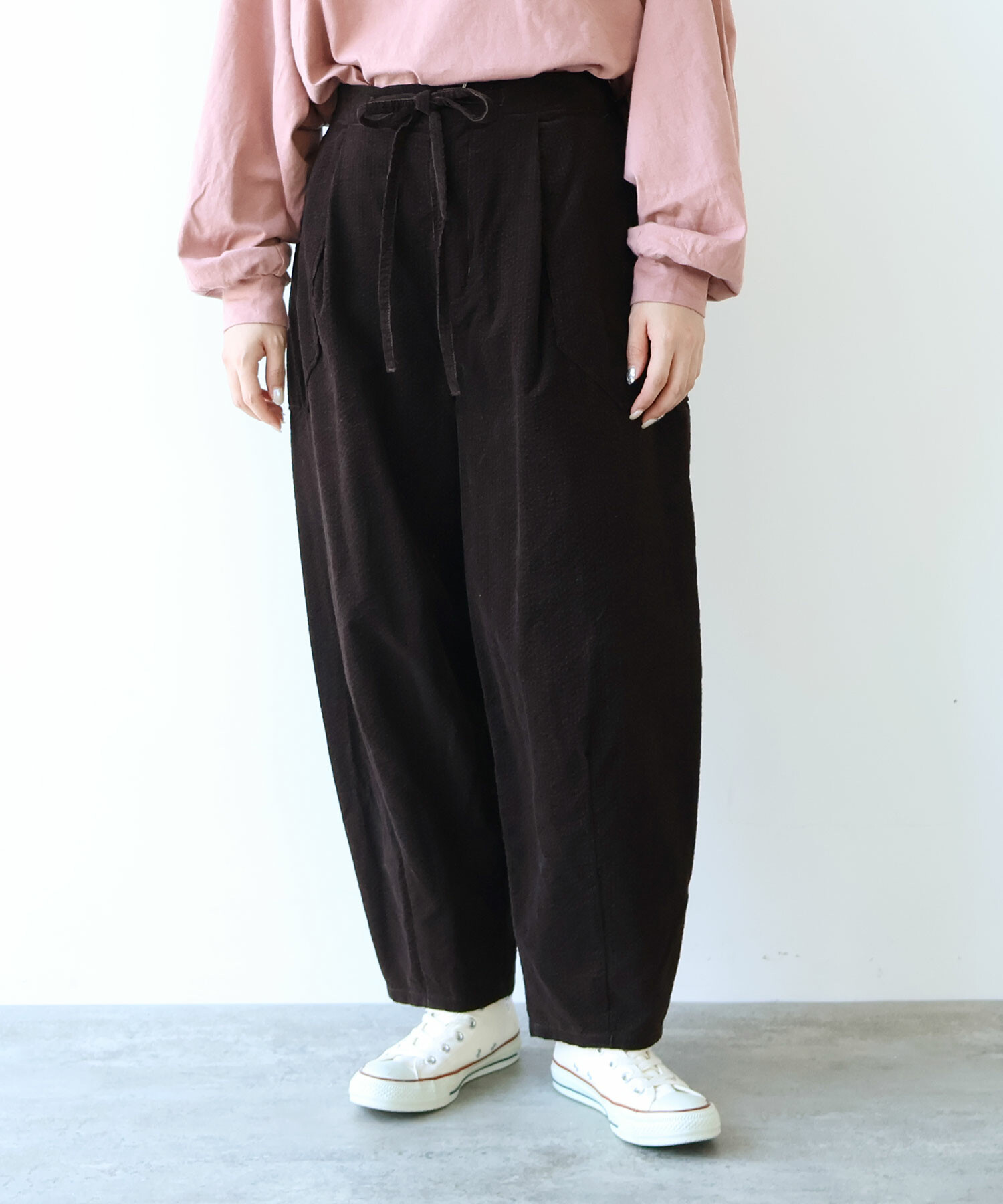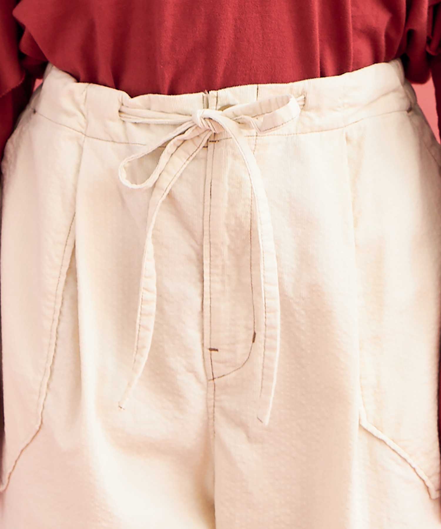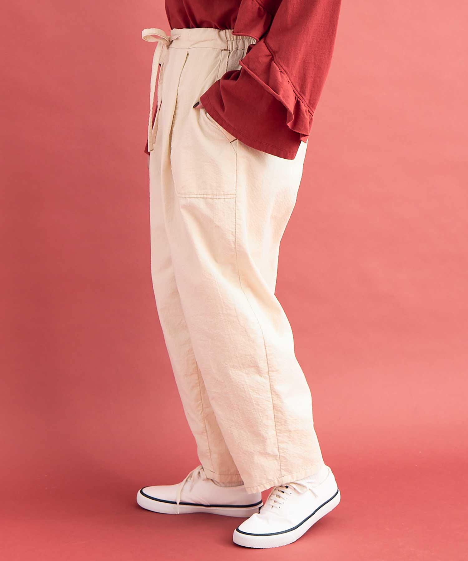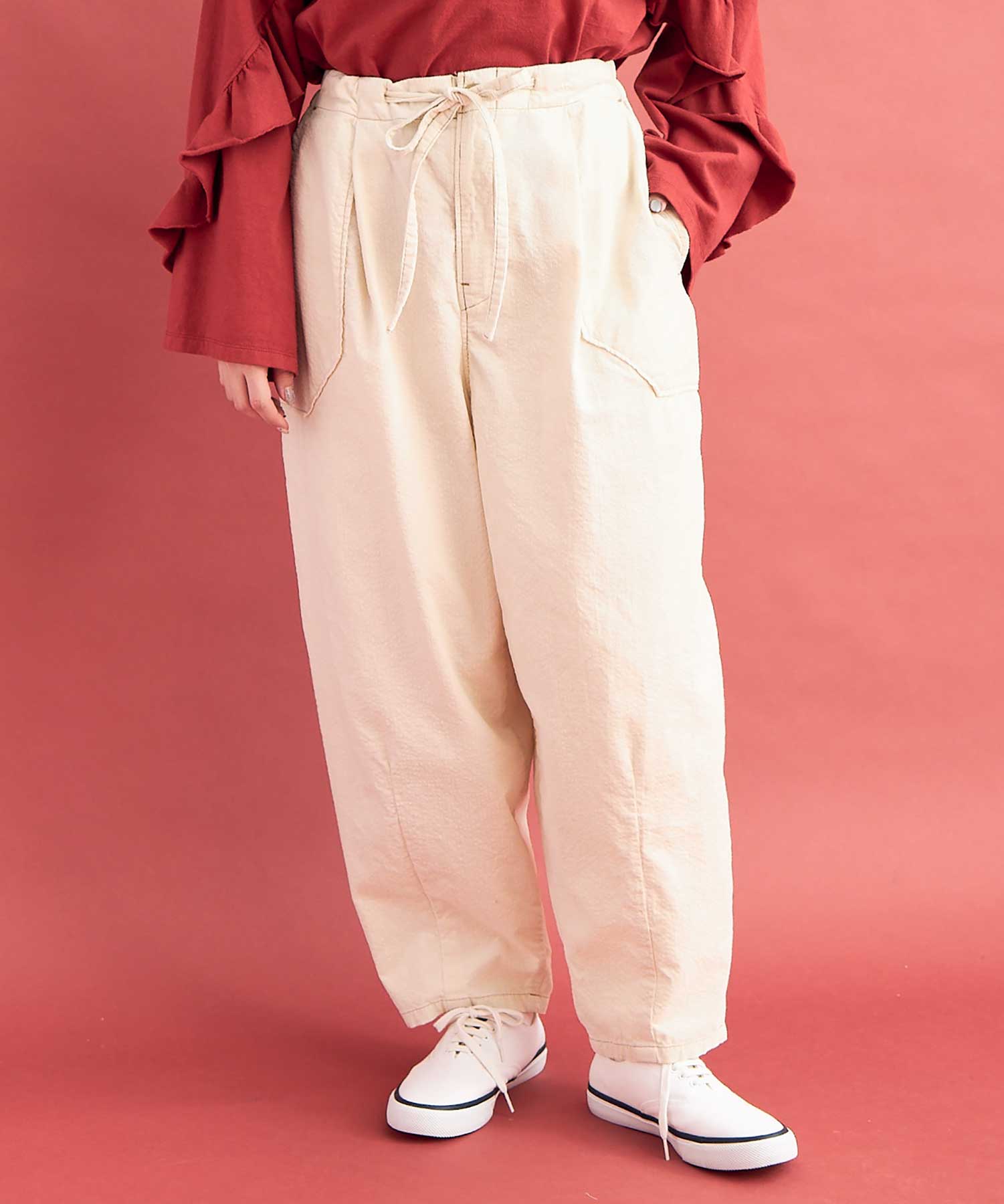 立体的なシルエットのカーブパンツ。