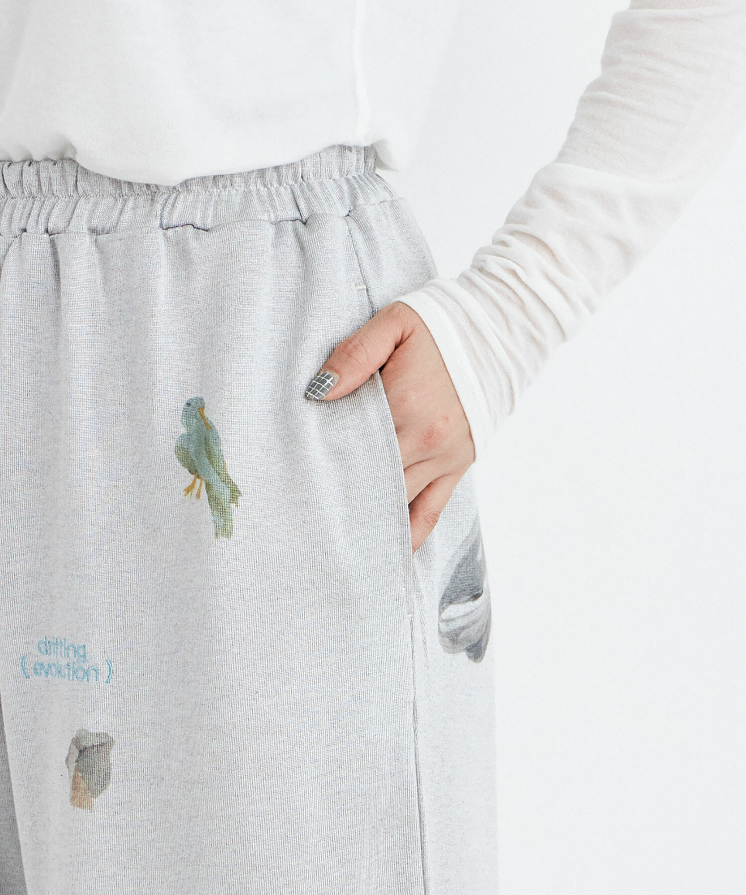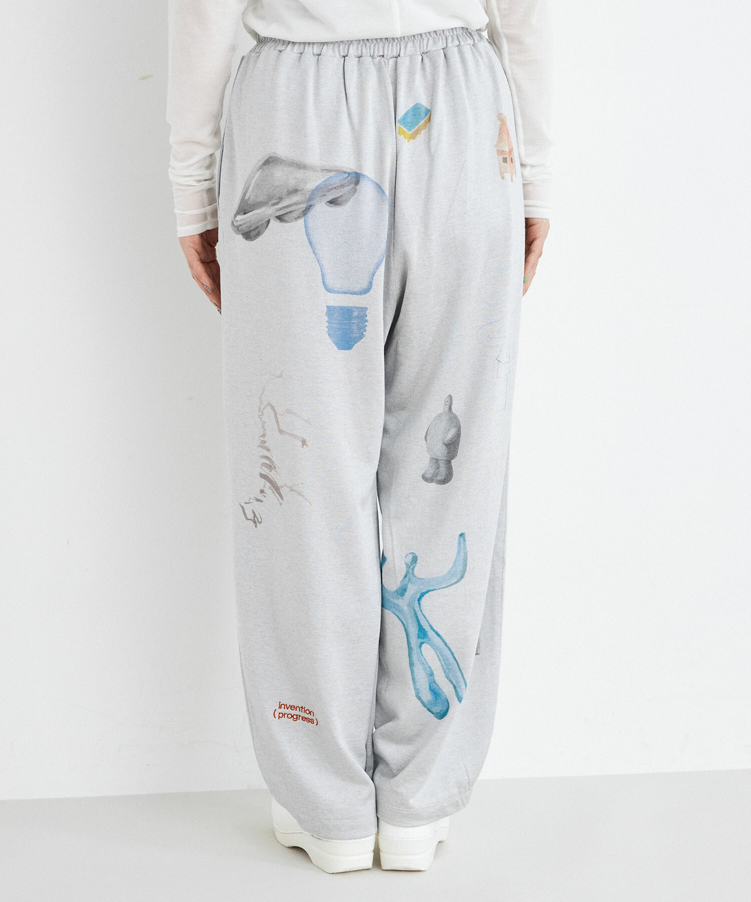 程よい光沢感と、快適な着心地のイージーパンツをベースにインクジェットプリントを施しました。
