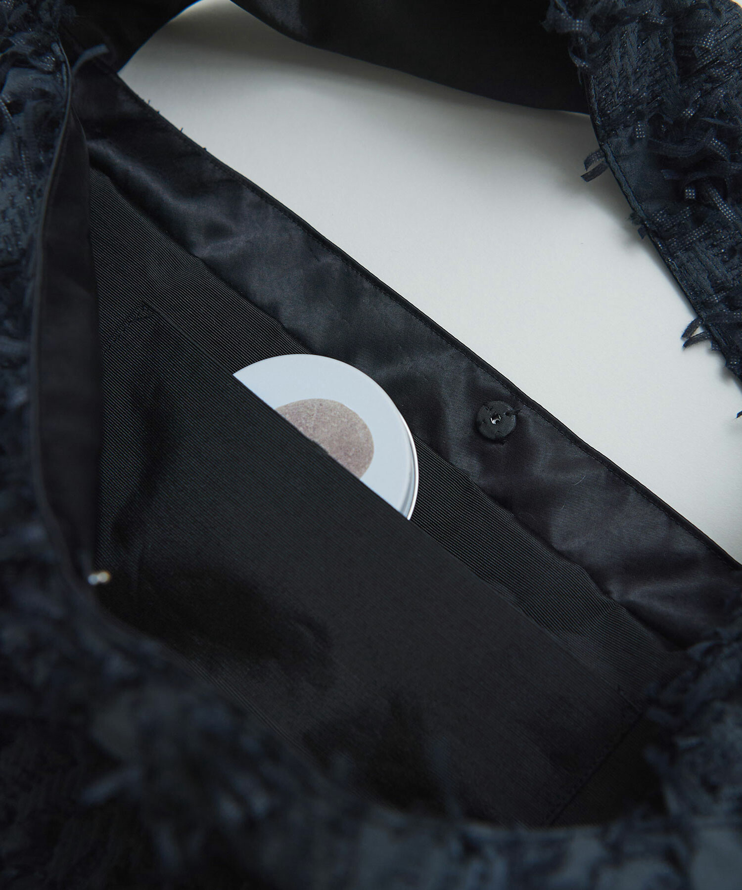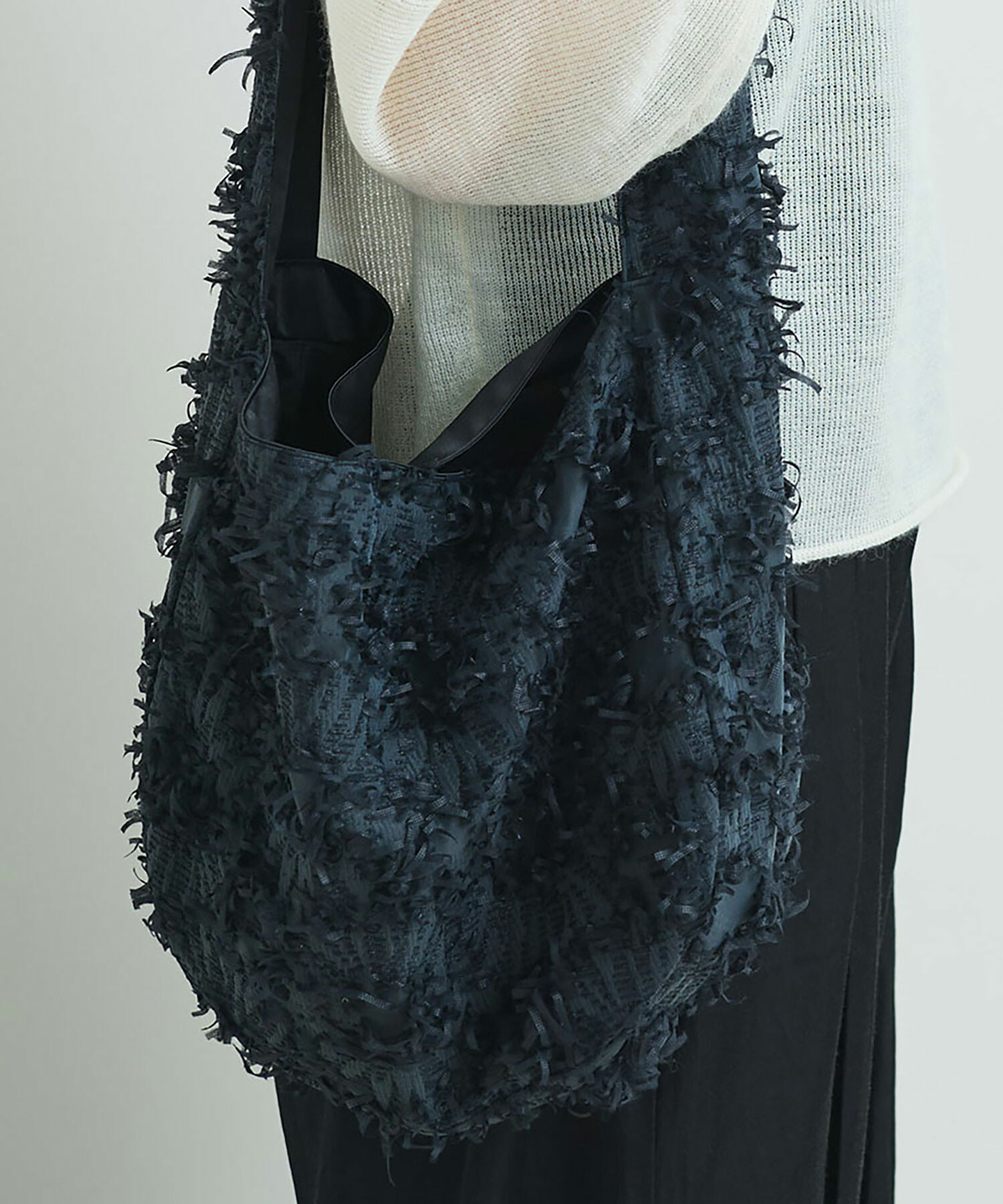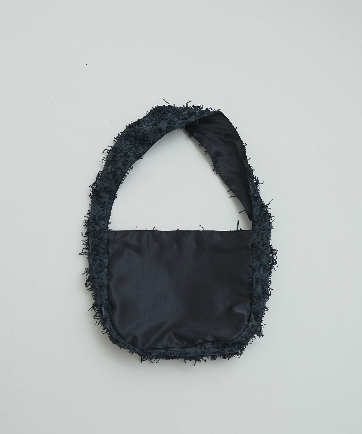 肉厚サテン生地とドッキングしたショルダーバッグ。