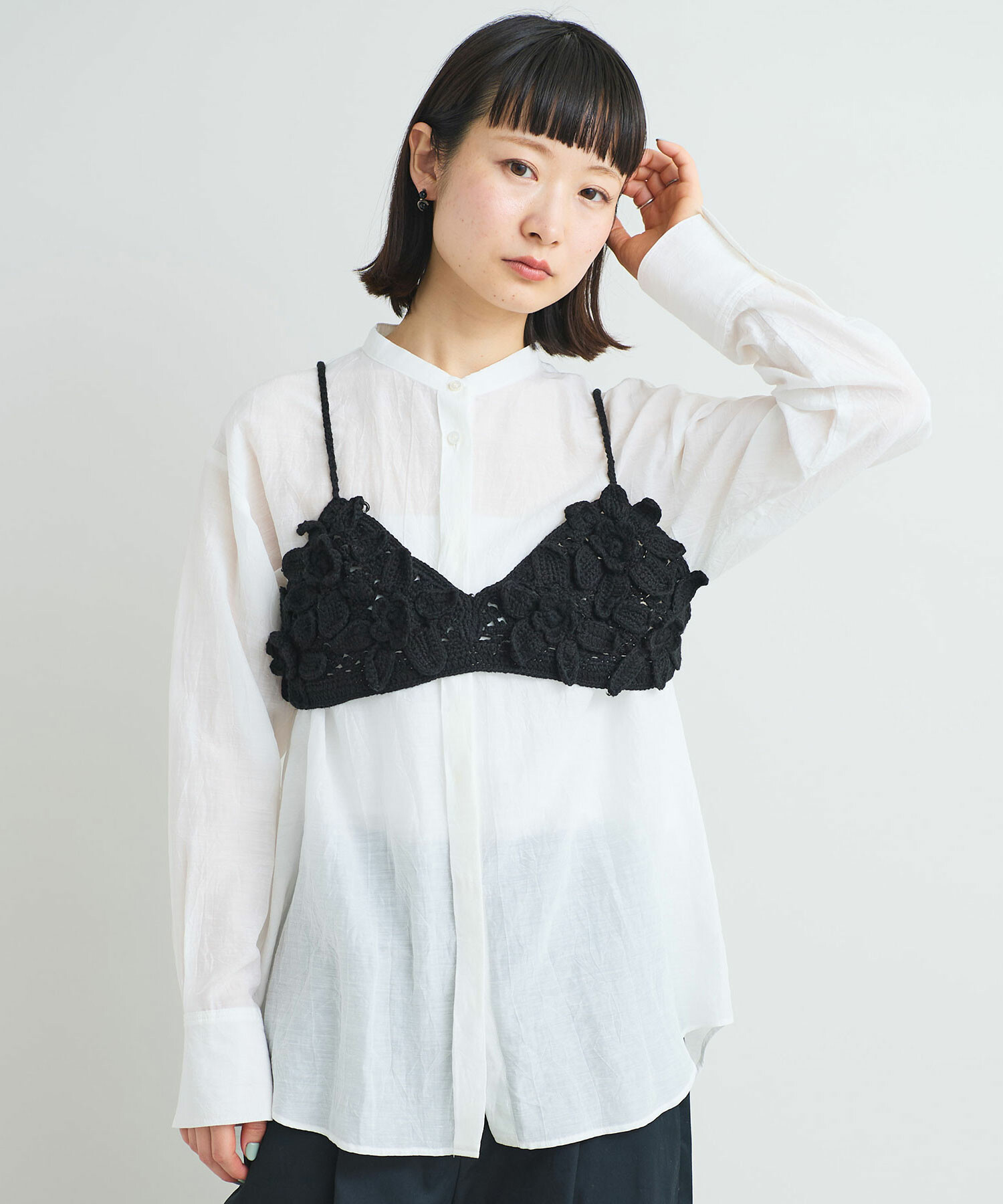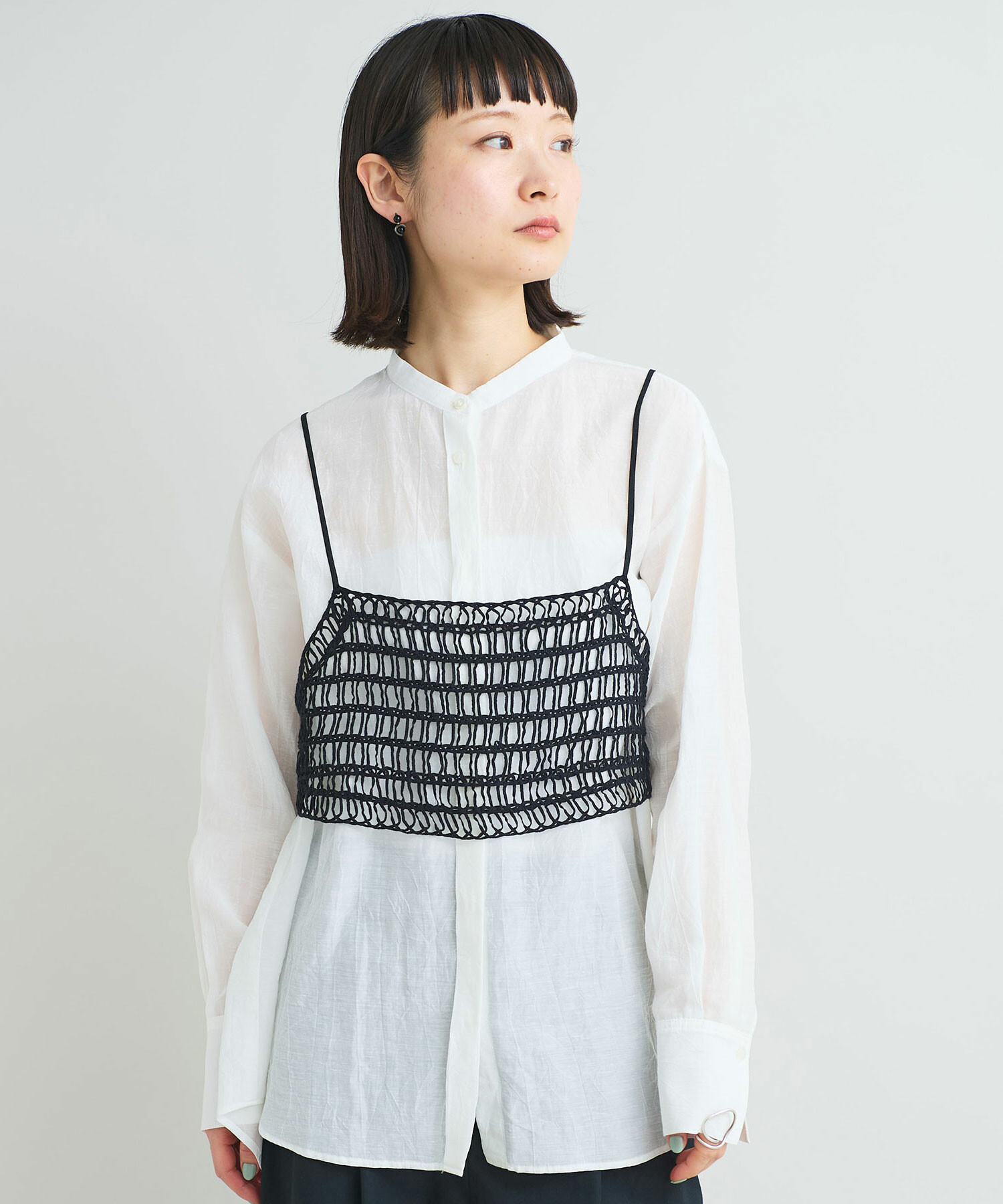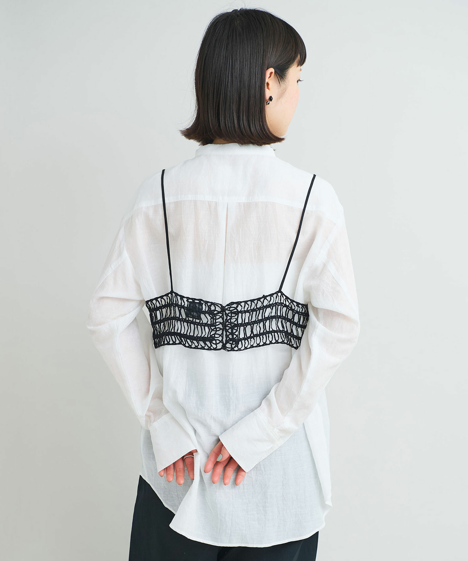 第2ボタンまでは表に出ているので、ベストやジャケットなどを重ね着した時にポイントとなるようデザインしています。