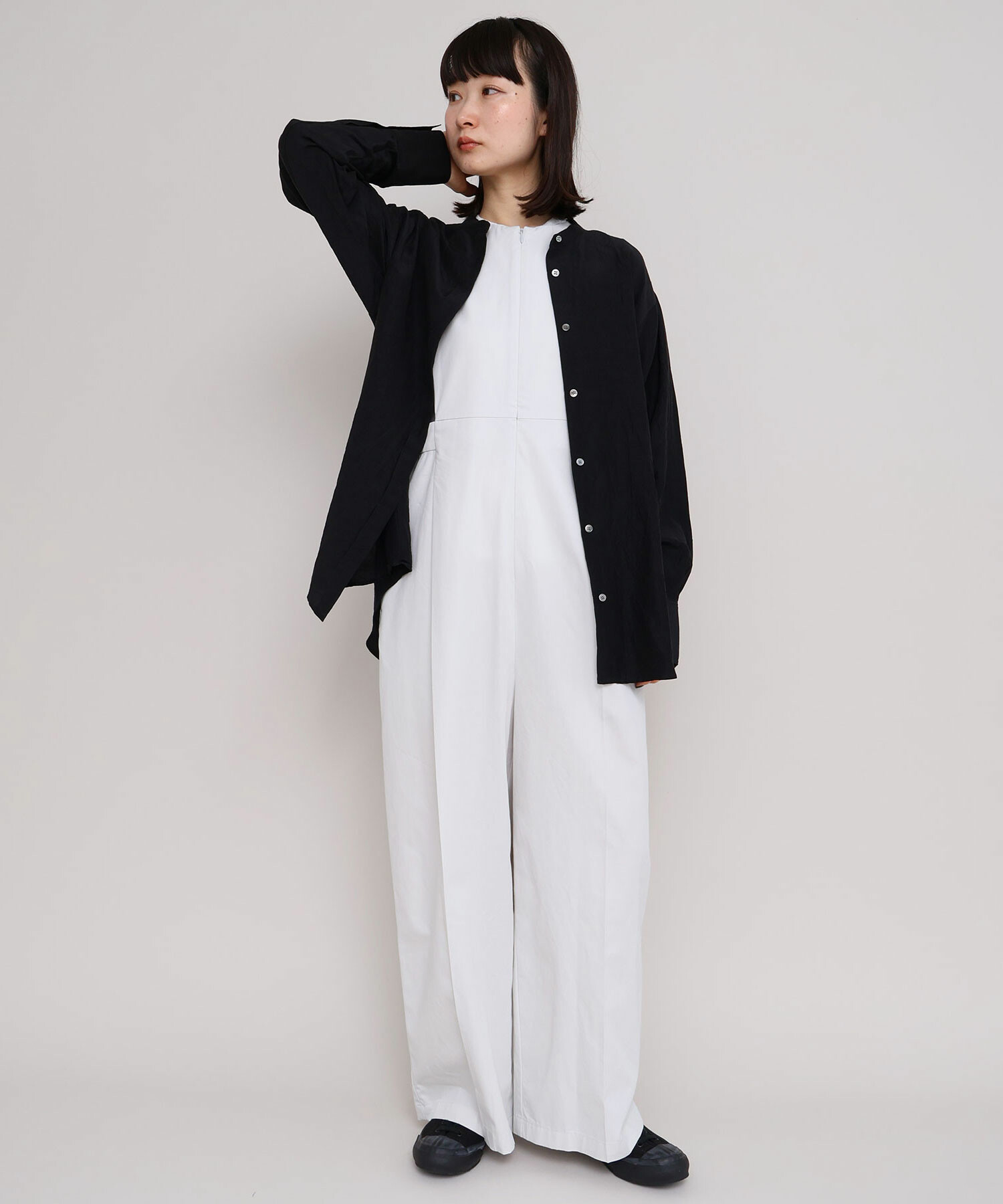 前ボタンは比翼デザインにし、きちんと感のある印象に。