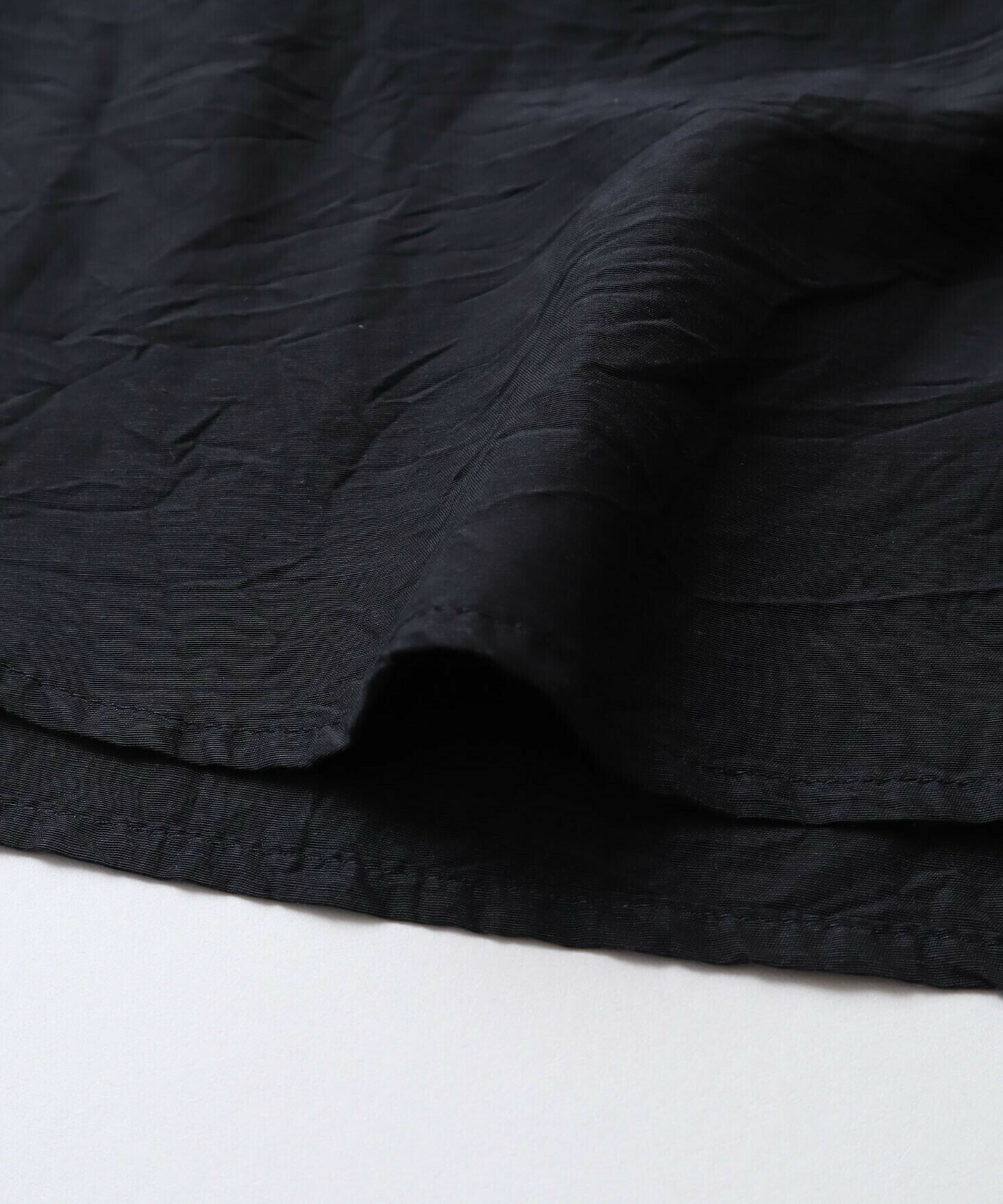 ・この製品は、シワ加工しているため、着用や水洗い、クリーニングにより、シワ感が消失する恐れがあります。・クリーニングにだす際はクリーニング店にご相談下さい。・保管の際はたたまずにハンガーにつるして下さい。・加工部分にアイロンをあてないで下さい。
