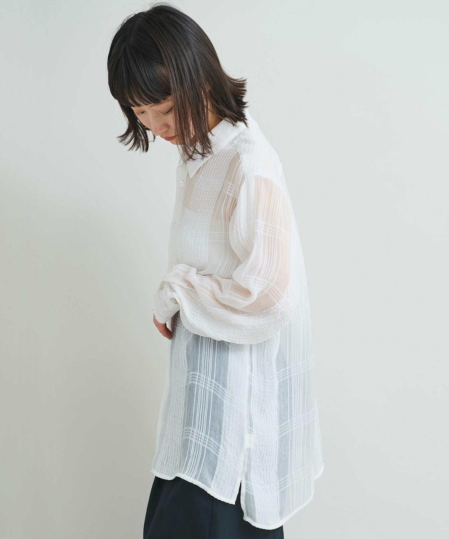 シアーな素材感と二重織りのおくゆきを感じる特別感ある程良いゆるさのレギュラーシャツ。