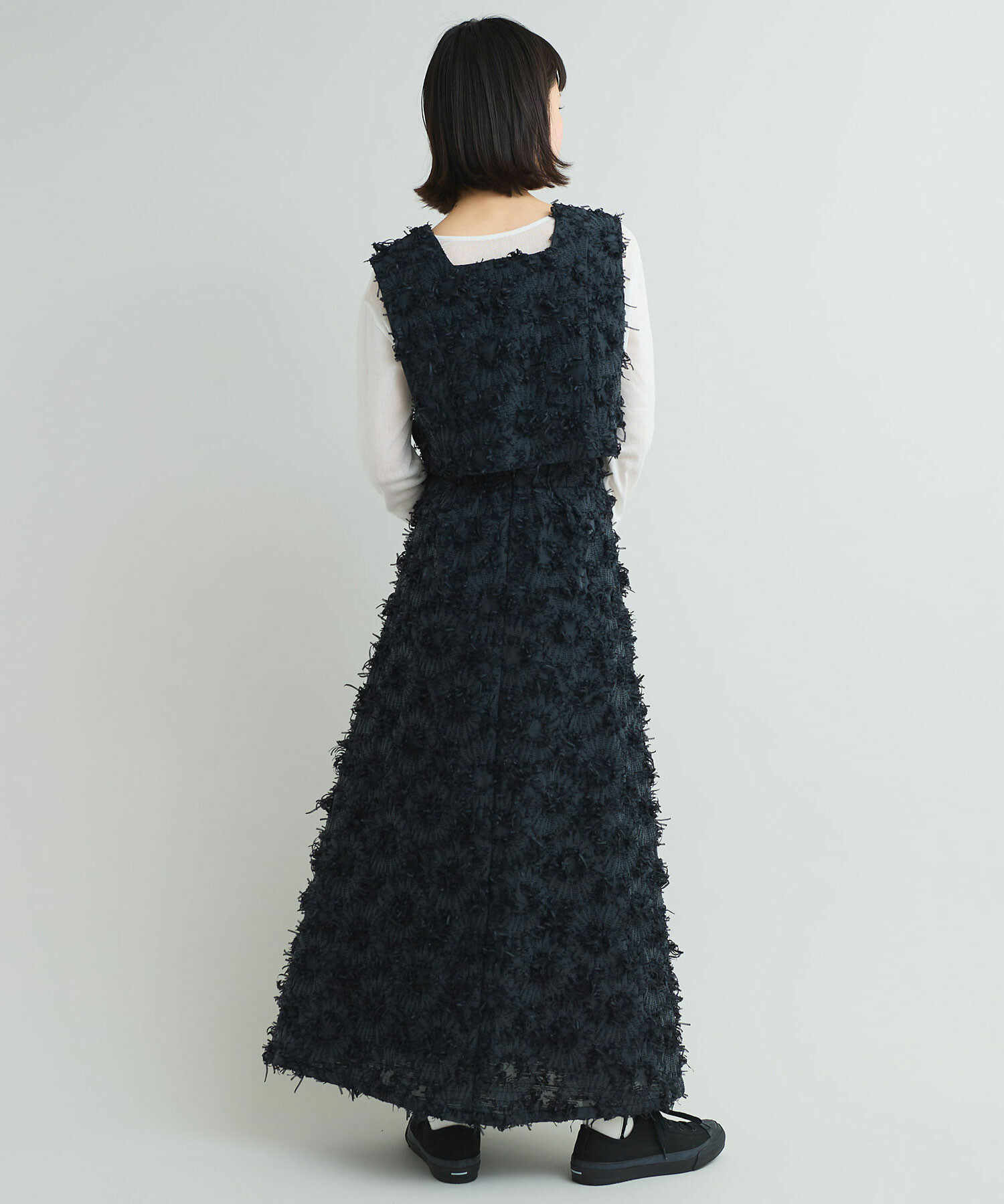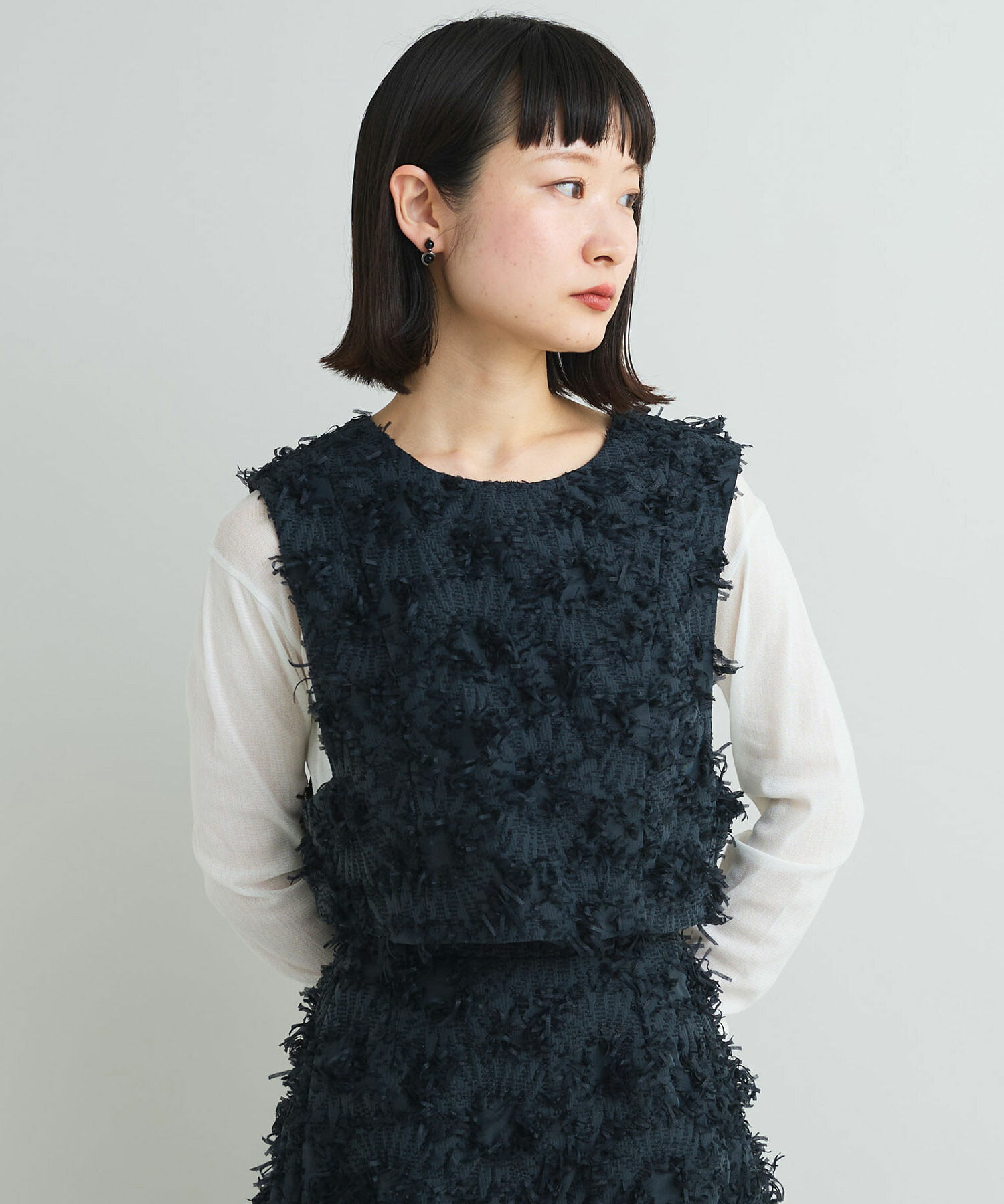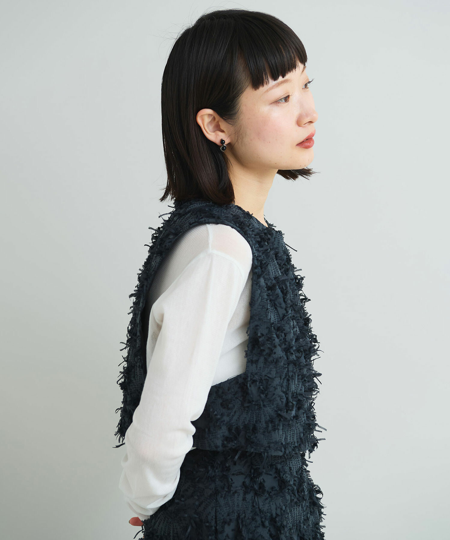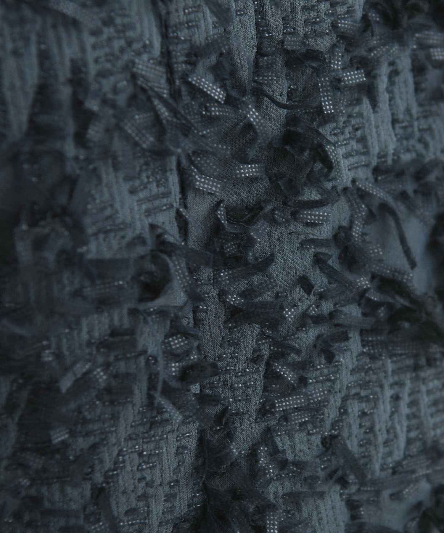 ・この製品に使用している生地はカットジャガードの組織になっています。毛足の部分は引っ張ると抜けてしまうので、取扱いにご注意ください。また、お洗濯は専門店での石油系ドライクリーニングでお願いします。また、縦糸にナイロン糸を使用しているため、熱で縮む恐れがありますのでアイロンはなるべくお避け下さい。毛足の部分は着用やお洗濯を重ねる事で毛が寝てしまったり、絡んでくる事がありますが、生地の特性になりますのでご了承ください。